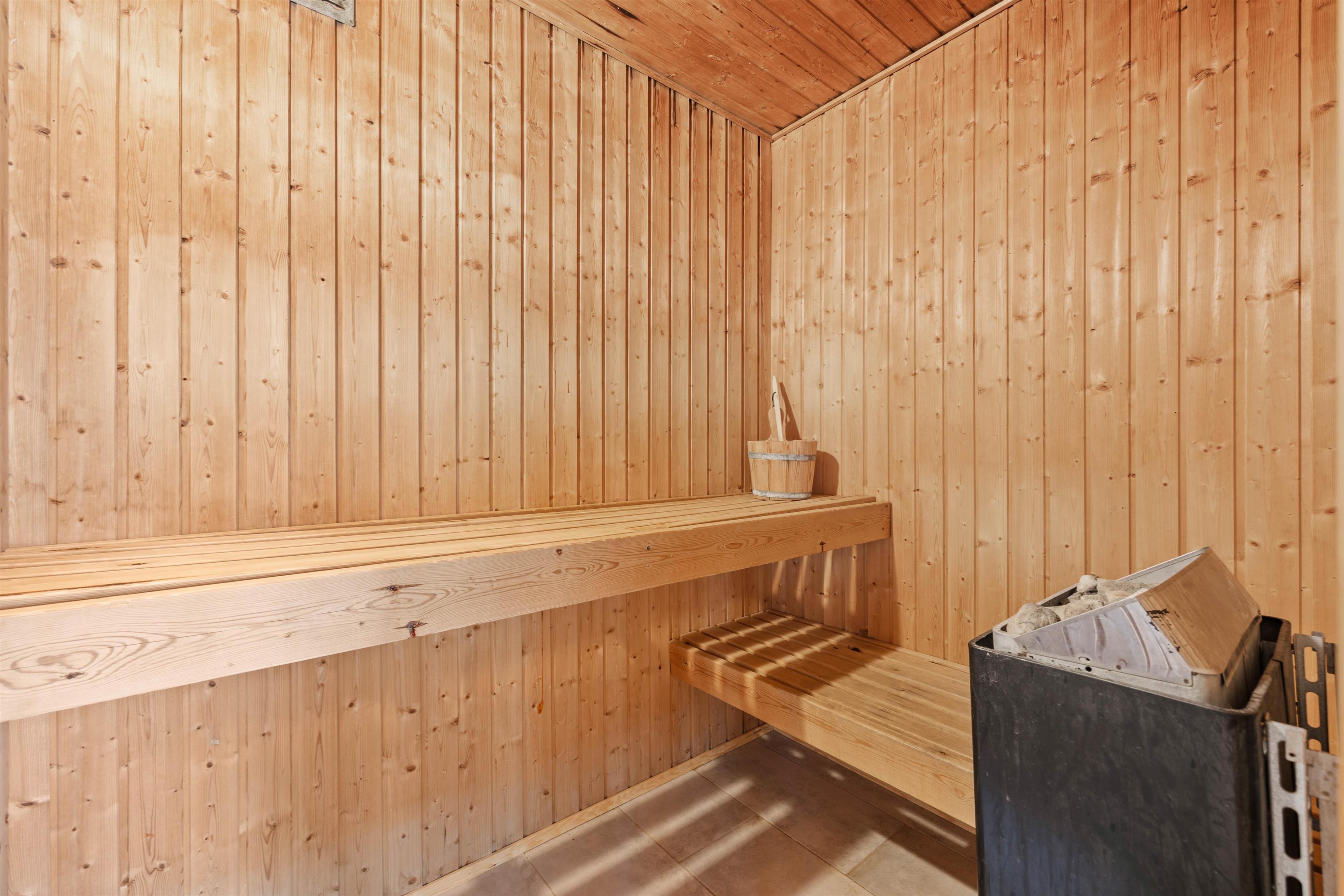 Feriehusets poolrum byder både på sjove og afslappende tider. Her finder I en 23 m2 pool, en spa og en sauna. Sommerhuset har 2 badeværelser, som begge har gulvvarme, og derudover er der også en vaskemaskine og en tørretumbler.
