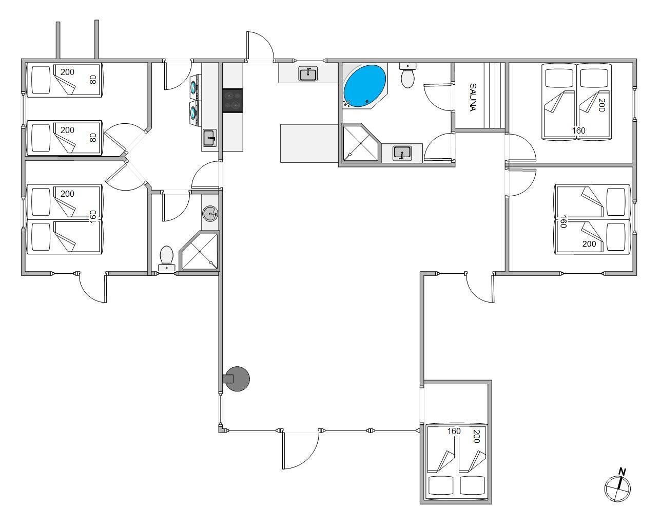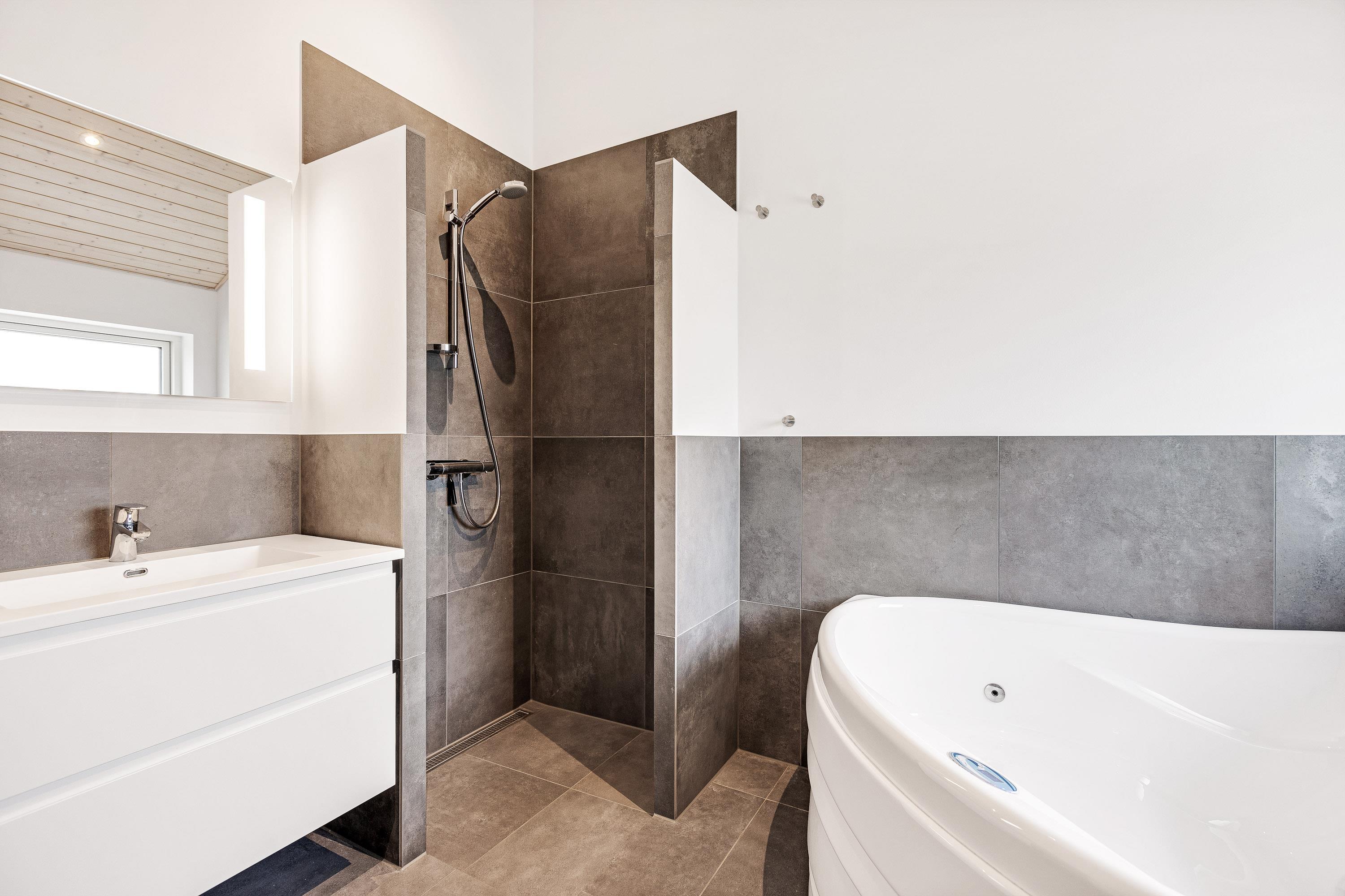 De to badeværelser med gulvvarme og bruser er meget praktiske, især med flere medrejsende. Vaskemaskine og tørretumbler overtager tøjvasken, så I altid har rene håndklæder til rådighed. Sovepladserne er fordelt på 3 soveværelser med dobbeltsenge, 1 soveværelse med 2 enkeltsenge og 2 sovepladser på hemsen.