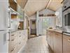 Hyggeligt sommerhus i Ringkøbing med lyse trælofter, brændeovn og overdækket terrasse til afslappende feriedage.