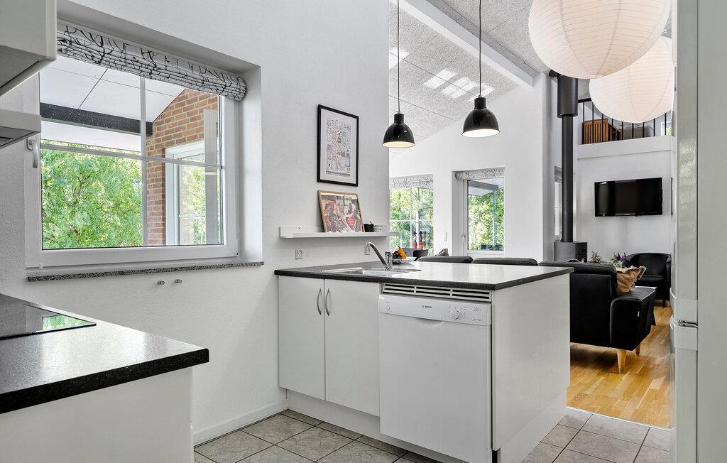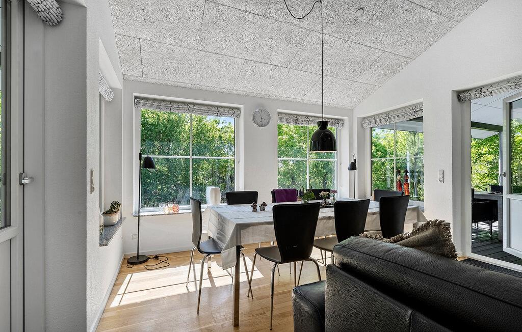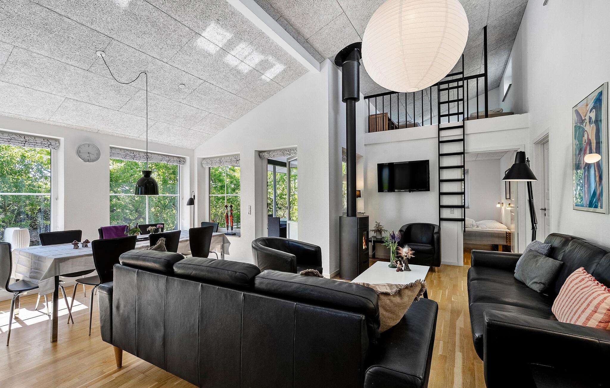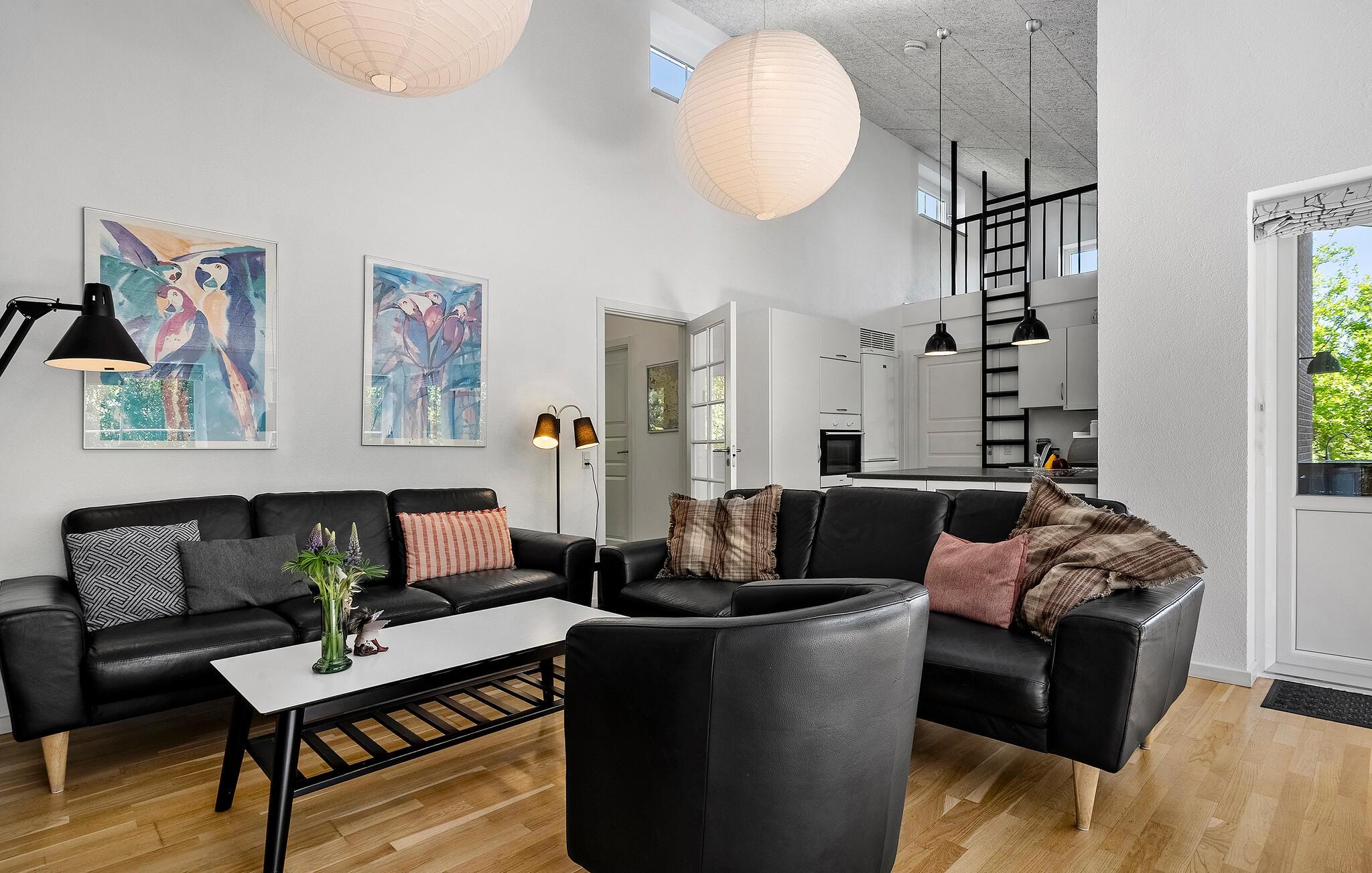 Beliggende i afsidesliggende naturskønne omgivelser tilbyder dette komfortable hjem masser af privatliv og adskillige ekstrafunktioner, som hele familien vil nyde. Snak med familien, mens I laver mad i det åbne køkken, og nyd den elegante atmosfære i den lyse opholdsstue, mens brændeovnen knitrer stille. Forkæl jer selv med afslappende øjeblikke i saunaen eller spabadet og find sammen om hyggelige filmaftener i den indbydende sofagruppe.