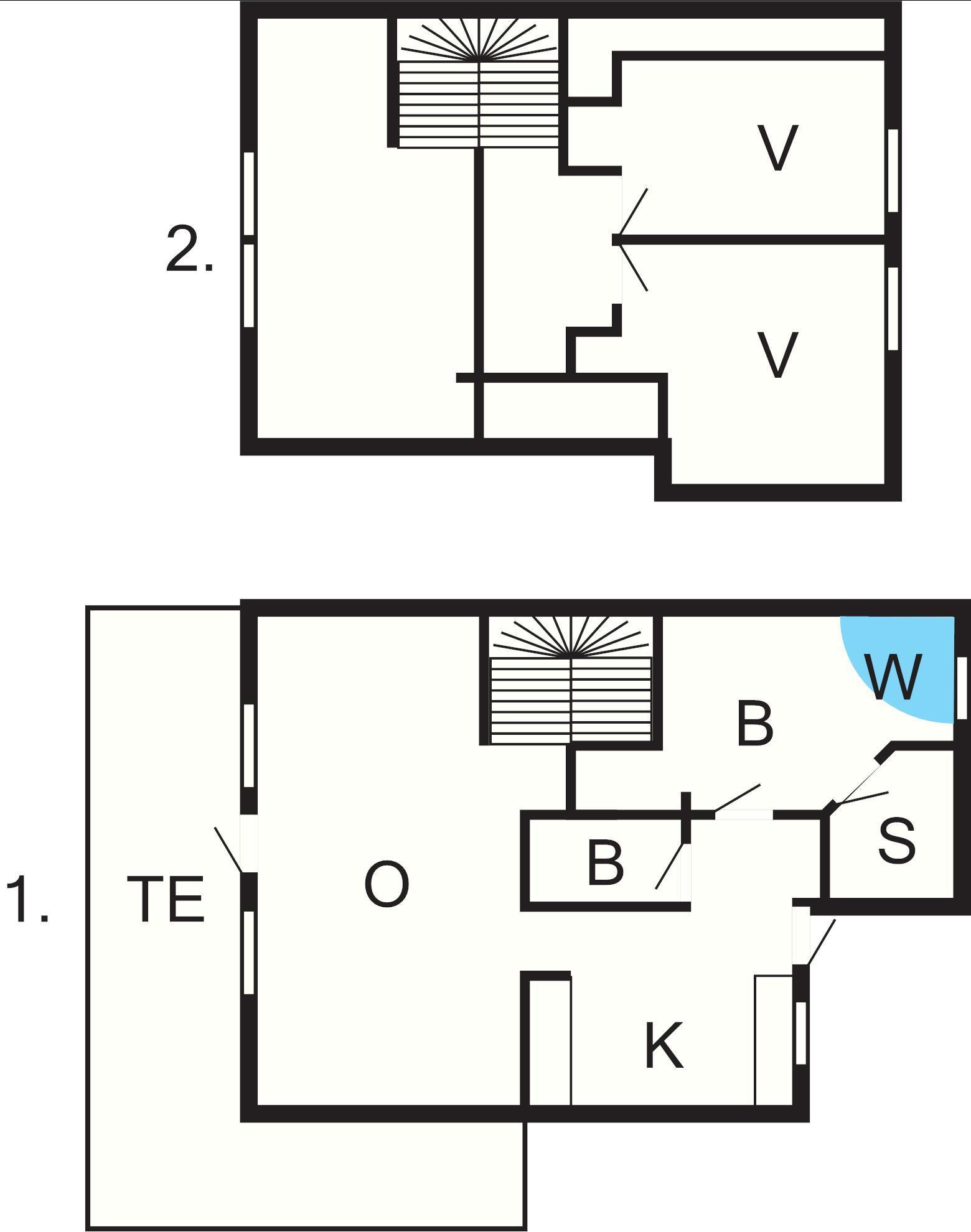 Hver klitgård består af 4 lejligheder med egen indgang. Stueetagen har åbent køkken, spiseplads og stue. Køkkenet har varmluftsovn og opvaskemaskine.
