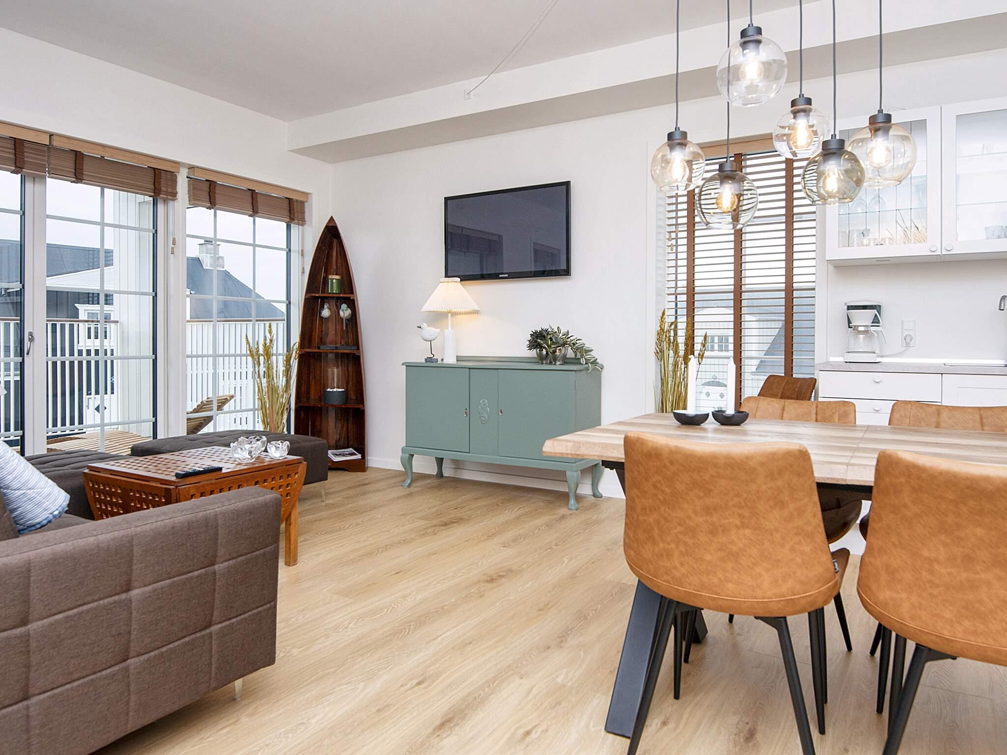 Lejligheden ligger i den hvide hovedbygning på Klitten og er moderne og smagfuldt indrettet. Lejligheden er i to plan. I stueplan er der to værelser med udgang til den østvendte terrasse fra begge soveværelser, hvor I kan nyde morgensolen. Der er også et lille ekstra værelse med en 100 cm bred sovesofa. På badeværelset kan du nyde spaen for en voksen eller to børn eller saunaen for tre personer. Der er også vaskemaskine og tørretumbler i ét. På første sal er der et dejligt køkken og stue med sovesofa til 2 og toilet. Herfra er der udgang til vestvendt altan med udsigt til klitlandskabet, hvor man kan nyde smukke solnedgange. Der er internet i lejligheden.