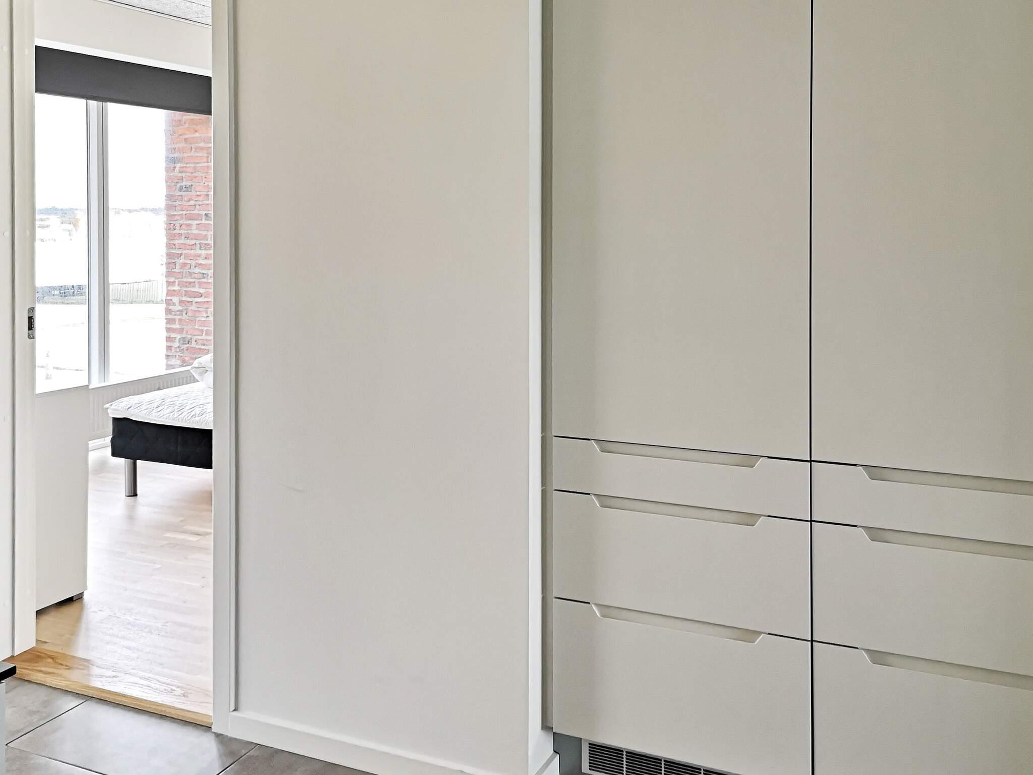 Lejligheden er bygget i 2019 og ligger på 1. sal. Lejligheden er en ende-lejlighed, og har derfor egen indgang og en fantastisk langstrakt udsigt mod byen. Lejligheden er flot, lyst, luksuriøst og moderne indrettet med fire soverum, hvoraf to er med dobbeltseng, et har to enkeltsenge som kan samles til en dobbeltseng og det sidste rum har 3 køjesenge i voksenstørrelse. Der er to moderne badeværelser med bruser og gulvvarme. På det ene badeværelse er der spabad, vaskemaskine og tørretumbler. Køkkenet er lyst og udstyret med bl.a. mikroovn og opvaskemaskine. Der er en højstol i lejligheden. Stuen er elegant og moderne indrettet med flotte møbler og fladskærms-tv. Alle værelser er ligeledes udstyret med fladskærms-tv, ligesom der på et af værelserne findes PlayStation. Til lejligheden hører en dejlig 1. sals terrasse, hvor der er udsigt til badebyen Søndervig. Terrassen er udstyret med kvalitetshavemøbler og herfra kan I fornemme den afslappede feriestemning i byen og nyde solen.