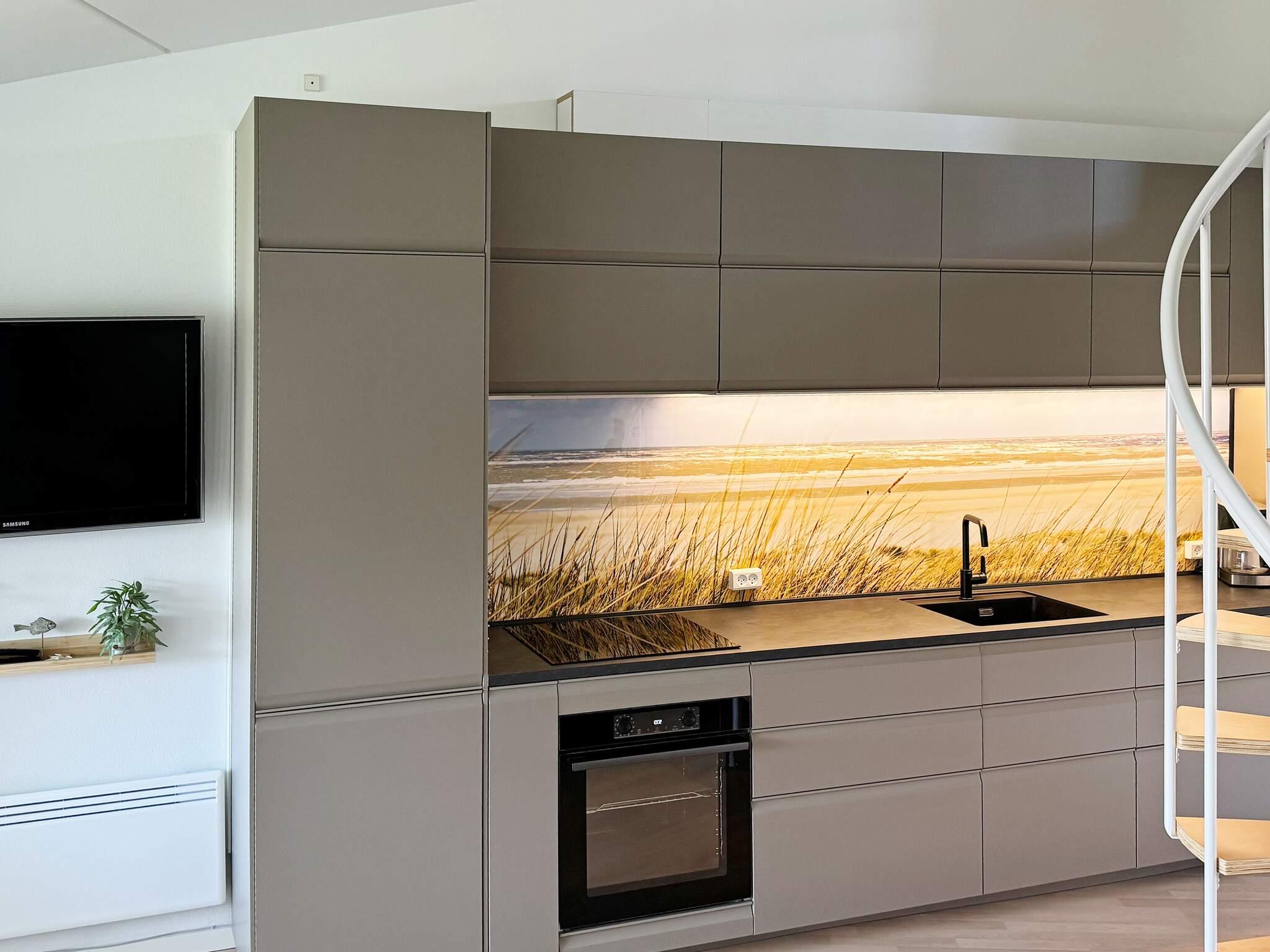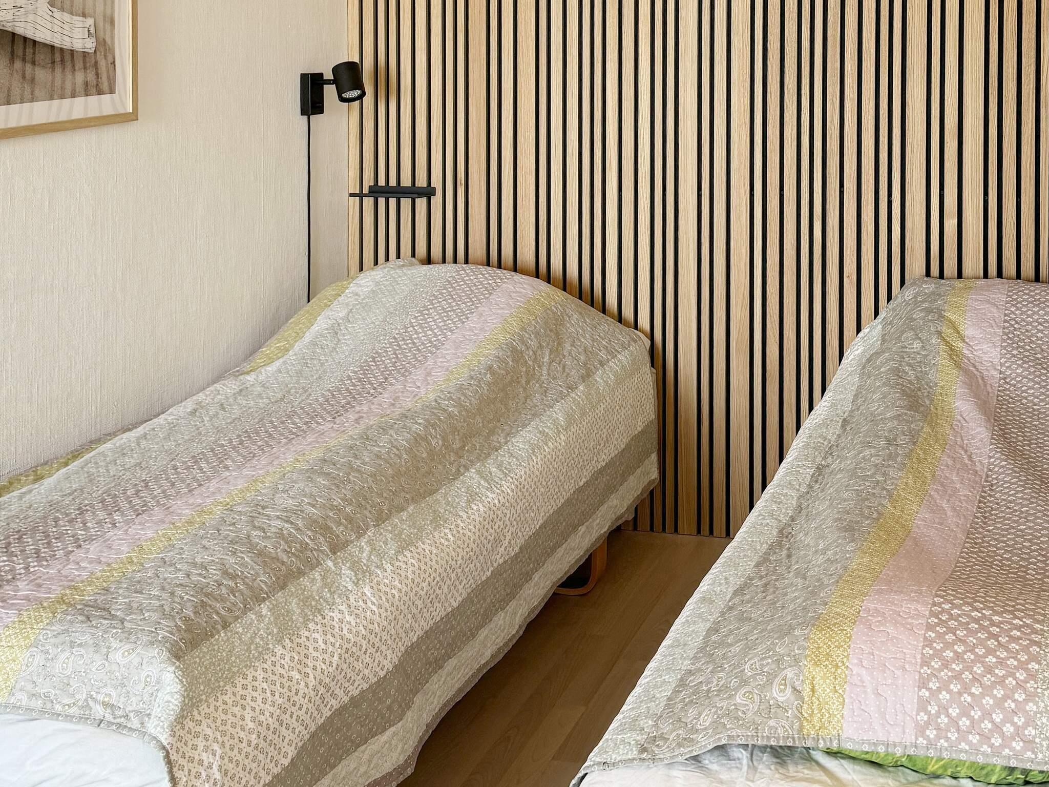 Indvendigt har lejligheden to rummelige soveværelser: det ene med en dobbeltseng og det andet med to enkeltsenge. Derudover er der en hyggelig hems (hems), der byder på ekstra soveplads med to ekstra senge, hvilket gør lejligheden velegnet til op til seks gæster. Opholds- og spiseområdet i åbent plan skaber et afslappet miljø, hvor du kan tilberede måltider, nyde familiemiddage eller slappe af sammen efter en dag med aktiviteter.