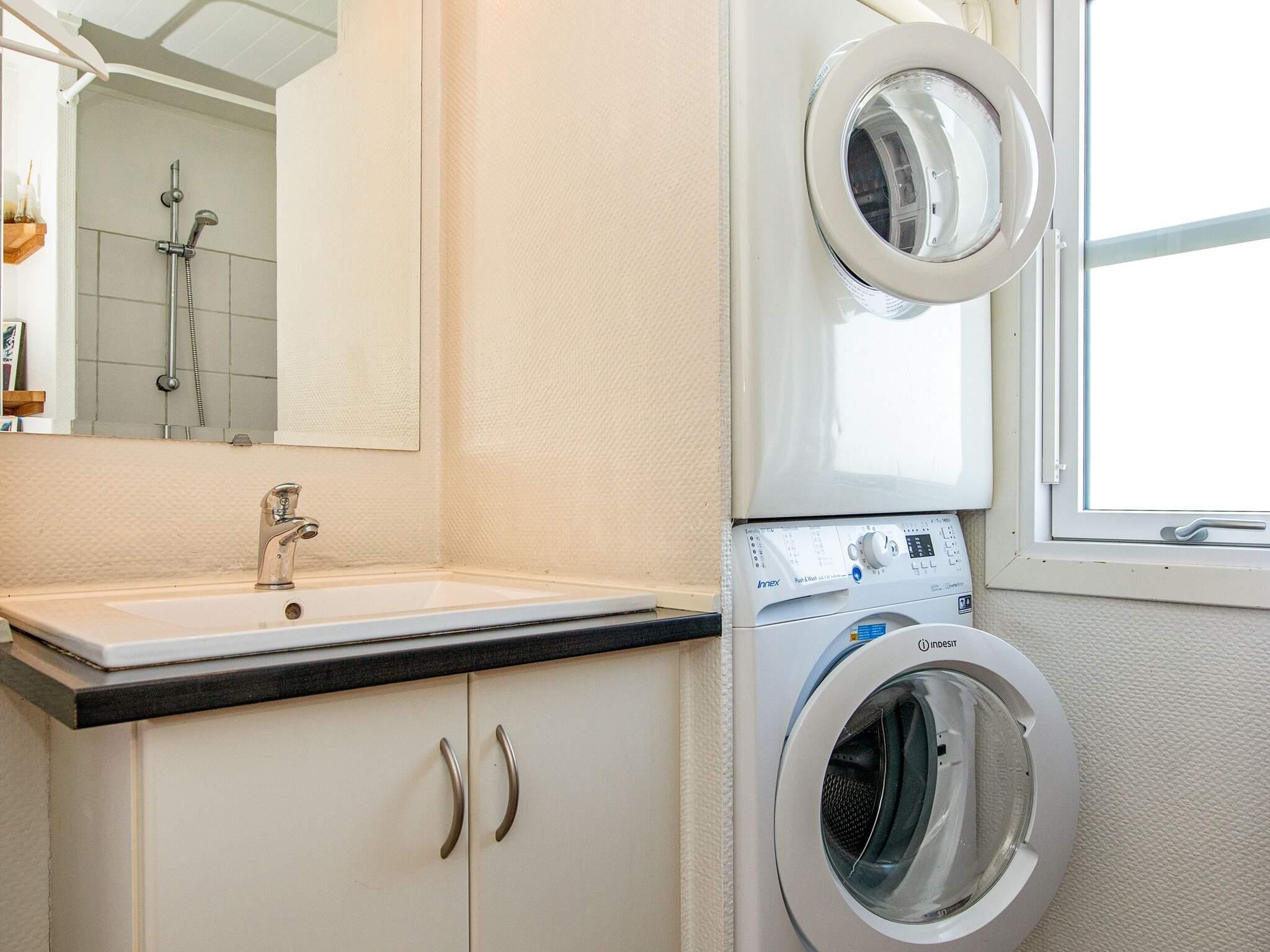 Køkkenet, som ligger i åben forbindelse med stuen, indeholder bl.a. opvaskemaskine, fryser, mikroovn og komfur med keramiske kogeplader samt varmluftsovn.