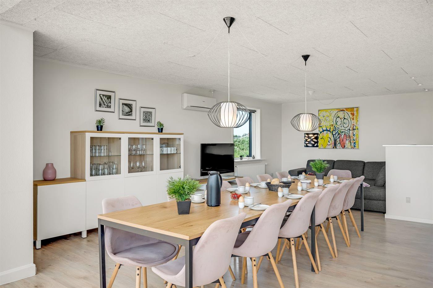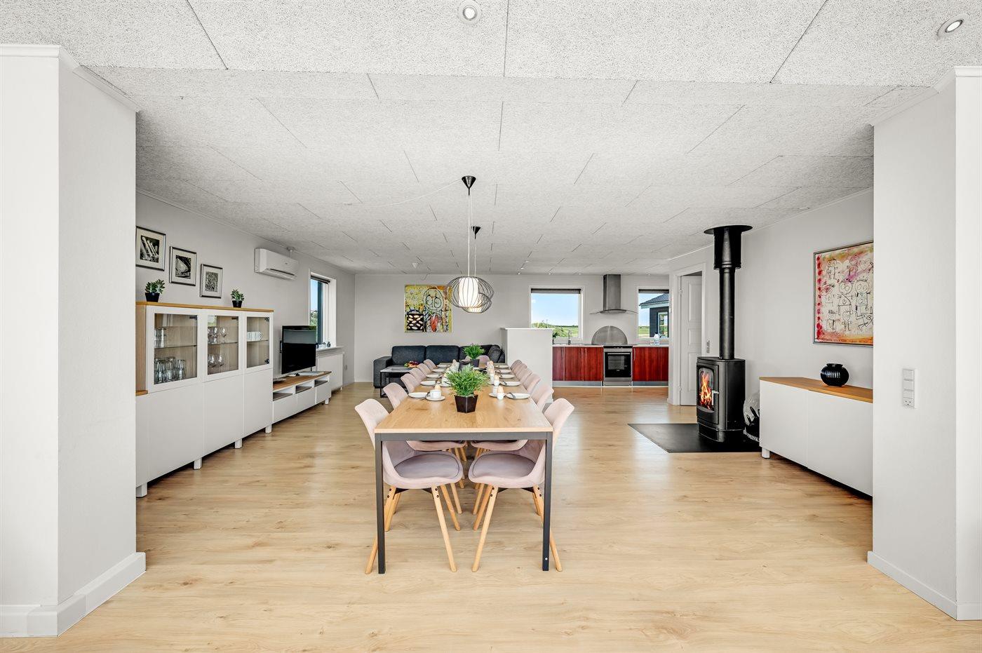Sommerhuset egner sig til 14 personer. Ferieboligen er på 240 m² og er bygget i 1967. I 2021 gennemgik ferieboligen en renovering. Det er tilladt at medbringe 2 husdyr. Ferieboligen er udstyret med 1 energibesparende luft til luft varmepumpe. Ferieboligen har vaskemaskine. Tørretumbler. Frysekapacitet på 80 liter. Der er desuden brændeovn.