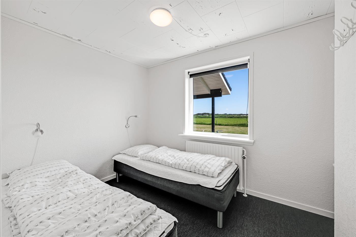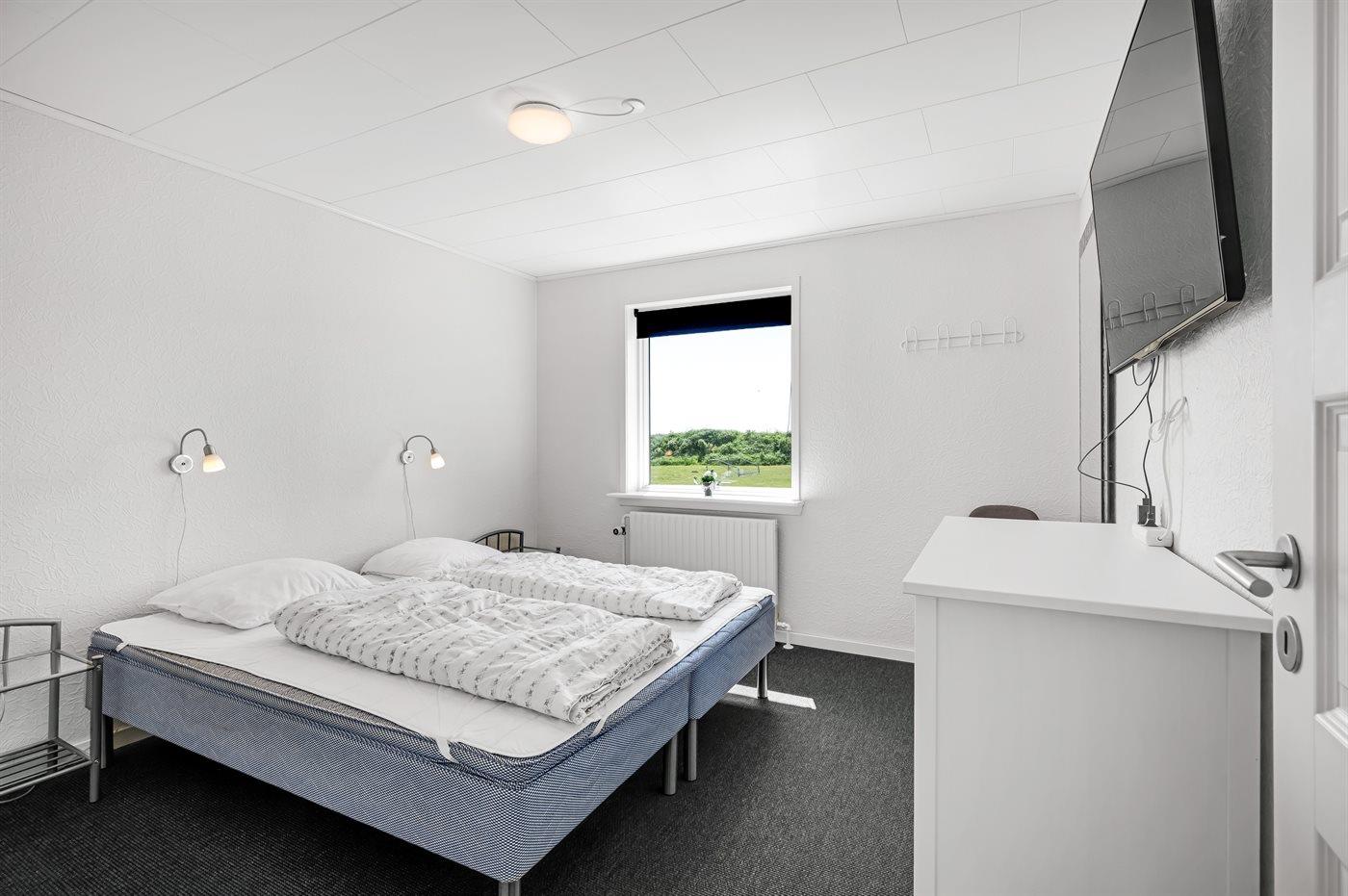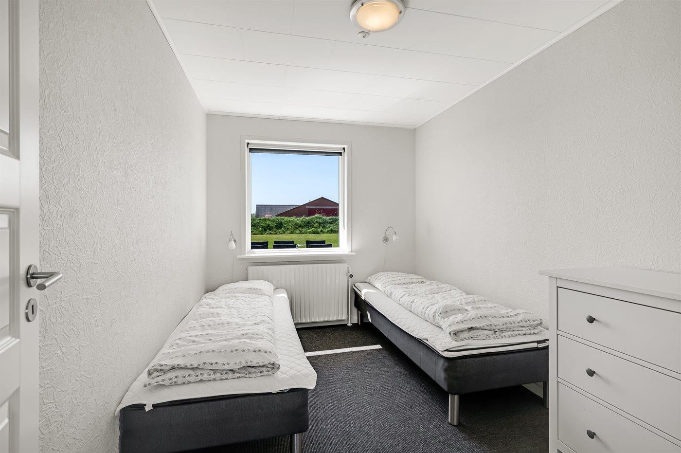 Der er i alt 5 soveværelser. Sovepladserne fordeler sig på: 2 sovepladser i dobbeltseng. 4 sovepladser i enkeltsenge. 4 sovepladser i køjesenge. 4 sovepladser på madrasser. 4 af disse sovepladser befinder sig på husets hems.