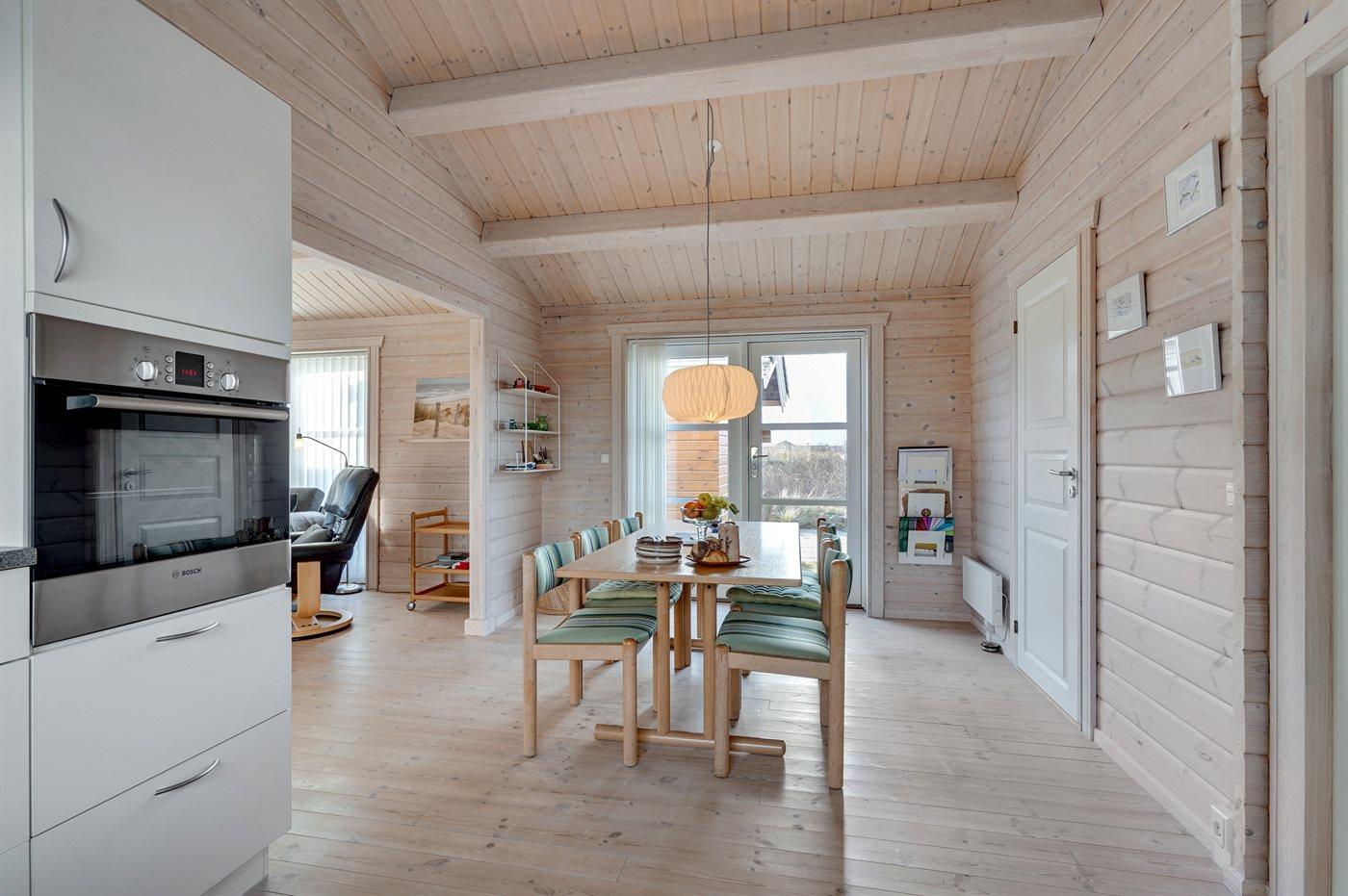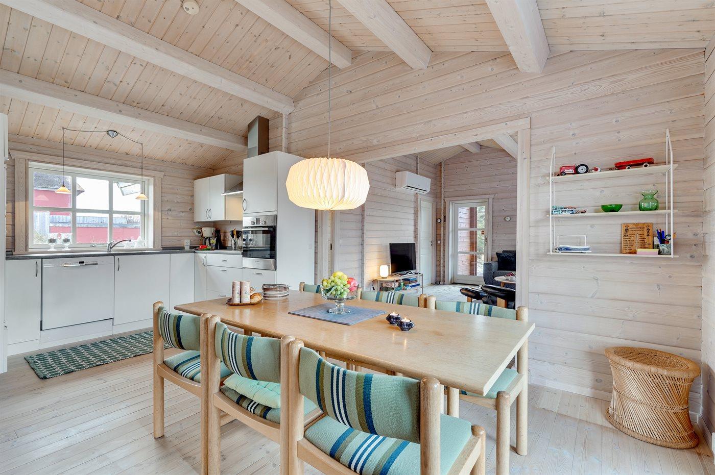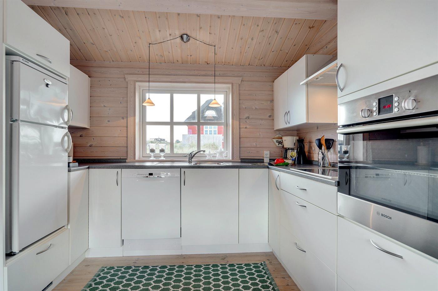 Køkkenet er udstyret med 1 køleskab. Der er 4 keramiske kogeplader, varmluftovn, mikrobølgeovn samt opvaskemaskine.