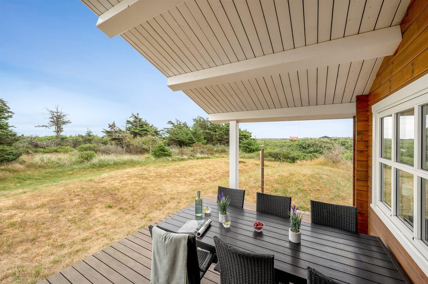 Ferieboligen er beliggende på en 1806 m² stor naturgrund. Der er 600 m til havet. Nærmeste forretning er beliggende i en afstand af 600 m. Der er en golfbane i en afstand af 500 m. Til ferieboligen hører åbent terrasseareal. Udendørs bruser. Der er carport til rådighed. Parkering ved ferieboligen.