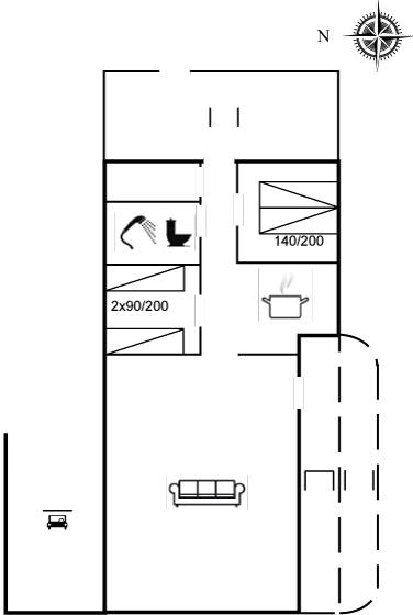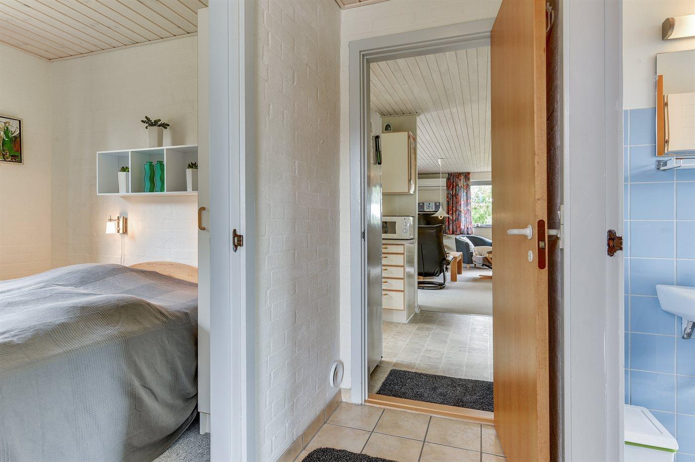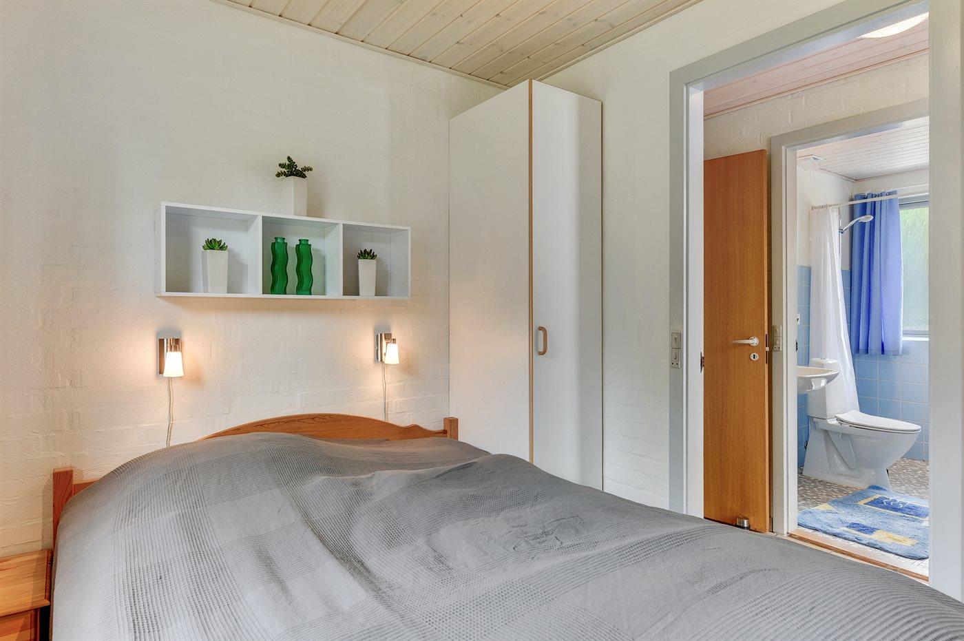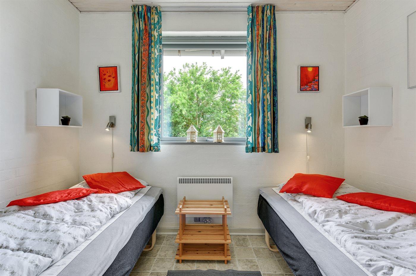 Der er i alt 2 soveværelser. Sovepladserne fordeler sig på: 2 sovepladser i dobbeltseng. 2 sovepladser i enkeltsenge. Derudover er der 1 stk. barneseng.
