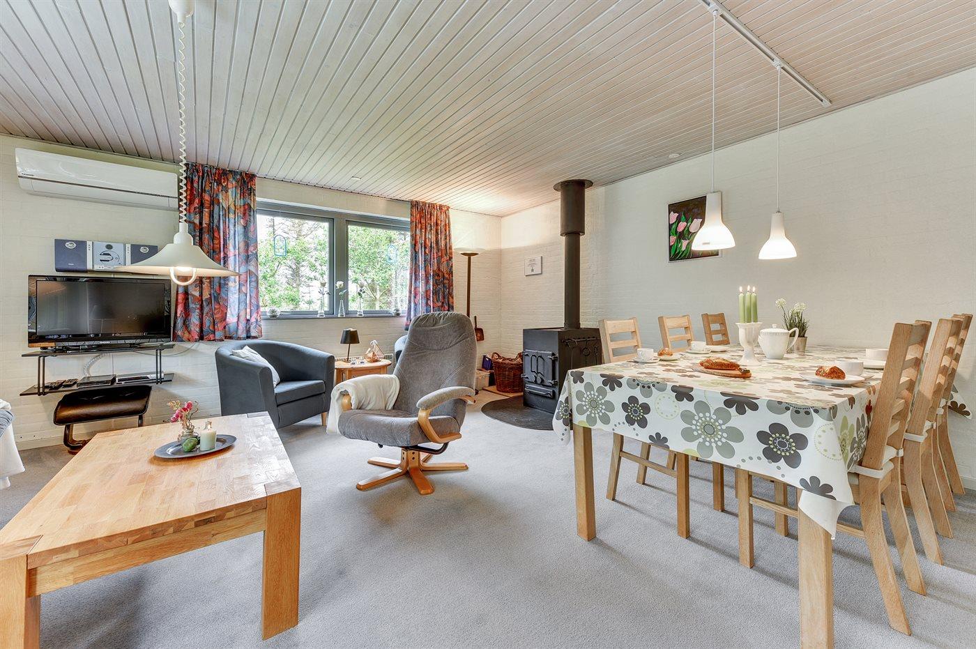 Sommerhuset egner sig til 4 personer samt 1 barn op til 3 år. Ferieboligen er på 65 m² og er bygget i 1971. Det er tilladt at medbringe 1 husdyr. Ferieboligen er udstyret med energibesparende varmepumpe. Ferieboligen har vaskemaskine. Tørretumbler. Frysekapacitet på 92 liter. Der er desuden brændeovn. Til de små er der 1 stk. barnestol.