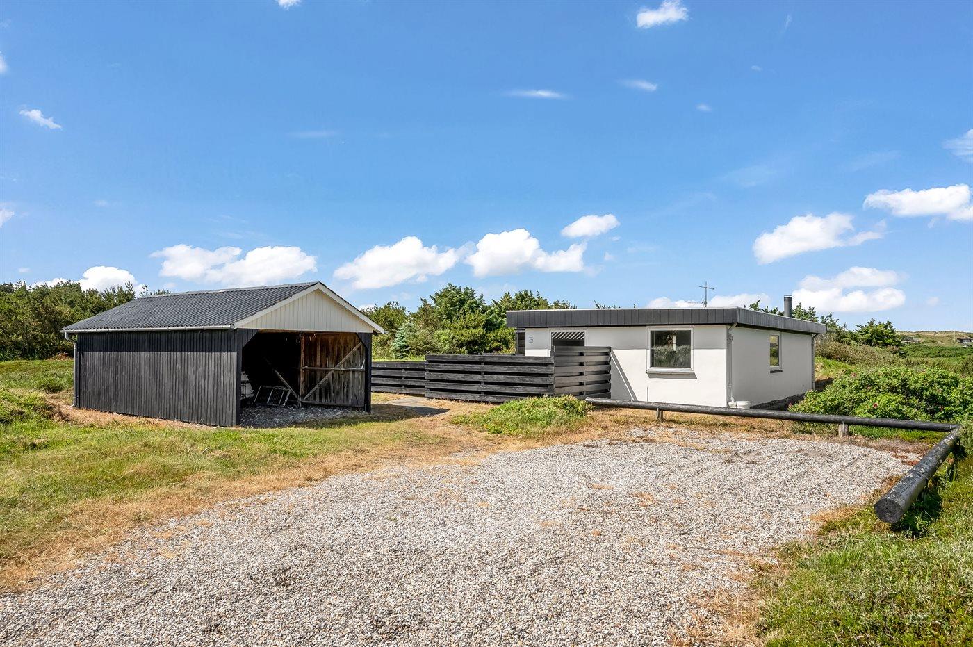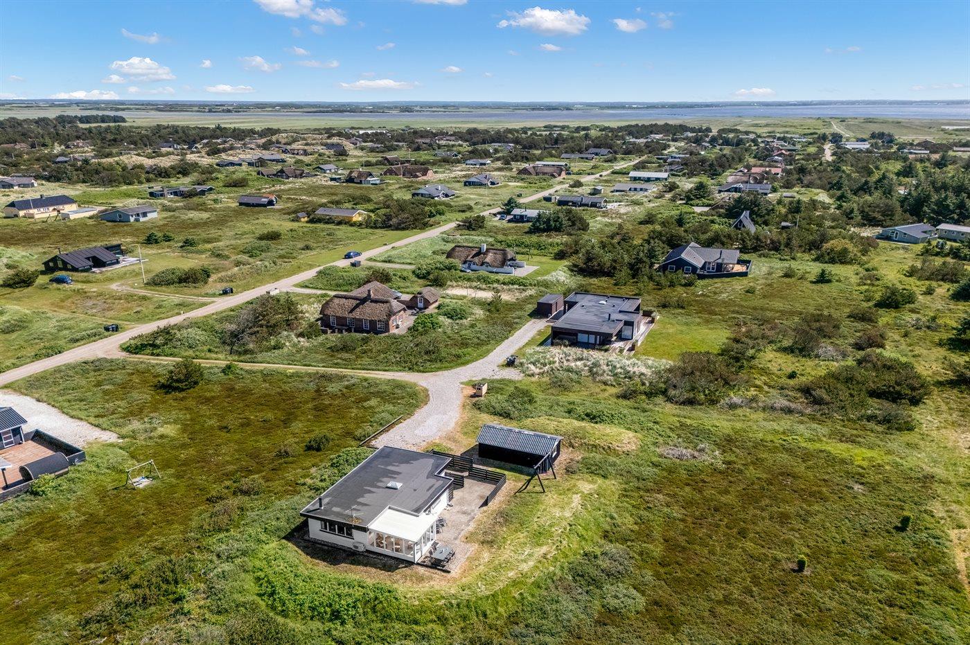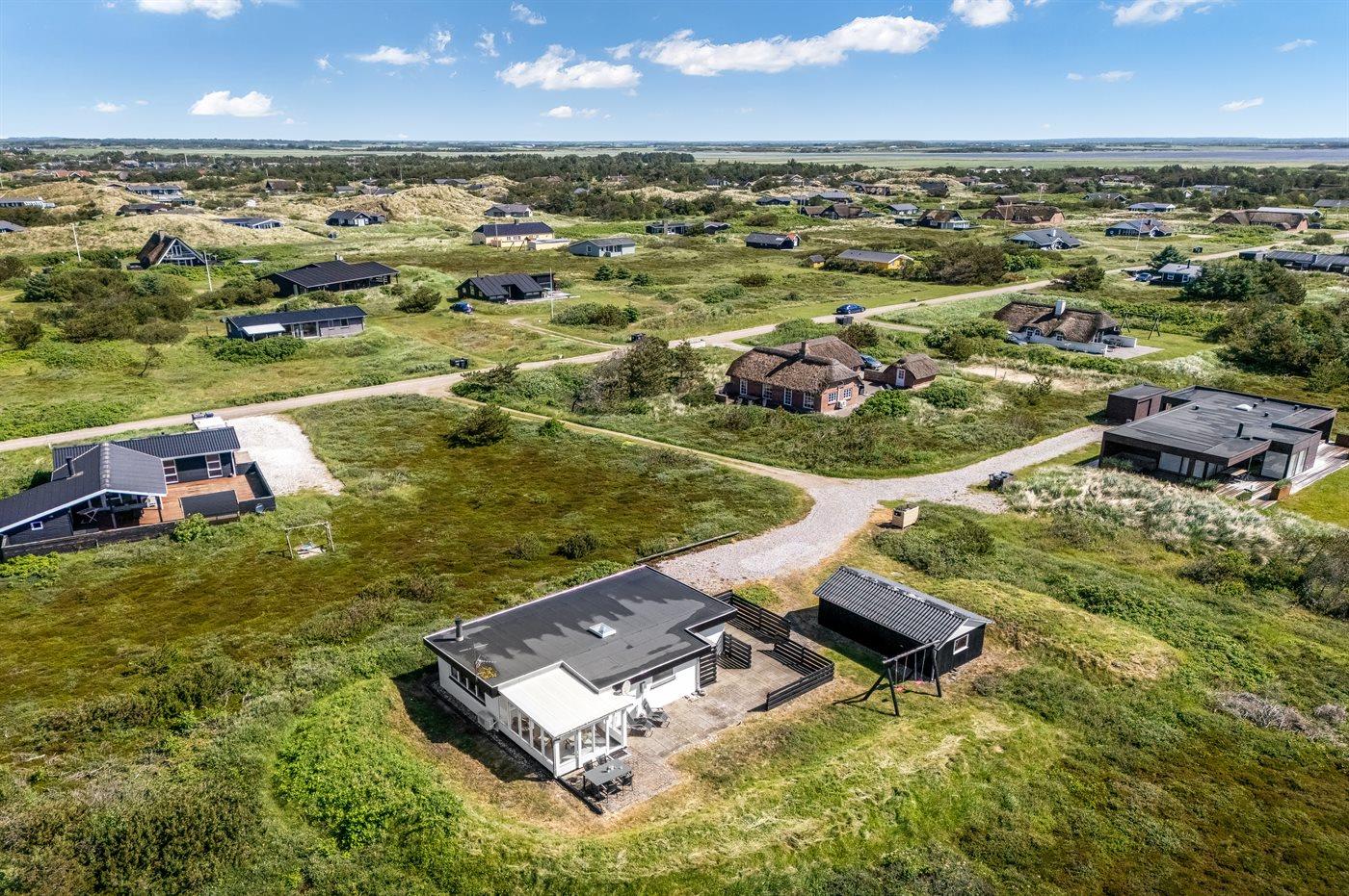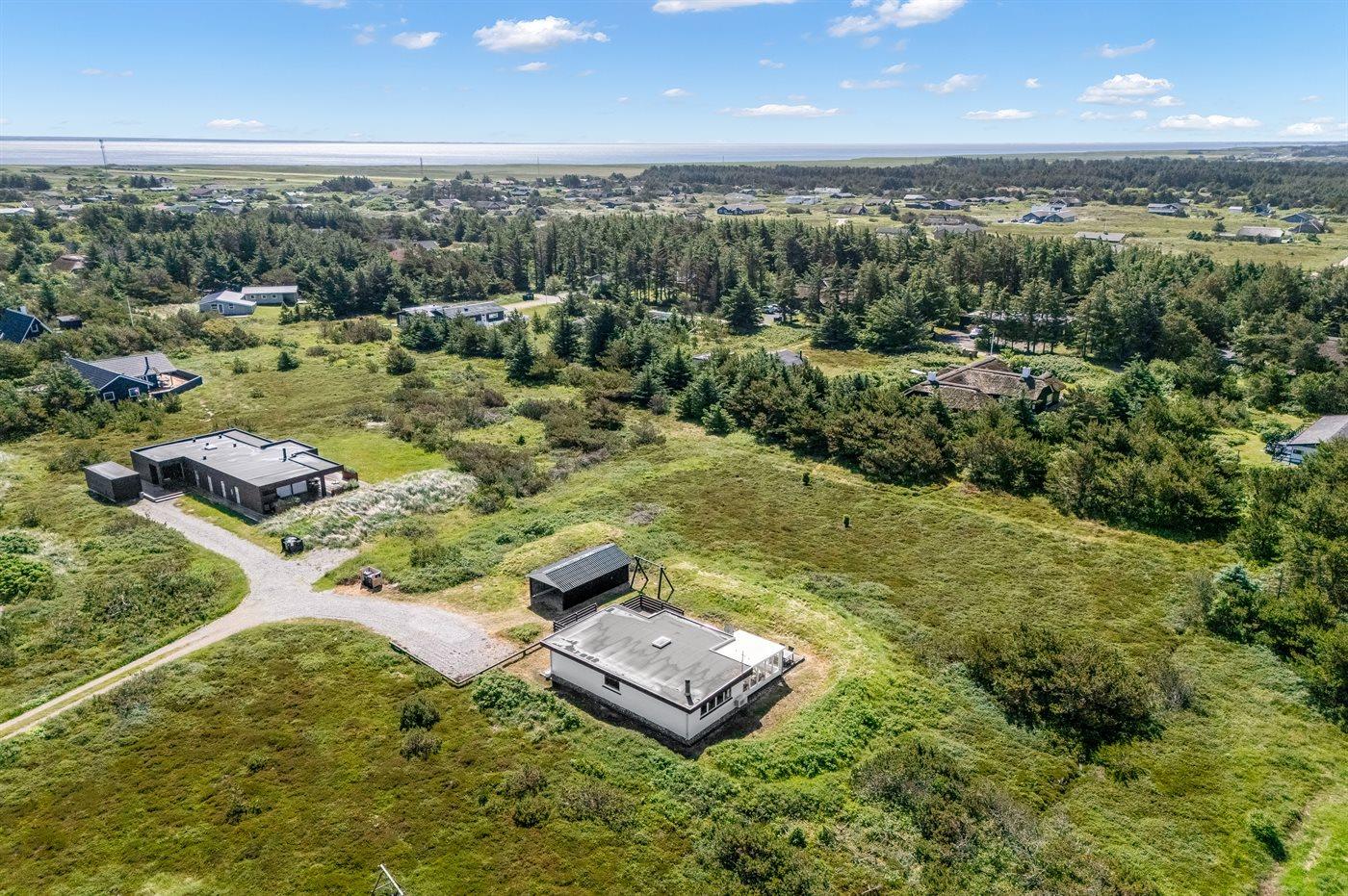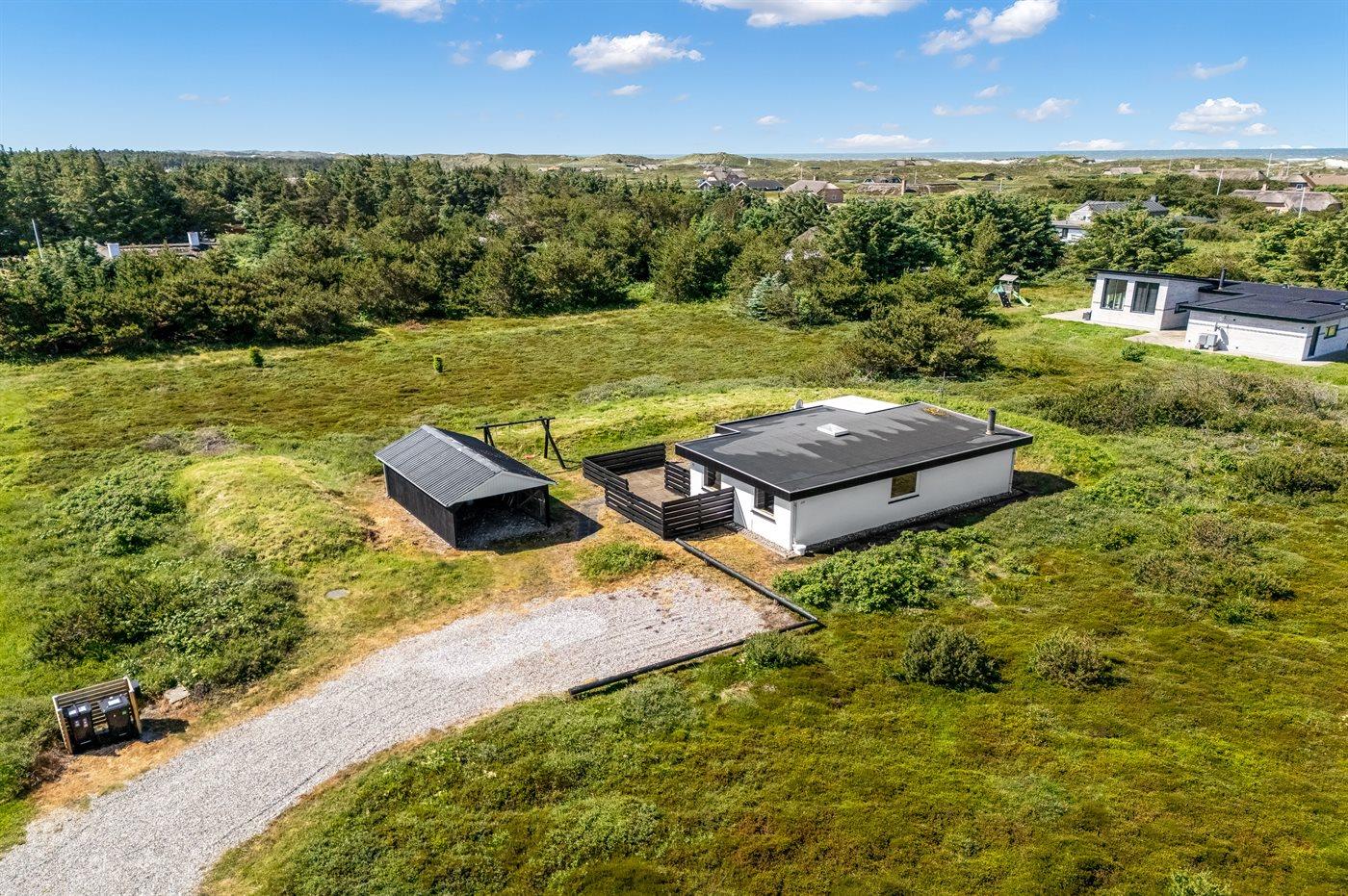 Ferieboligen er beliggende på en 2500 m² stor naturgrund. Der er 700 m til havet. Der er 1500 m til fjorden. Nærmeste forretning er beliggende i en afstand af 2000 m. Der er en golfbane i en afstand af 3000 m. Til ferieboligen hører 40 m² terrasseareal. Gynge. Der er carport til rådighed. Parkering ved ferieboligen.