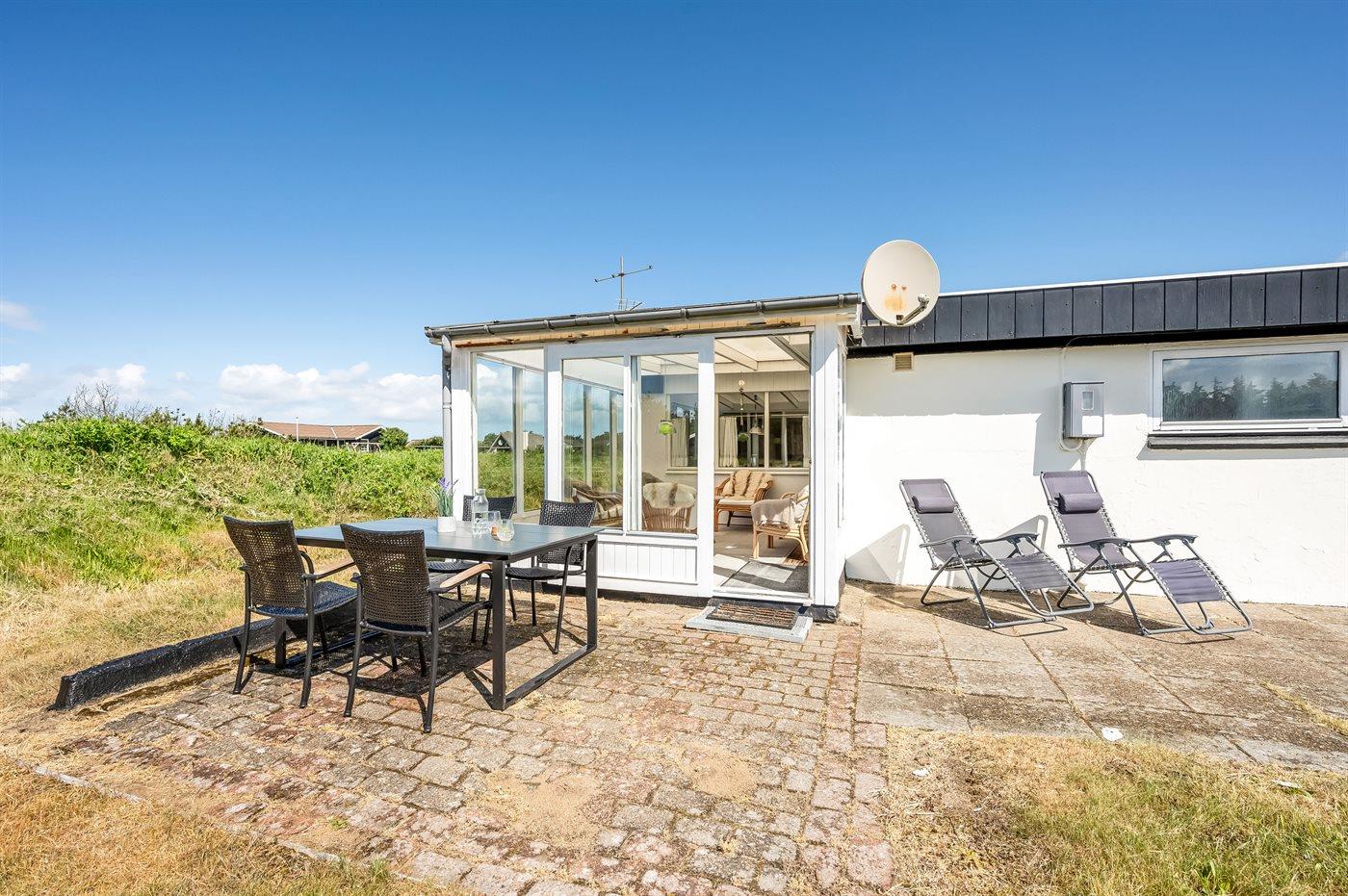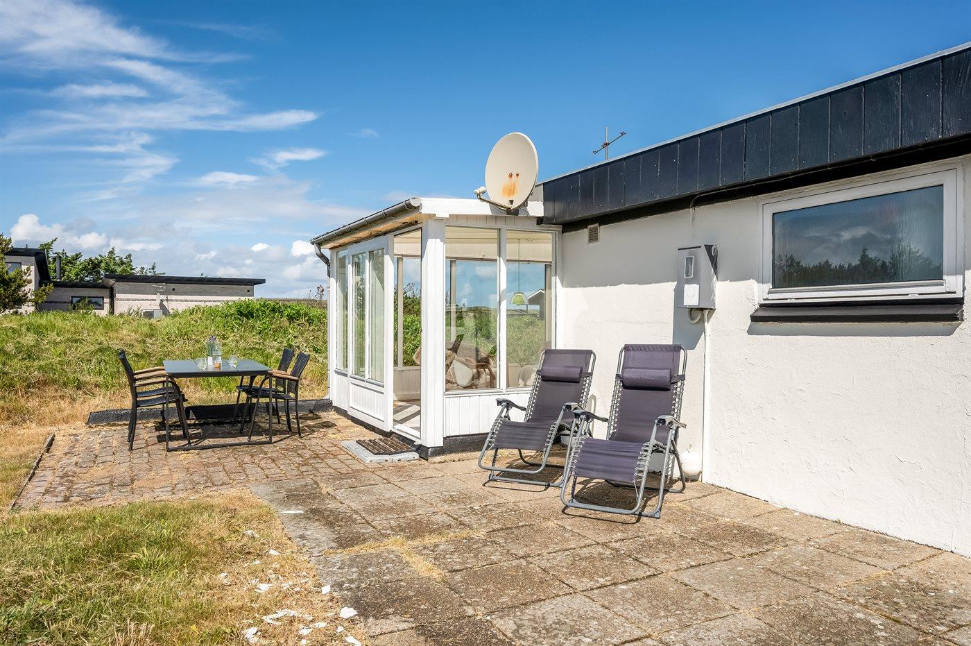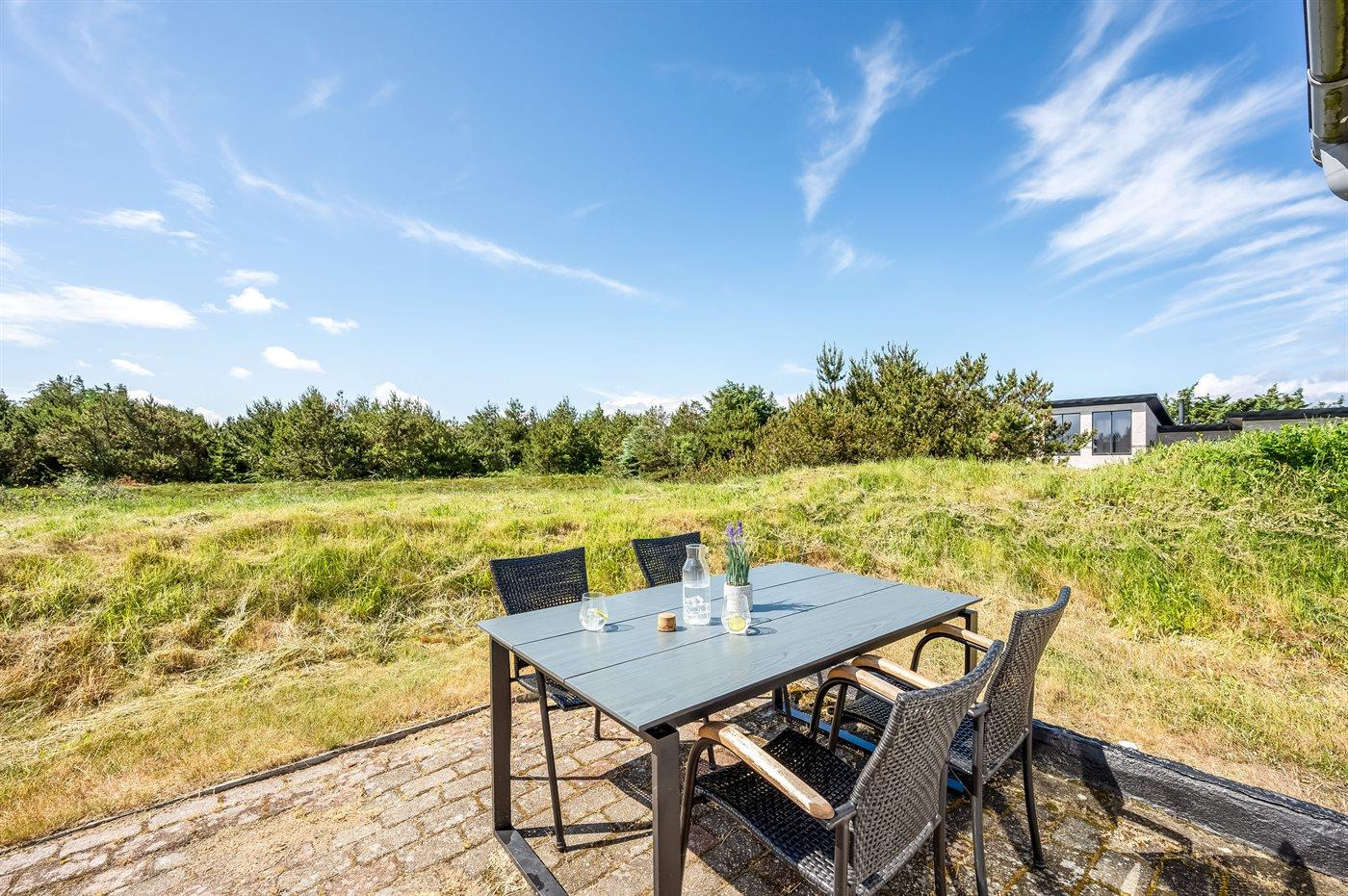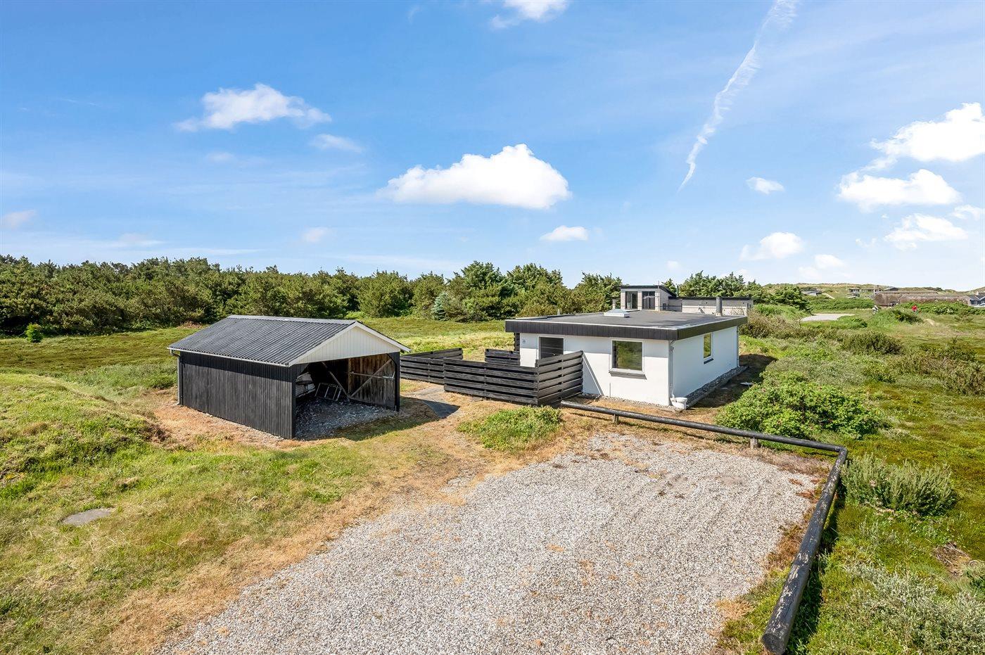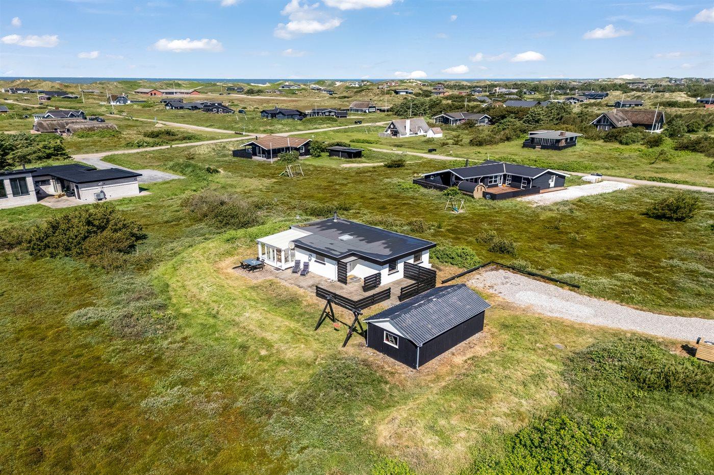 Ferieboligen er beliggende på en 2500 m² stor naturgrund. Der er 700 m til havet. Der er 1500 m til fjorden. Nærmeste forretning er beliggende i en afstand af 2000 m. Der er en golfbane i en afstand af 3000 m. Til ferieboligen hører 40 m² terrasseareal. Gynge. Der er carport til rådighed. Parkering ved ferieboligen.