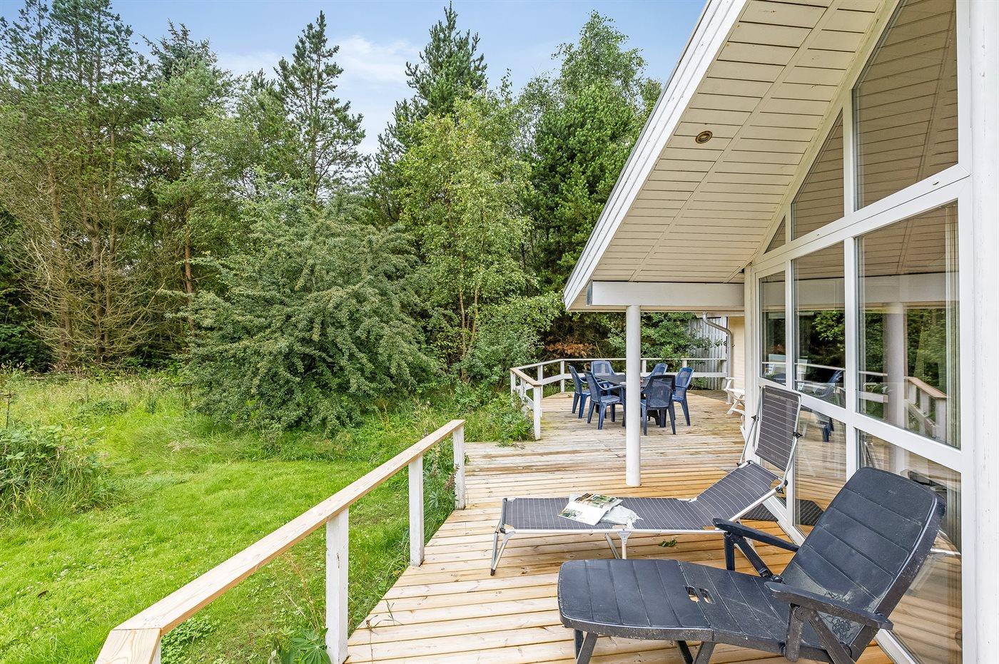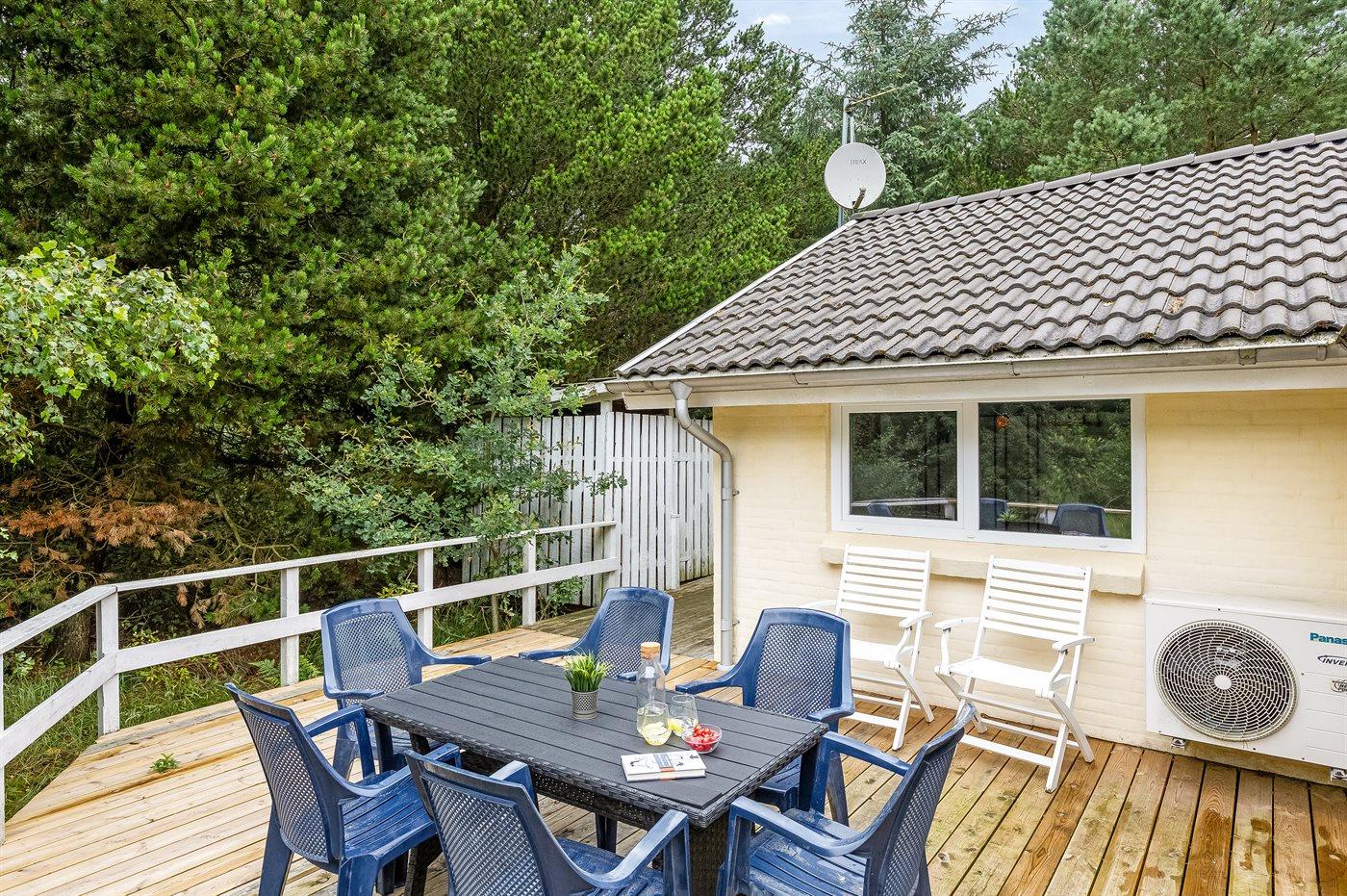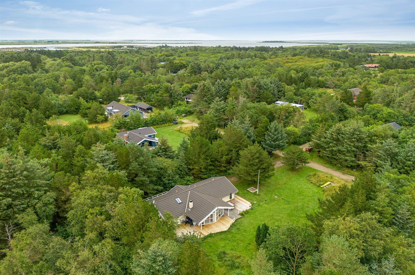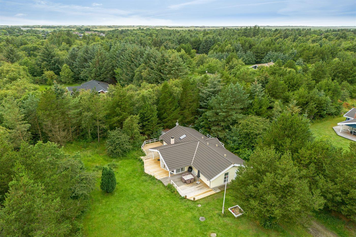 Ferieboligen er beliggende på en 2461 m² stor naturgrund. Der er 2000 m til havet. Nærmeste forretning er beliggende i en afstand af 2000 m. Der er en golfbane i en afstand af 1000 m. Til ferieboligen hører åbent terrasseareal. Desuden er der overdækket terrasse. Sandkasse. Der er installeret stik til opladning af elbil. Med 11 kW ladeeffekt. Parkering ved ferieboligen.