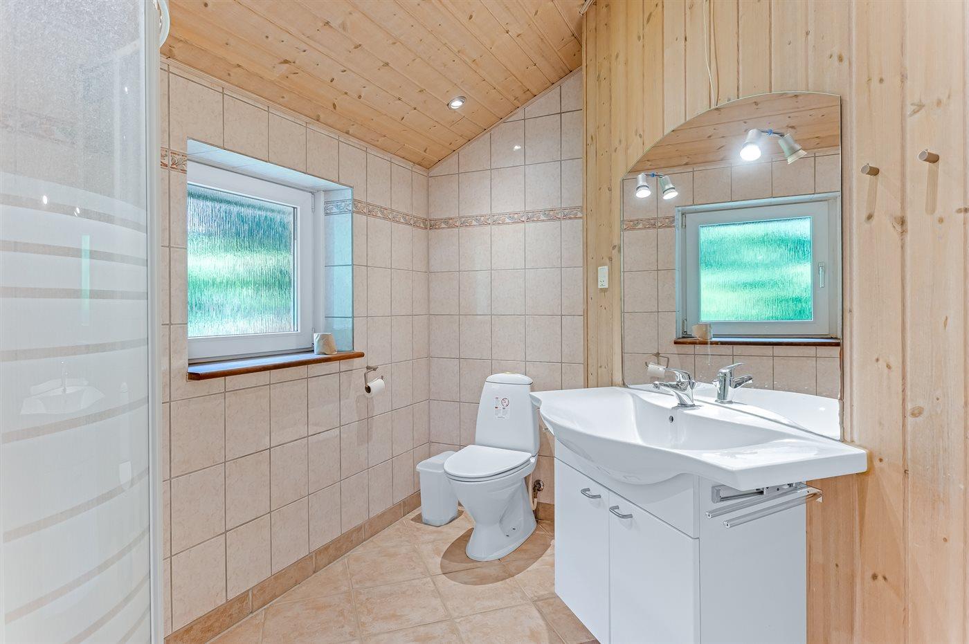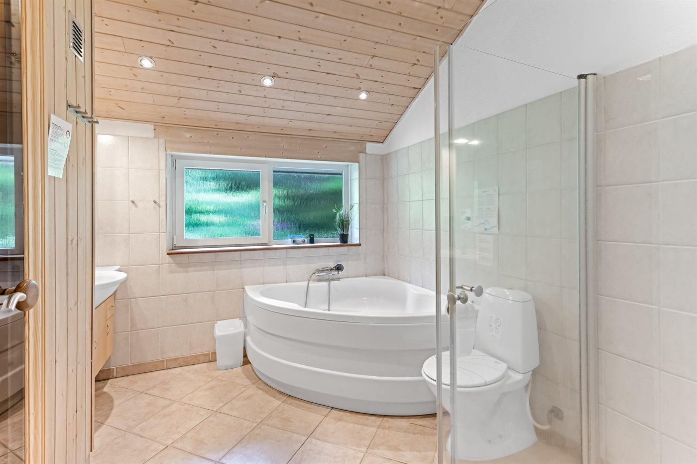 Der er 2 badeværelser med bruseniche og 2 toiletter. Der er gulvvarme på 2 badeværelser. I saunaen er der mulighed for afslapning.