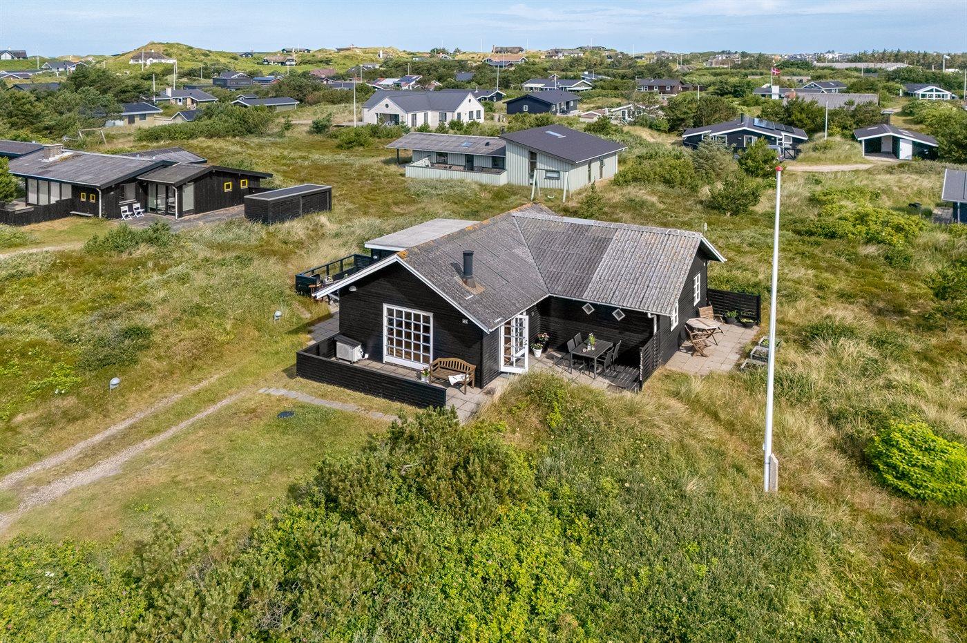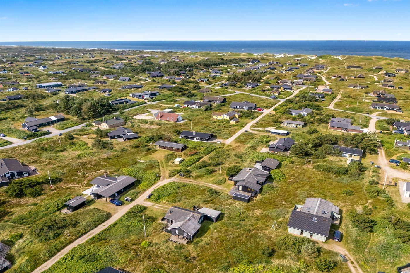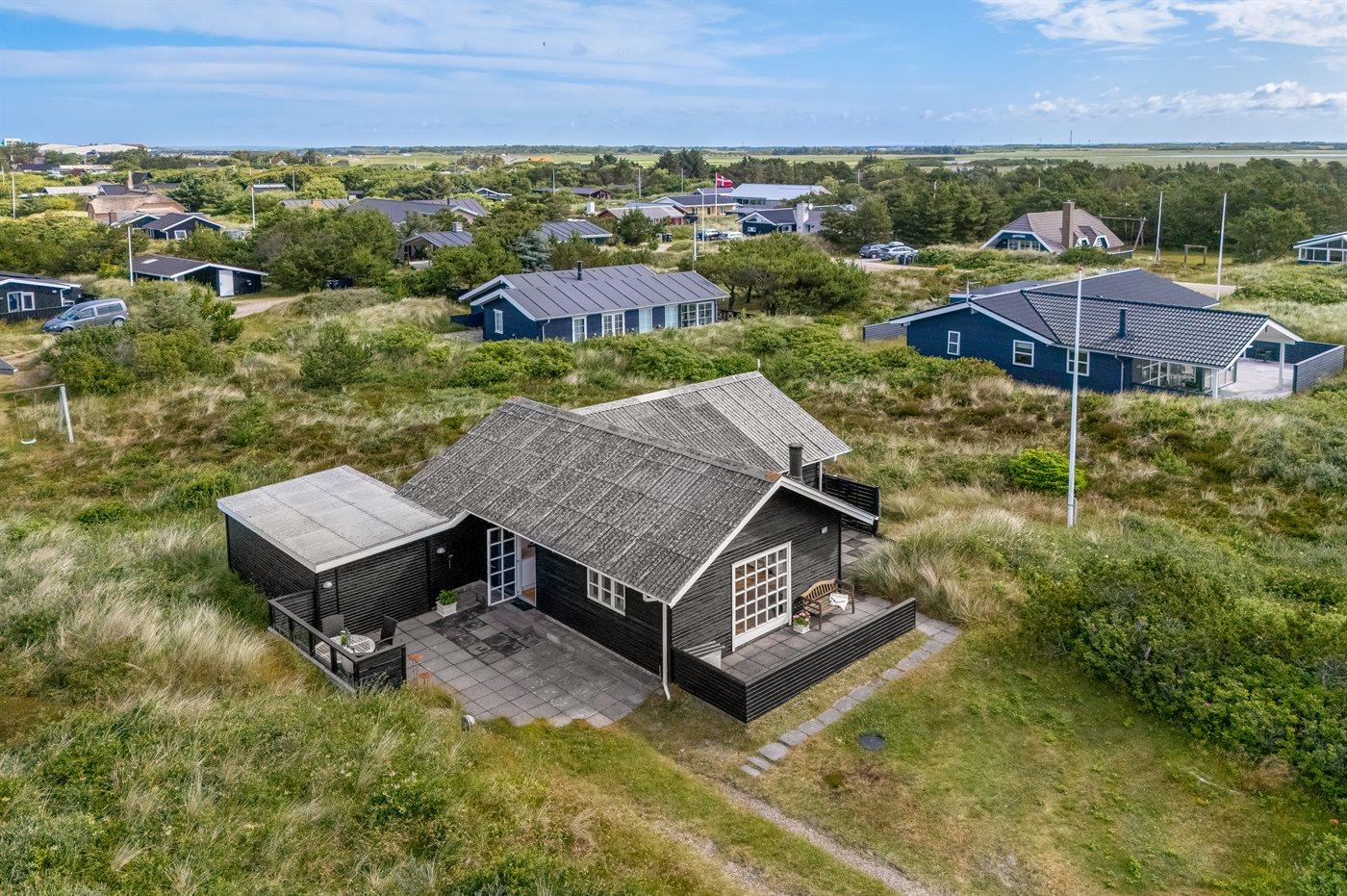 Dette charmerende sommerhus ligger i gåafstand til Vesterhavet og det livlige ferieområde Søndervig. Her får I den perfekte kombination af ro, natur og aktiviteter – ideelt til en afslappende ferie væk fra hverdagens stress og jag.