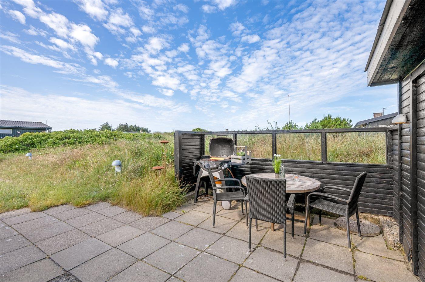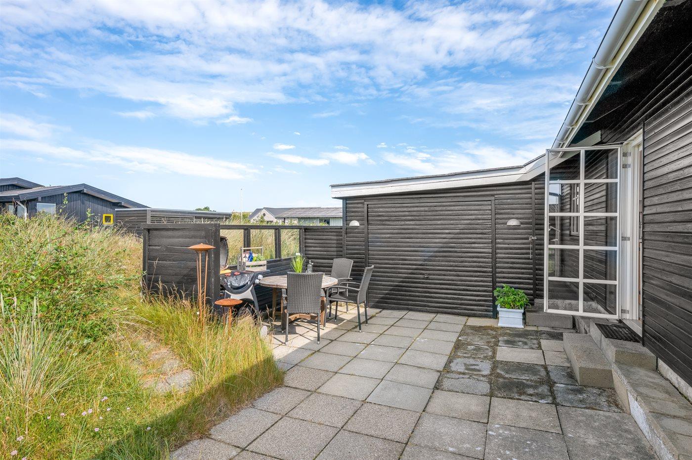 Ferieboligen er beliggende på en 1411 m² stor naturgrund. Der er 800 m til havet. Der er 1300 m til fjorden. Nærmeste forretning er beliggende i en afstand af 1200 m. Der er en golfbane i en afstand af 3000 m. Til ferieboligen hører åbent terrasseareal. Parkering ved ferieboligen.