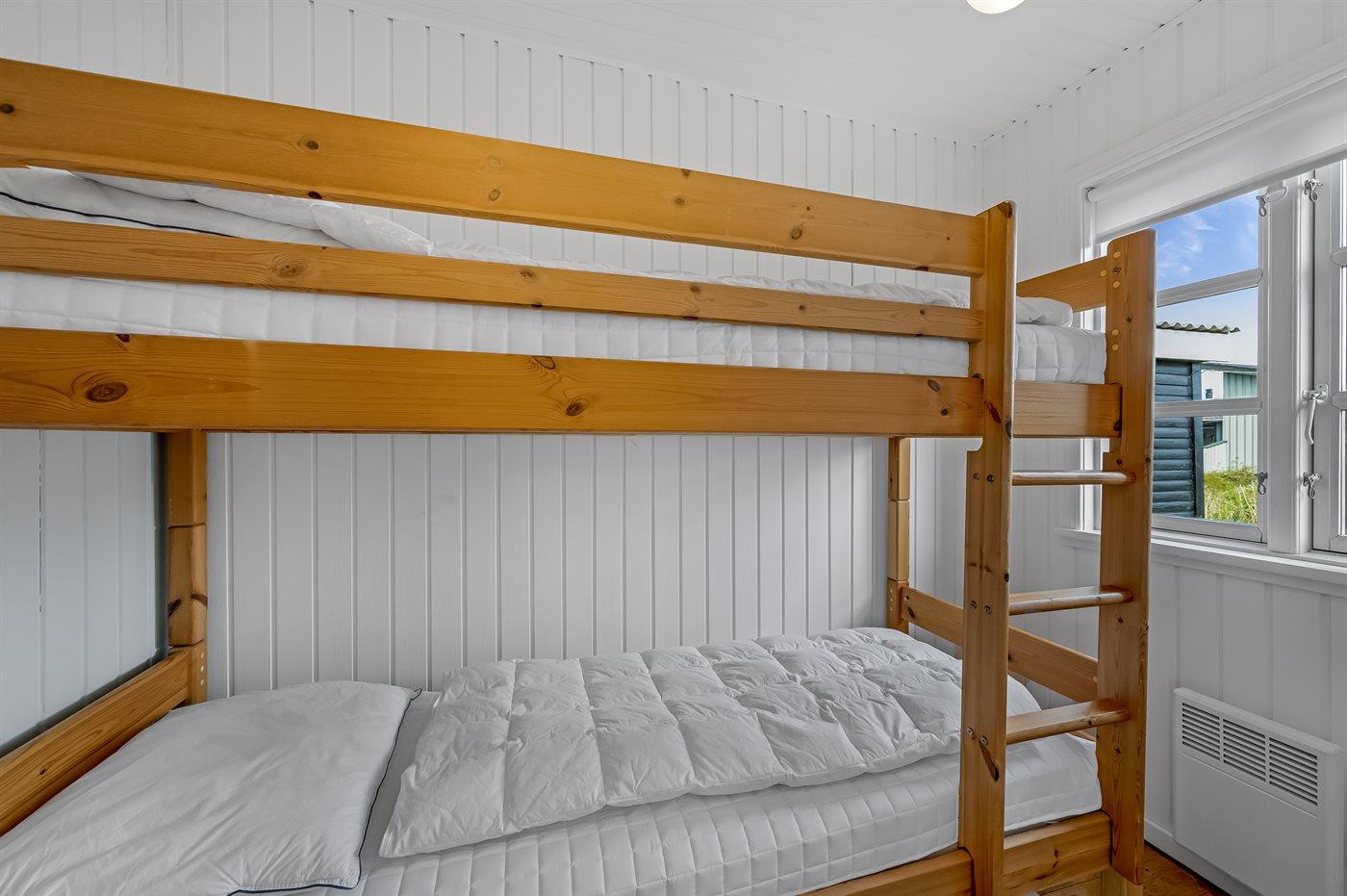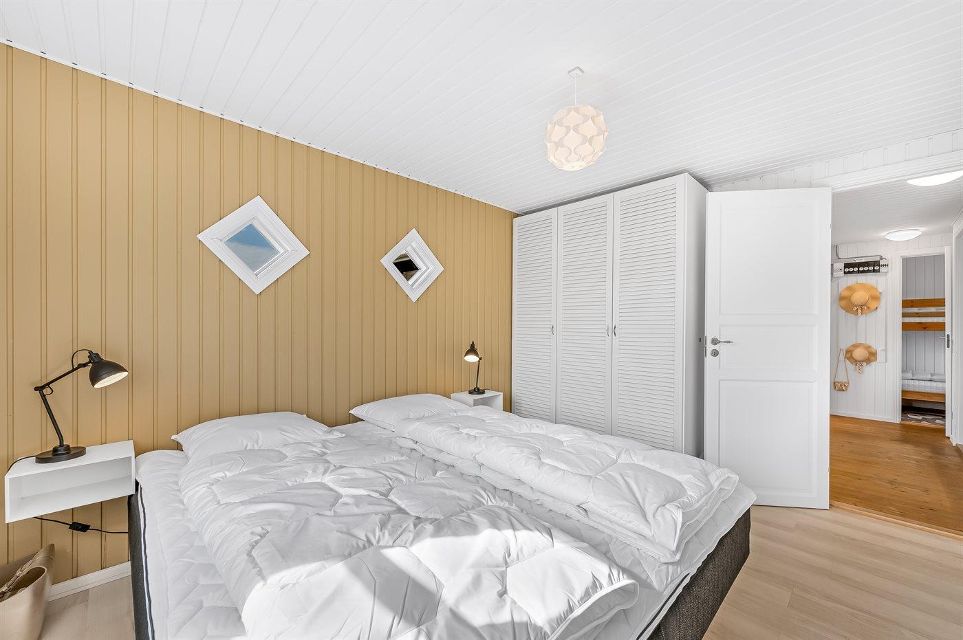 Der er i alt 3 soveværelser. Sovepladserne fordeler sig på: 4 sovepladser i dobbeltsenge. 2 sovepladser i køjeseng.