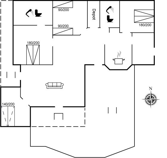 Der er i alt 4 soveværelser. Sovepladserne fordeler sig på: 4 sovepladser i dobbeltsenge. 2 sovepladser i enkeltsenge. 2 sovepladser i sovesofa (dobbelt).