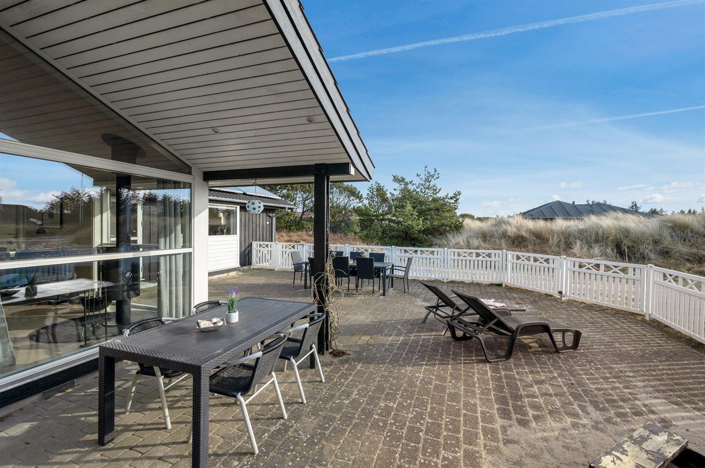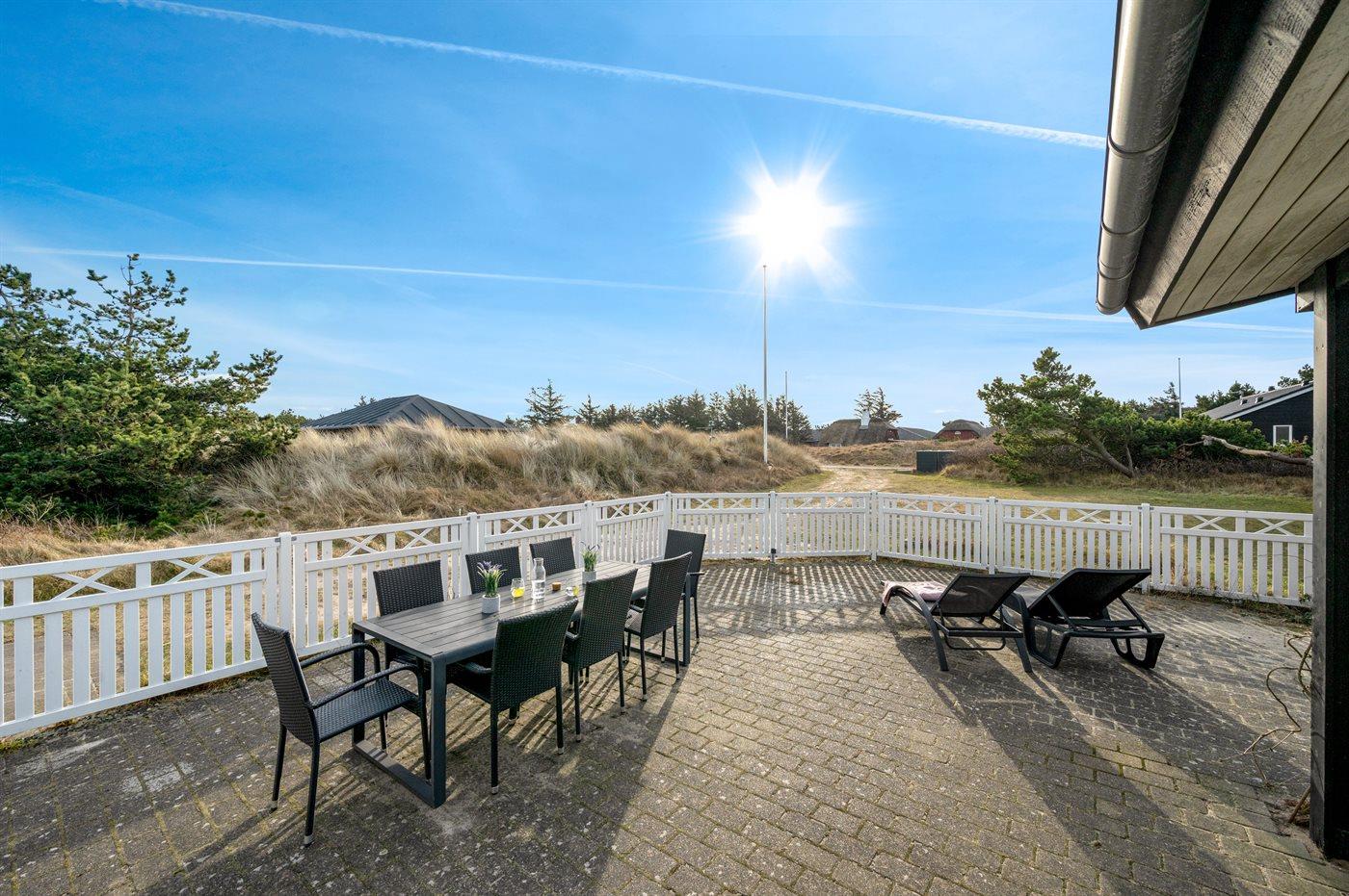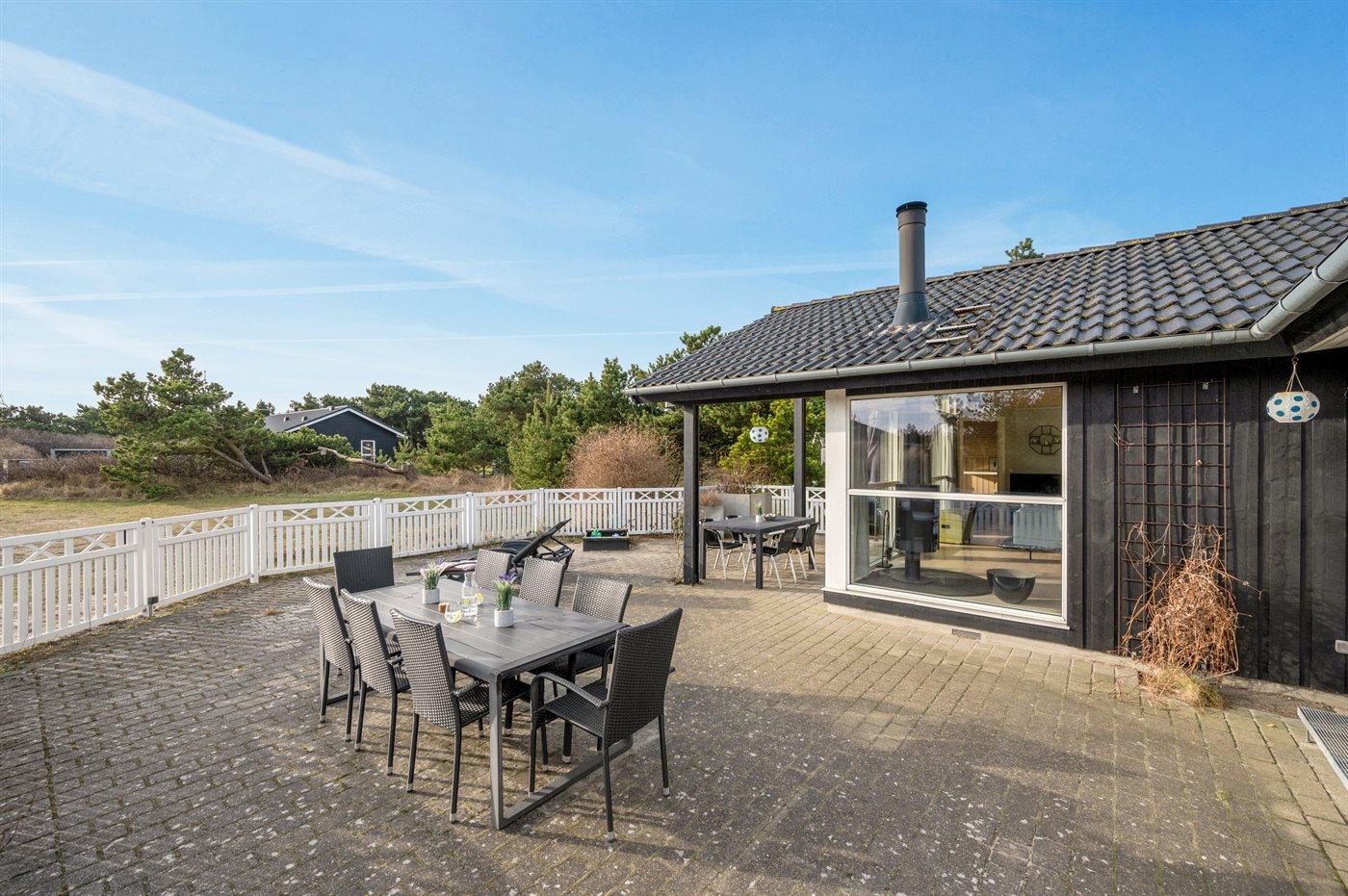 Ferieboligen er beliggende på en 1312 m² stor naturgrund. Der er 450 m til havet. Der er 900 m til fjorden. Nærmeste forretning er beliggende i en afstand af 600 m. Der er en golfbane i en afstand af 1200 m. Til ferieboligen hører 50 m² terrasseareal. Desuden er der 14 m² overdækket terrasse. Parkering ved ferieboligen.