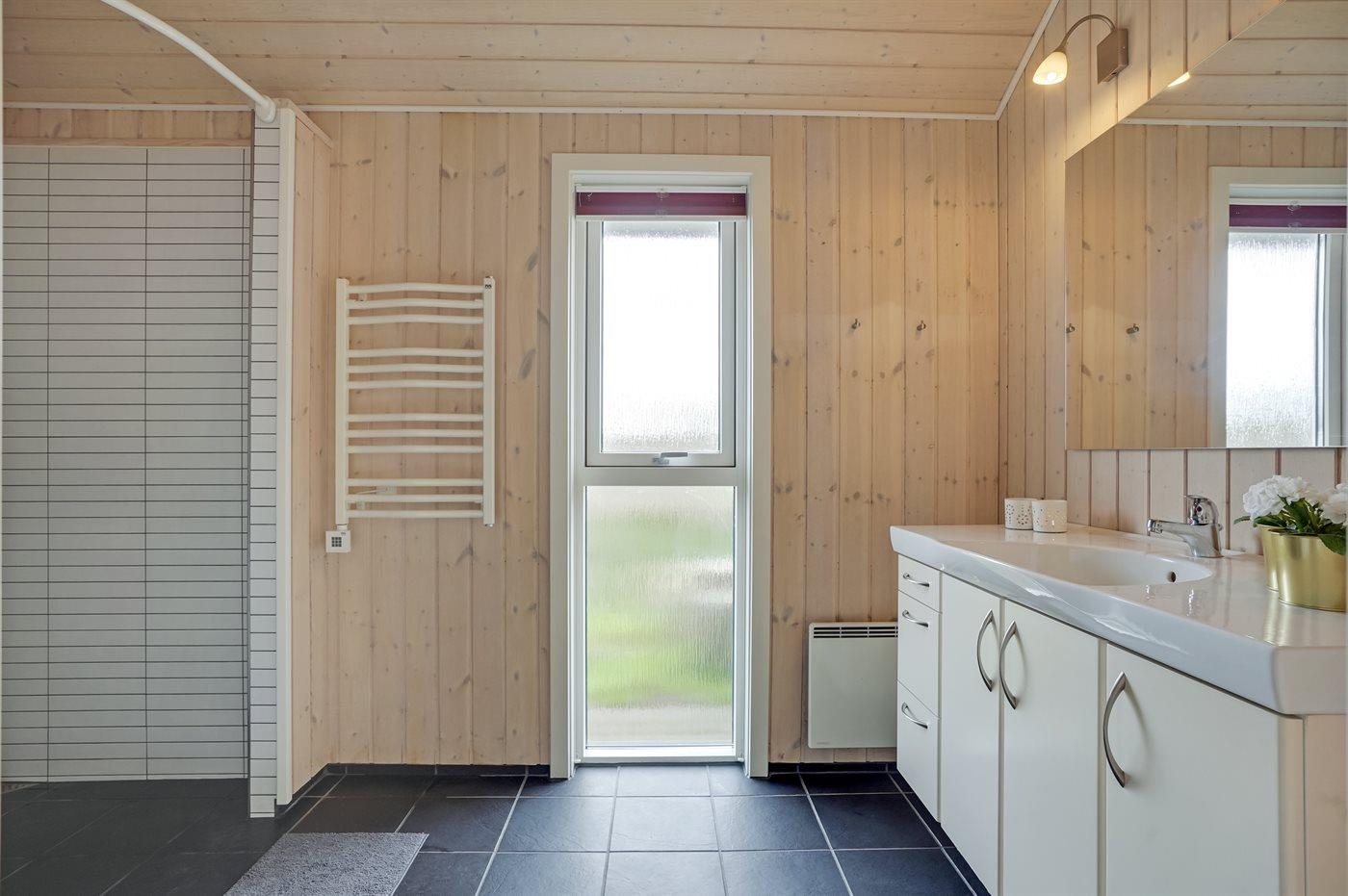 Der er 2 badeværelser med bruseniche og 2 toiletter. Der er gulvvarme på 1 badeværelse.