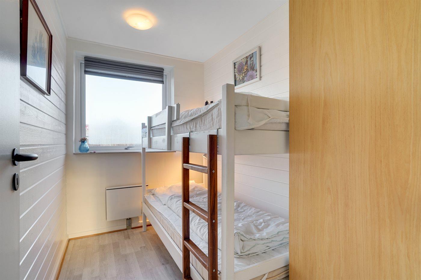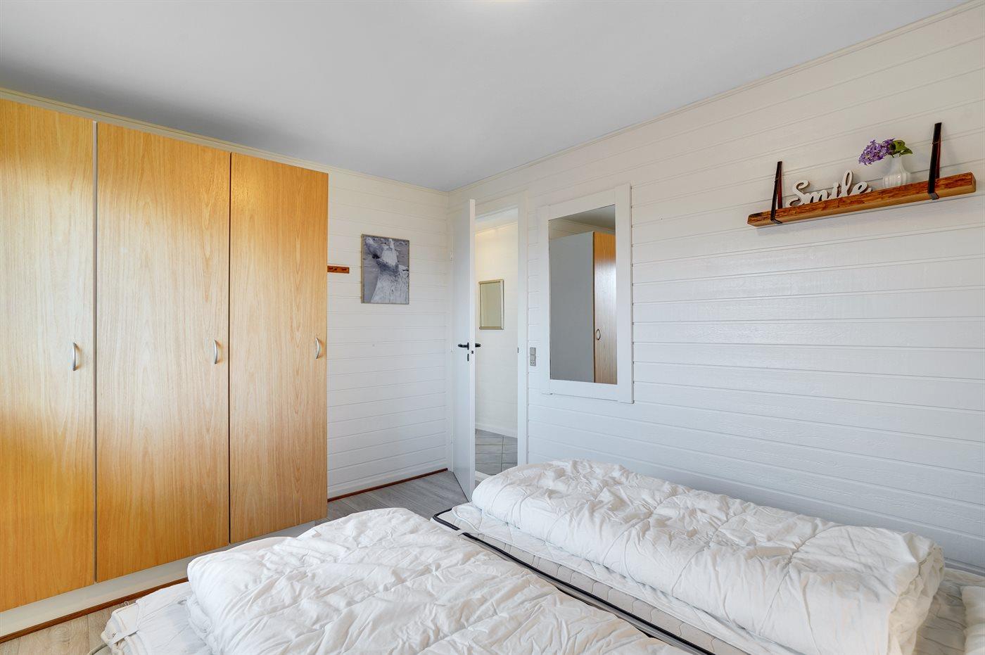 Der er i alt 3 soveværelser. Sovepladserne fordeler sig på: 2 sovepladser i dobbeltseng. 4 sovepladser i køjesenge. Derudover er der 1 stk. barneseng.