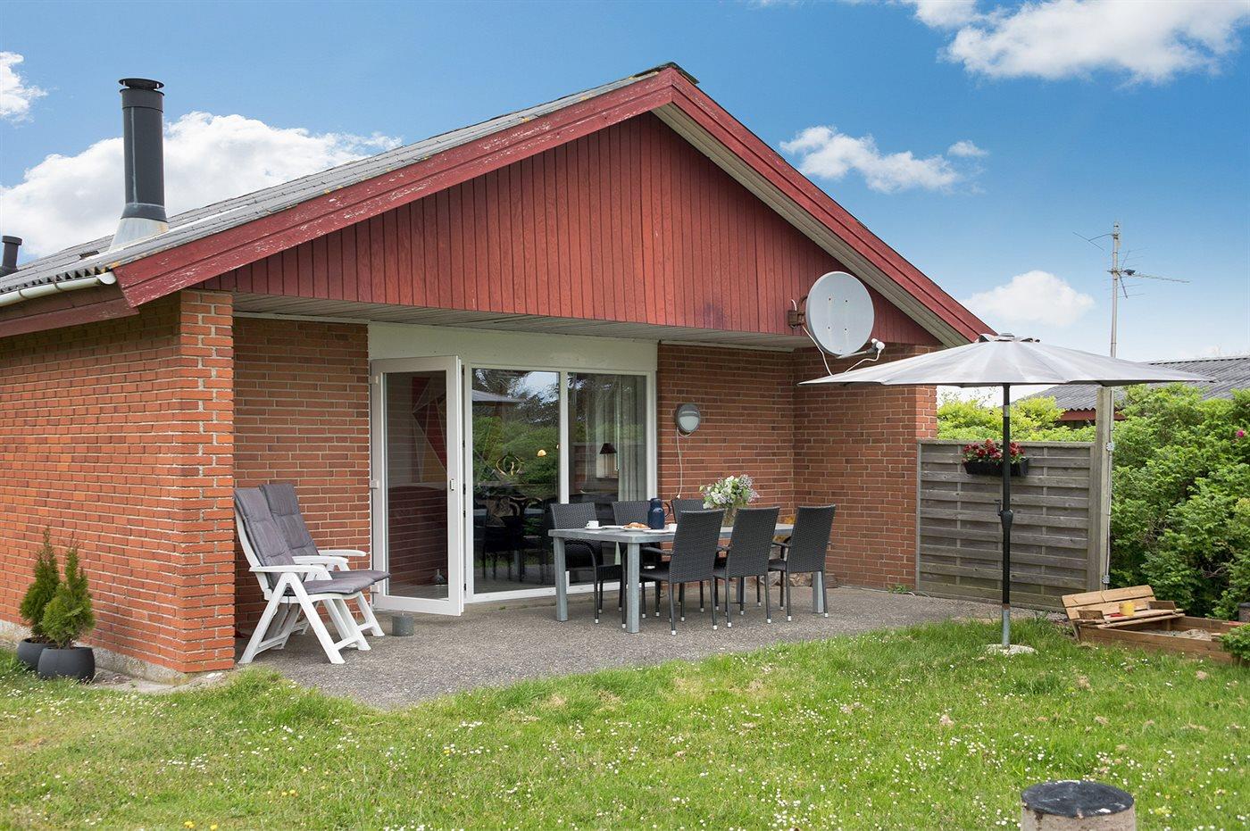 Ferieboligen er beliggende på en 1550 m² stor naturgrund. Der er 350 m til havet. Nærmeste forretning er beliggende i en afstand af 50 m. Til ferieboligen hører 8 m² terrasseareal. Desuden er der 8 m² overdækket terrasse. Parkering ved ferieboligen.
