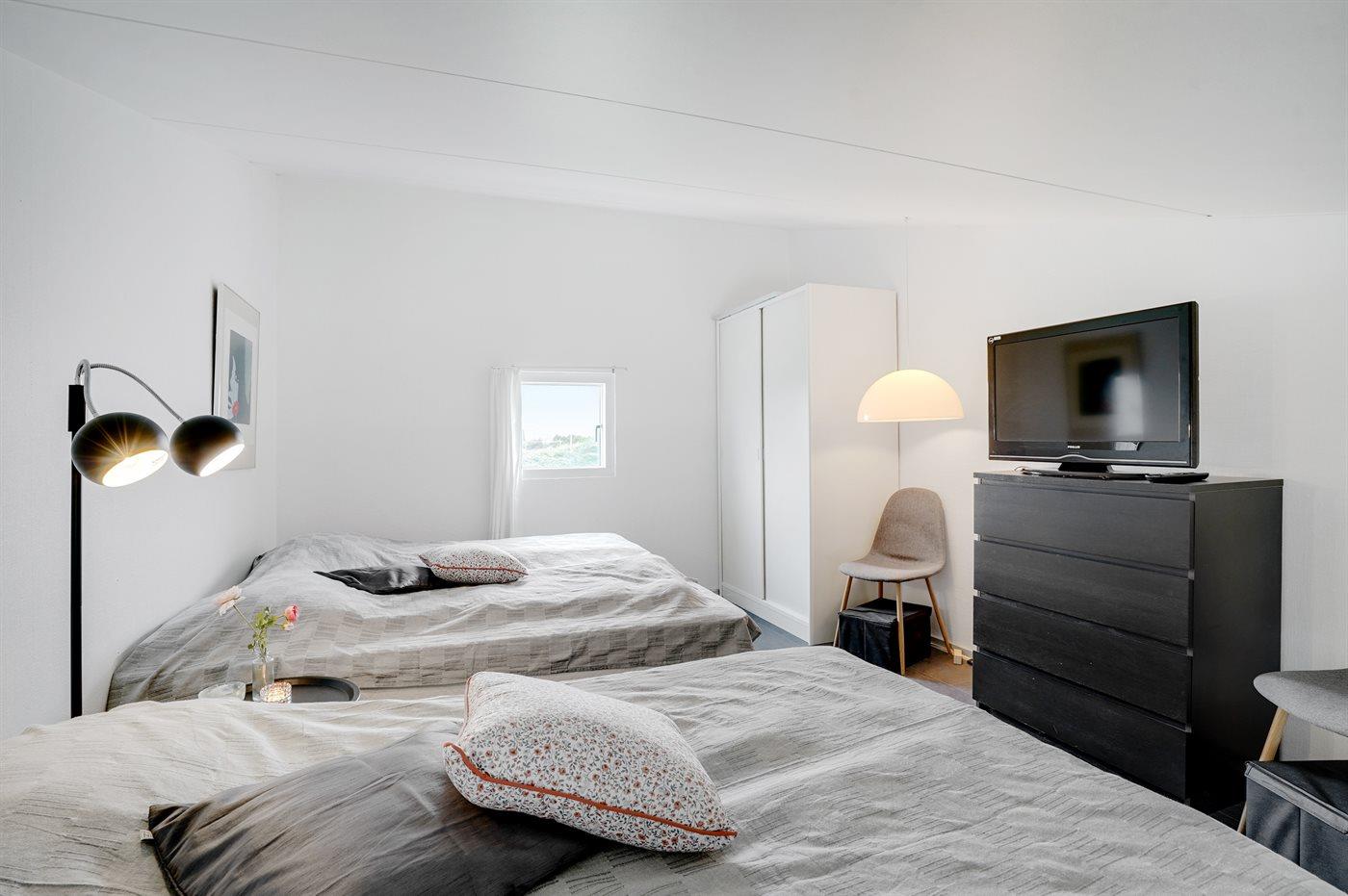 Der er i alt 1 soveværelse. Sovepladserne fordeler sig på: 4 sovepladser i dobbeltsenge. 2 sovepladser i enkeltsenge. 4 af disse sovepladser befinder sig på husets hems.