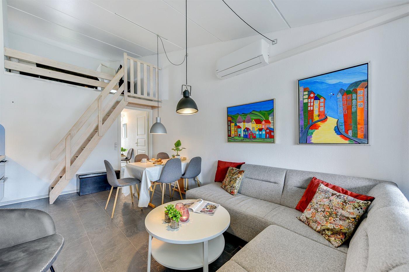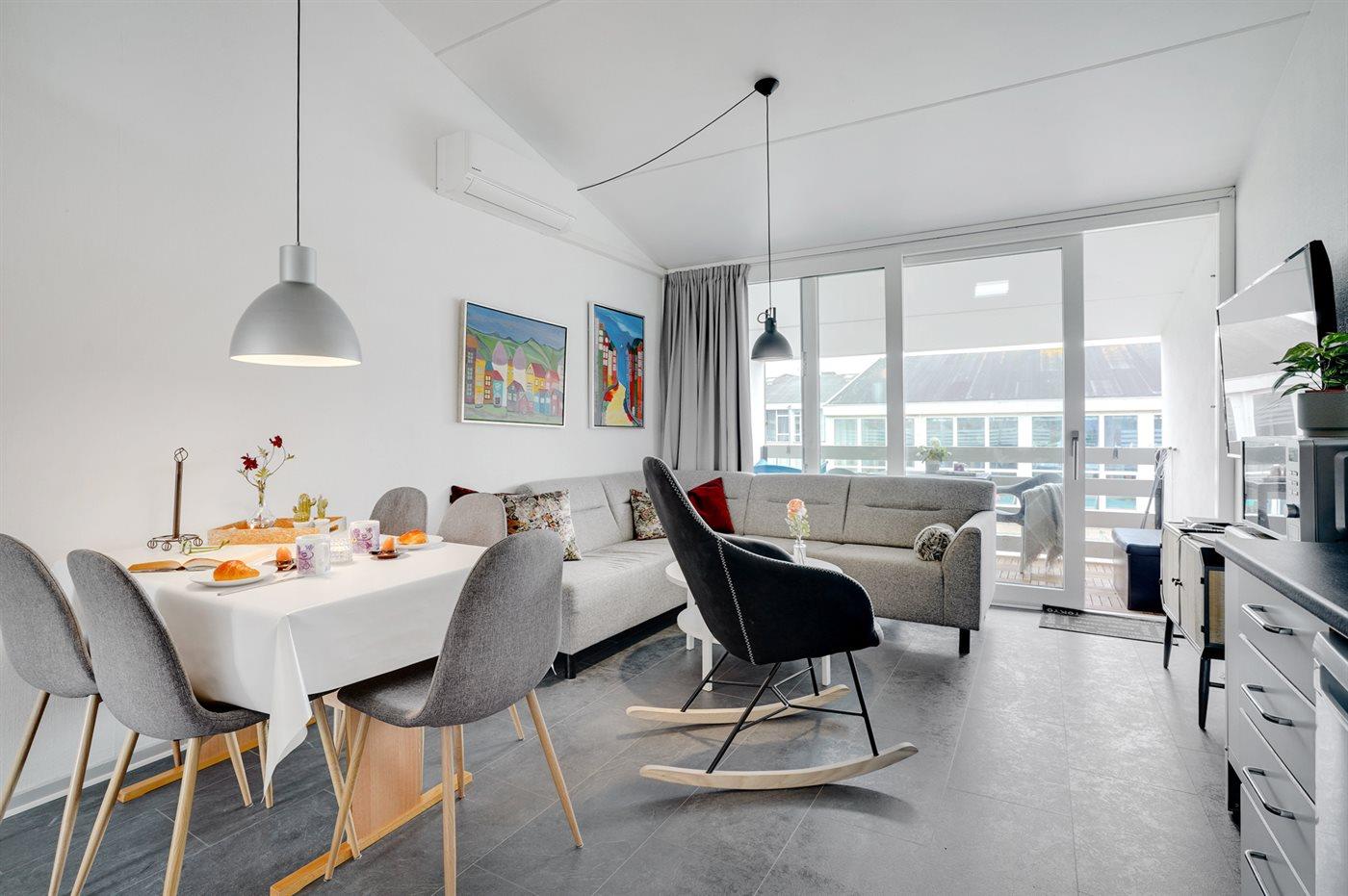 Ferielejligheden egner sig til 6 personer. Ferieboligen er på 58 m², er i 2 plan, og er bygget i 1978. I 2018 gennemgik ferieboligen en delvis renovering. Det er tilladt at medbringe 1 husdyr. Ferieboligen er udstyret med energibesparende varmepumpe. Frysekapacitet på 10 liter.