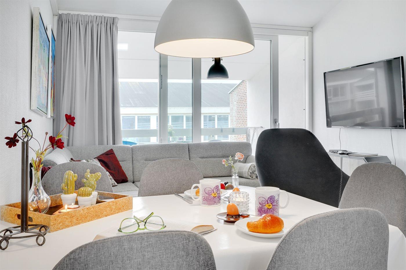 Lejlighed i Søndervig tæt på Vesterhavet og centrum med altan og moderne faciliteter.
