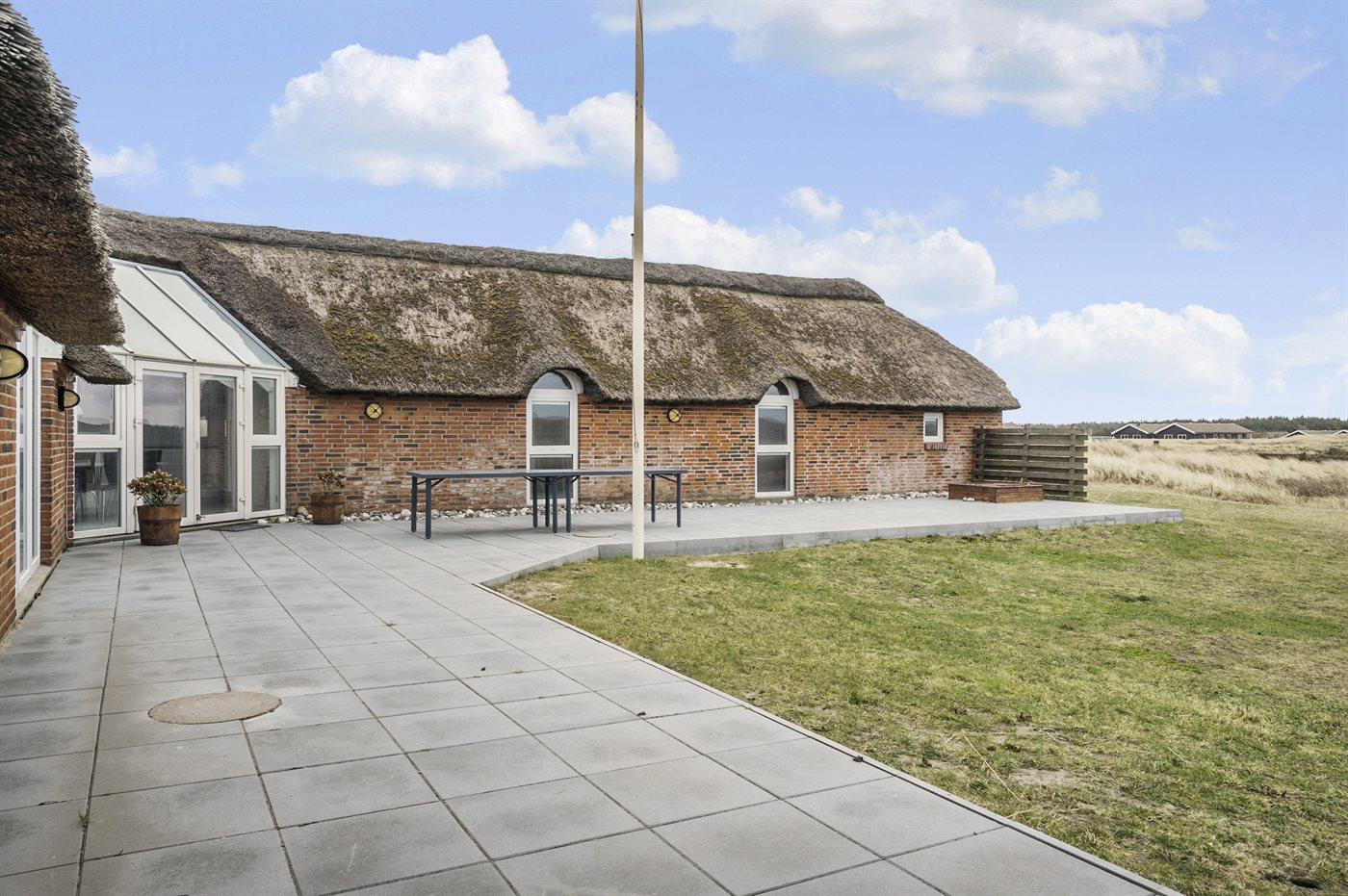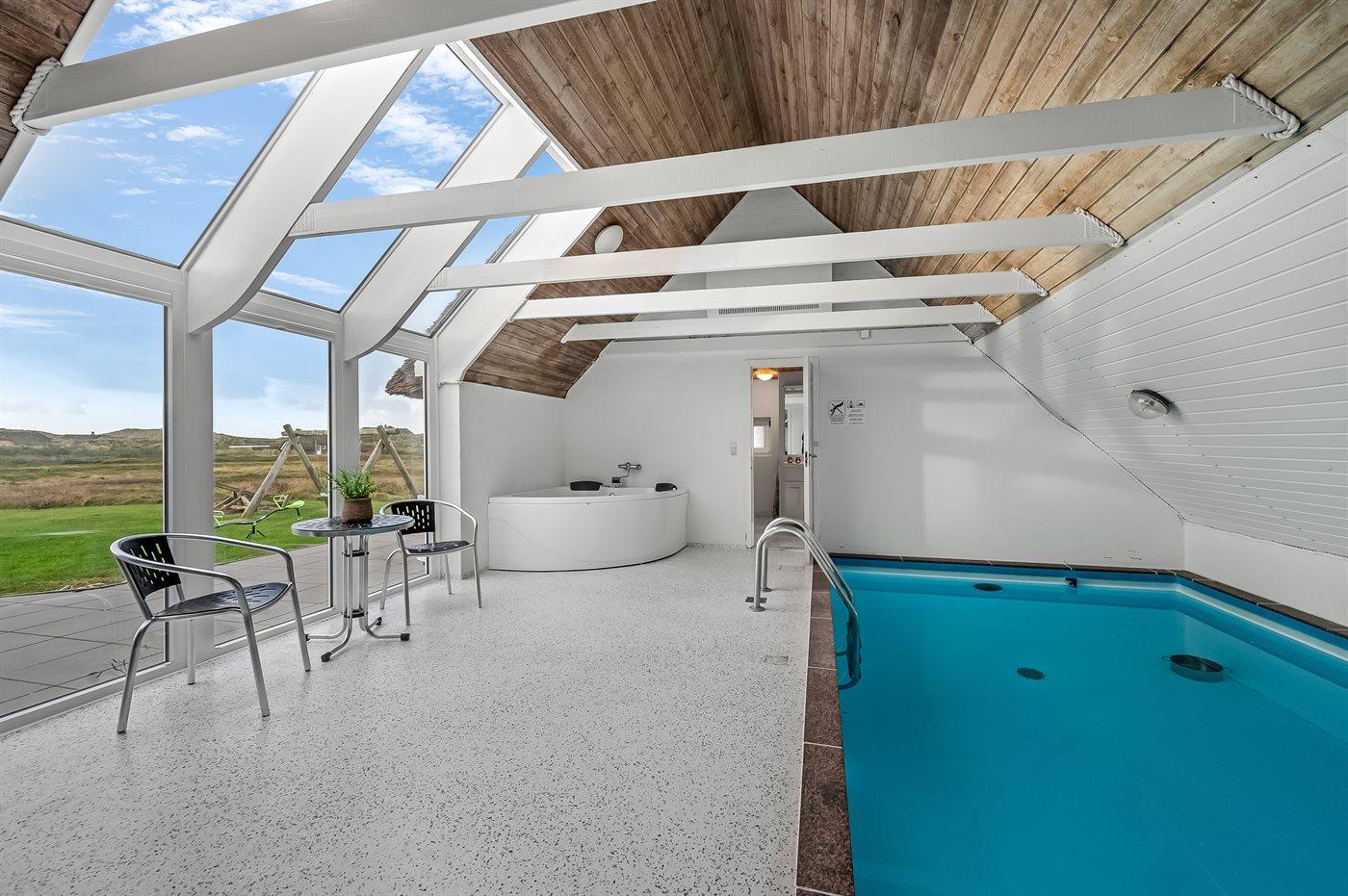 Dejligt sommerhus med swimmingpool og aktivitetsrum beliggende på en stor naturgrund tæt på Vesterhavet. Bemærk at 4 af husets 12 sovepladser befinder sig på hemsen.