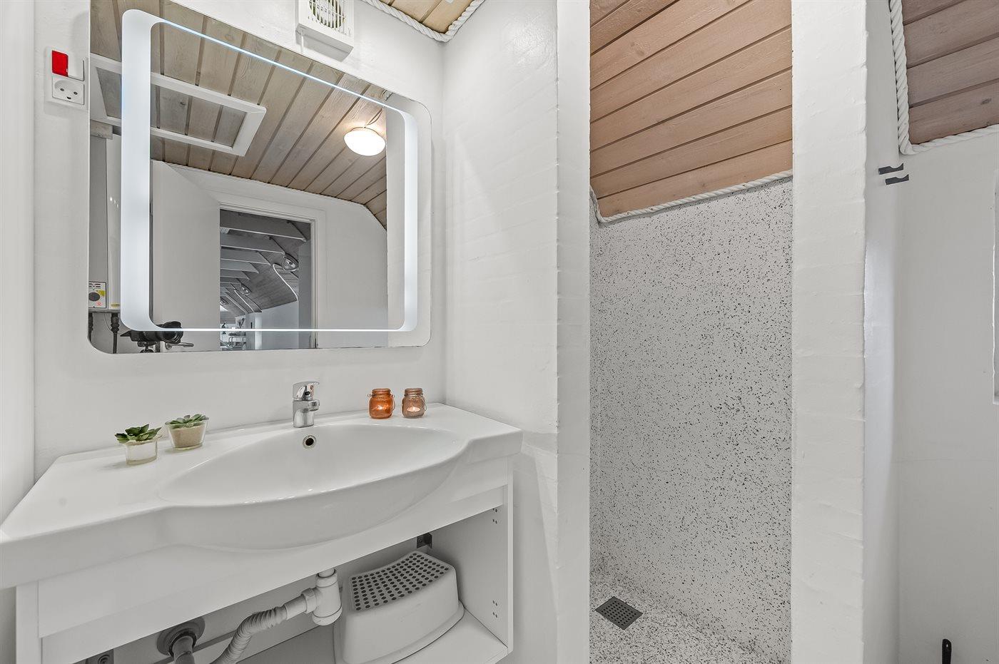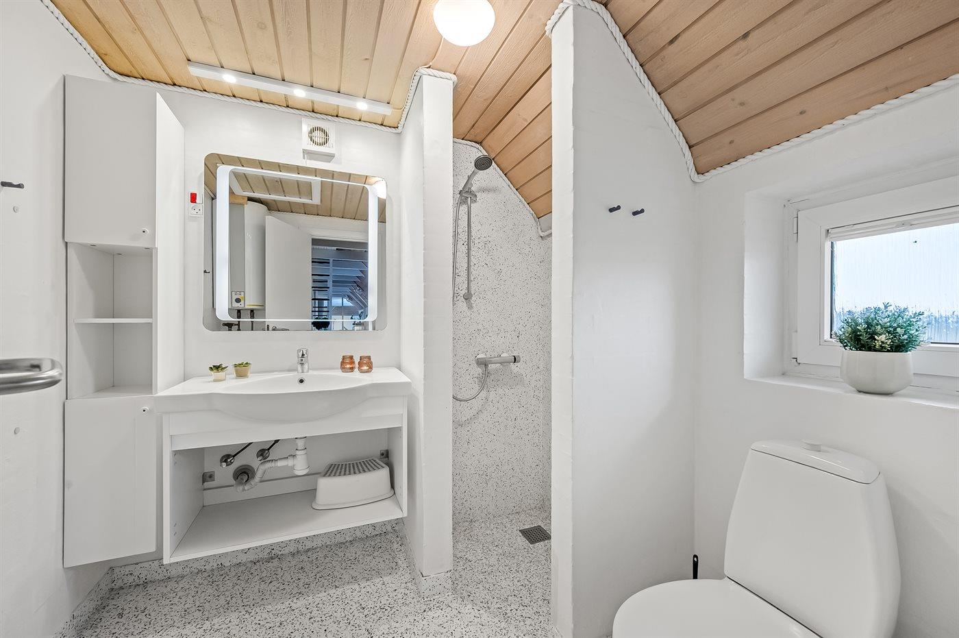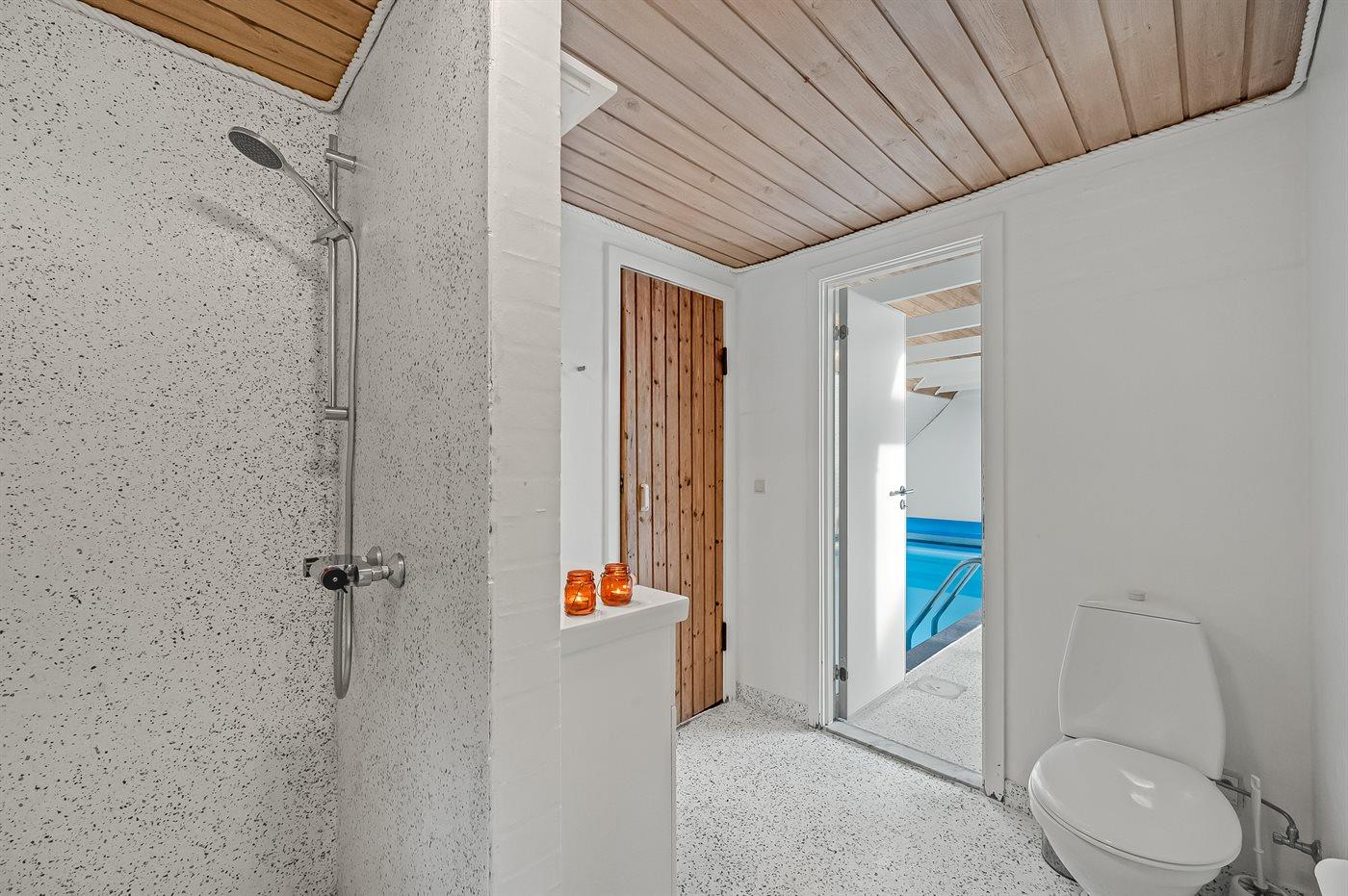 Der er 2 badeværelser med bruseniche og 2 toiletter. Der er gulvvarme på 2 badeværelser. I saunaen er der mulighed for afslapning.