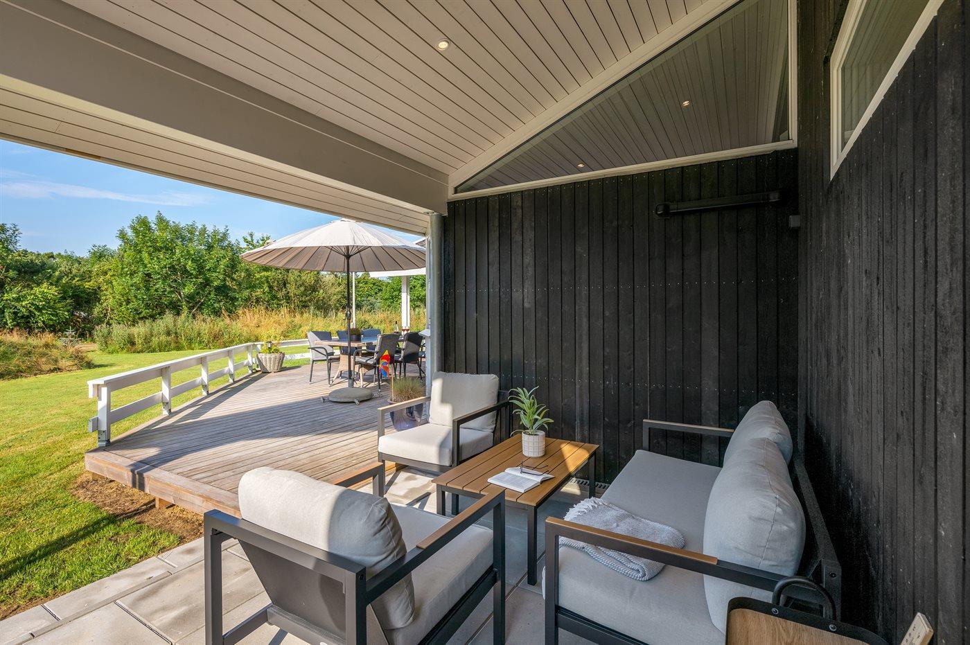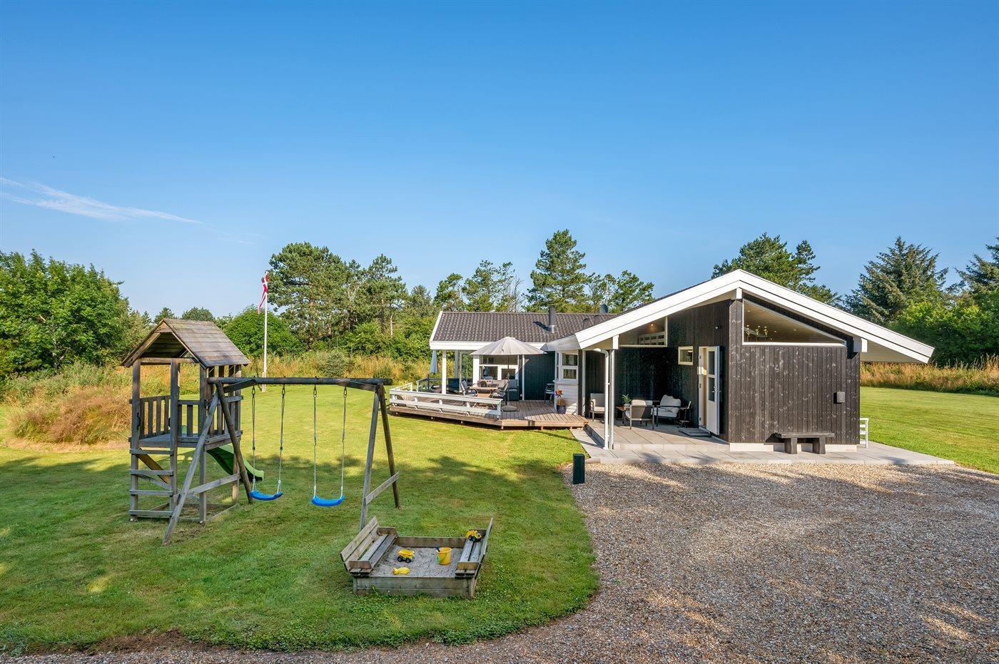 Charmerende sommerhus i rolige omgivelser med spa, sauna og store udendørsarealer nær Vesterhavet.
