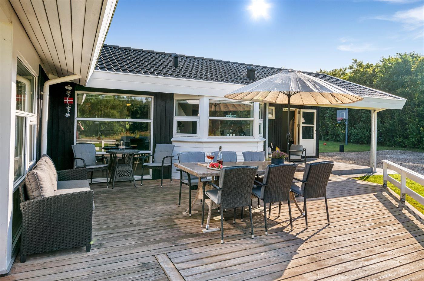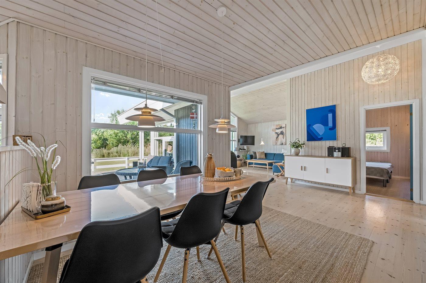 Sommerhuset egner sig til 6 personer samt 1 barn op til 3 år. Ferieboligen er på 110 m² og er bygget i 2003. I 2025 gennemgik ferieboligen en renovering. Det er tilladt at medbringe 1 husdyr. Ferieboligen er udstyret med energibesparende varmepumpe. Der er gulvvarme i entréen. Ferieboligen har vaskemaskine. Tørretumbler. Frysekapacitet på 140 liter. Der er desuden brændeovn. Til de små er der 1 stk. barnestol.