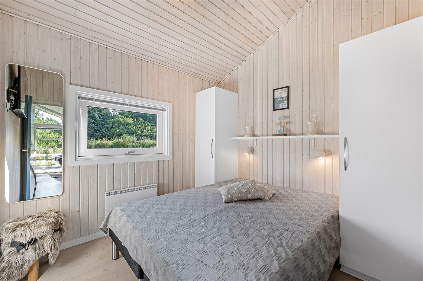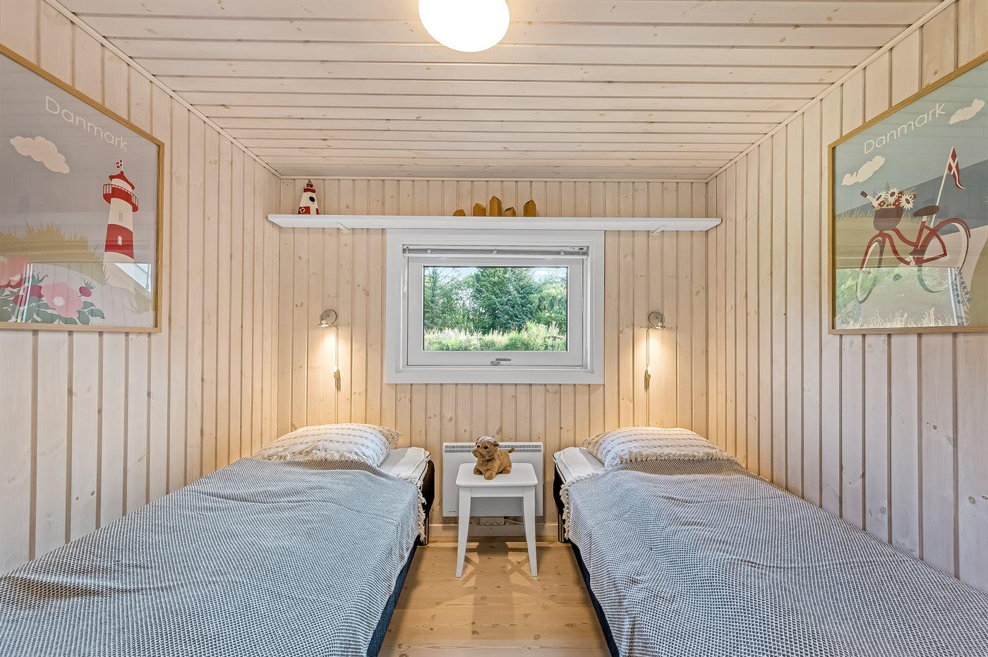 Der er i alt 3 soveværelser. Sovepladserne fordeler sig på: 4 sovepladser i dobbeltsenge. 2 sovepladser i enkeltsenge. Derudover er der 1 stk. barneseng.