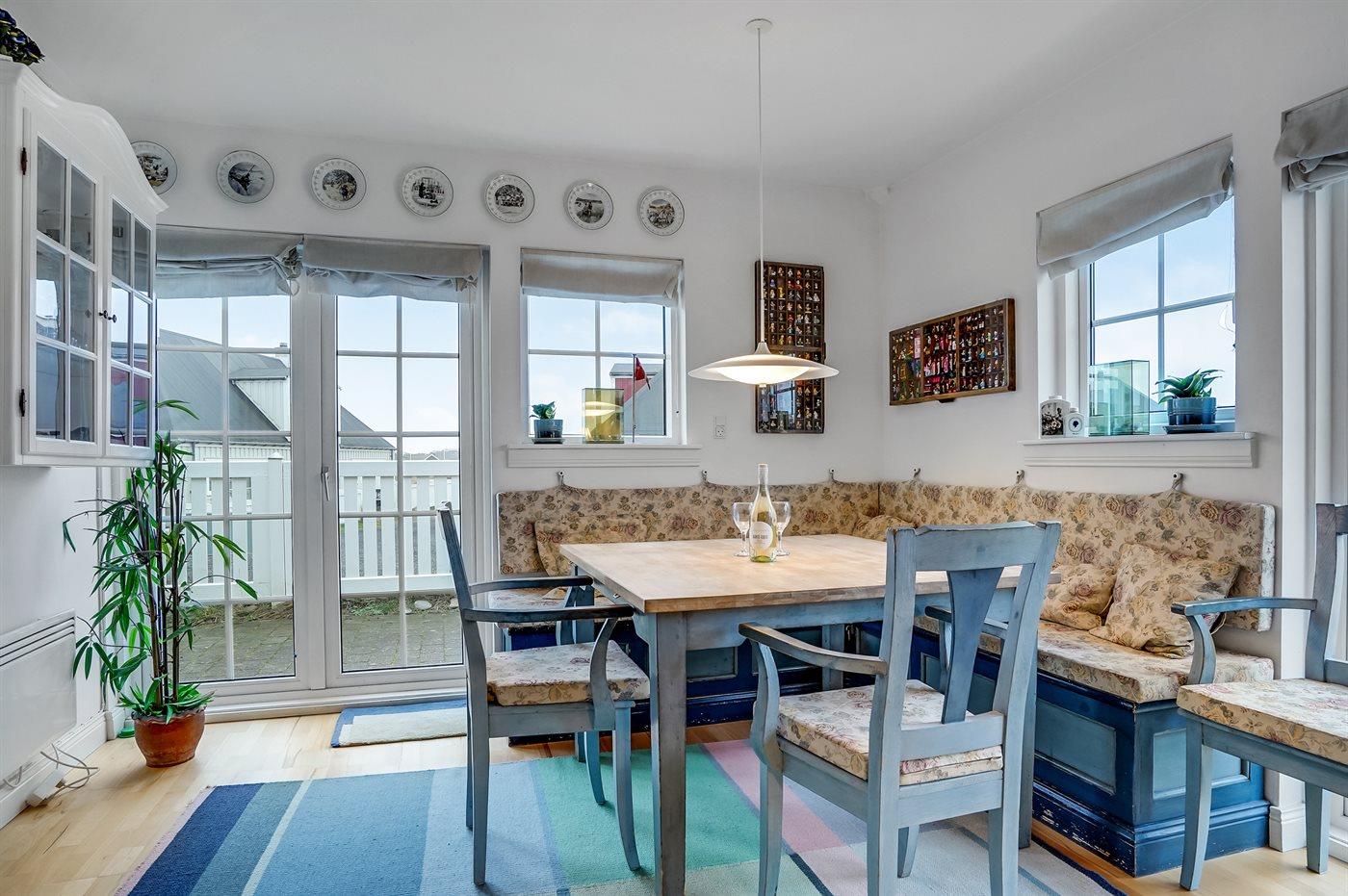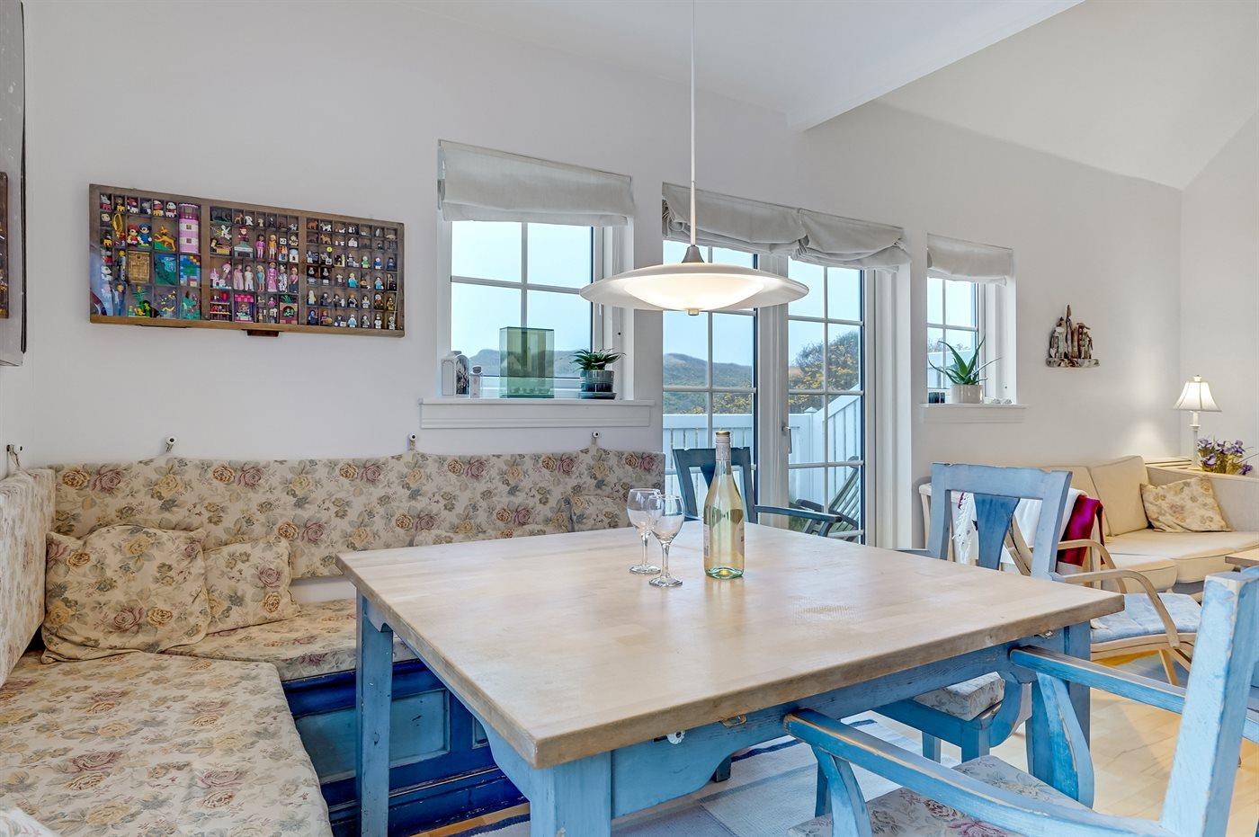 Køkkenet er veludstyret med diverse service, kaffemaskine, elkedel samt et stort køle-fryseskab, et induktionskomfur med ovn, mikrobølgeovn og opvaskemaskine.