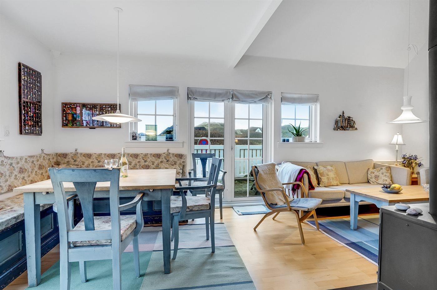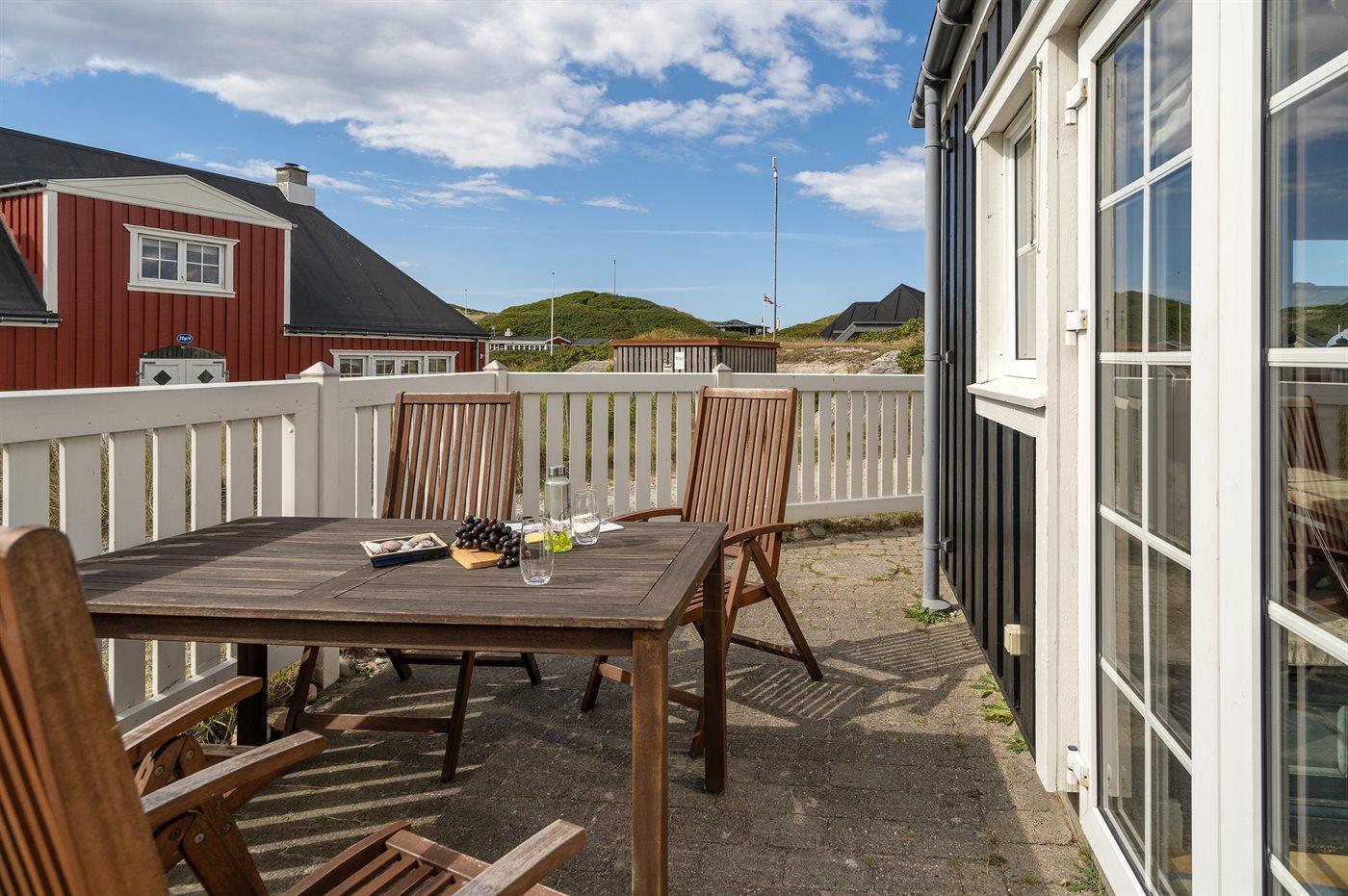 Velkommen til denne pragtfulde ferielejlighed bag første klitrække ved Vesterhavet i Søndervig. Ferieboligen ligger lidt tilbagetrukket fra hovedstien ned til stranden og har en 40 m² stor terrasse, der vender både mod syd og vest, så der er mulighed for sol på terrassen hele dagen, når solen skinner.
