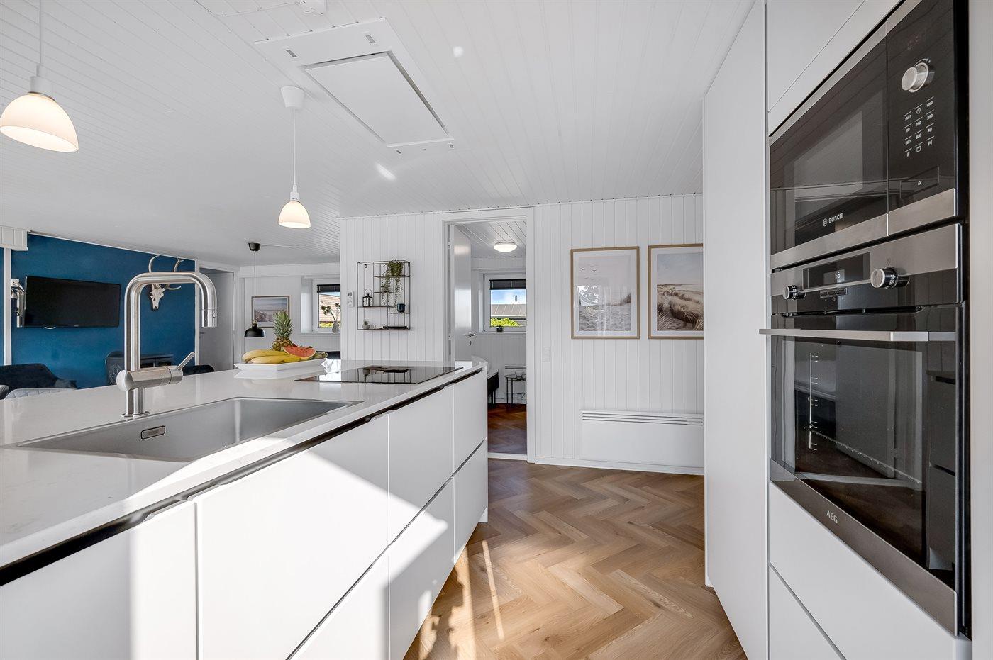 Køkkenet er udstyret med 1 køleskab. Der er 4 induktionskogeplader, varmluftovn, mikrobølgeovn samt opvaskemaskine.