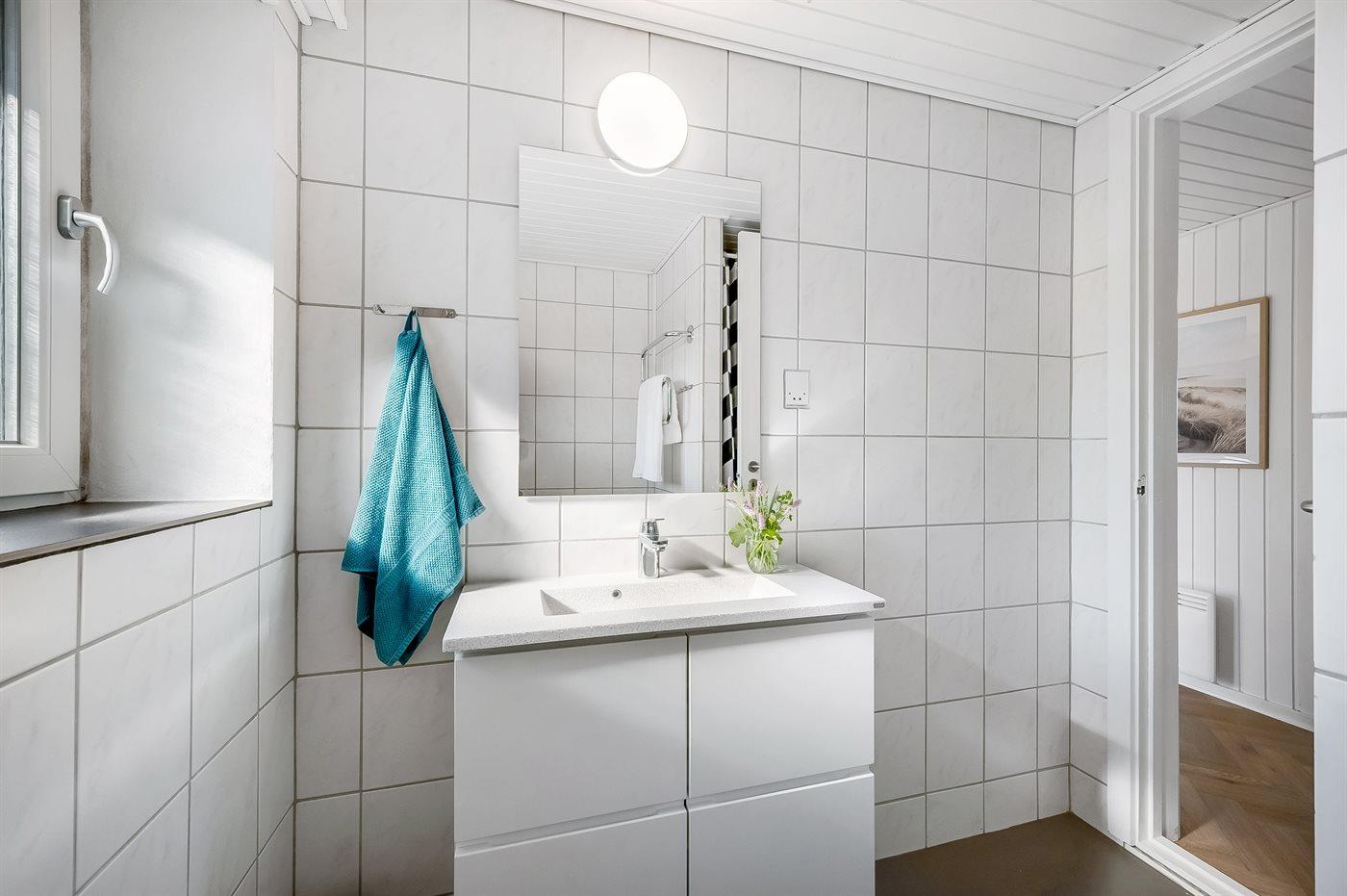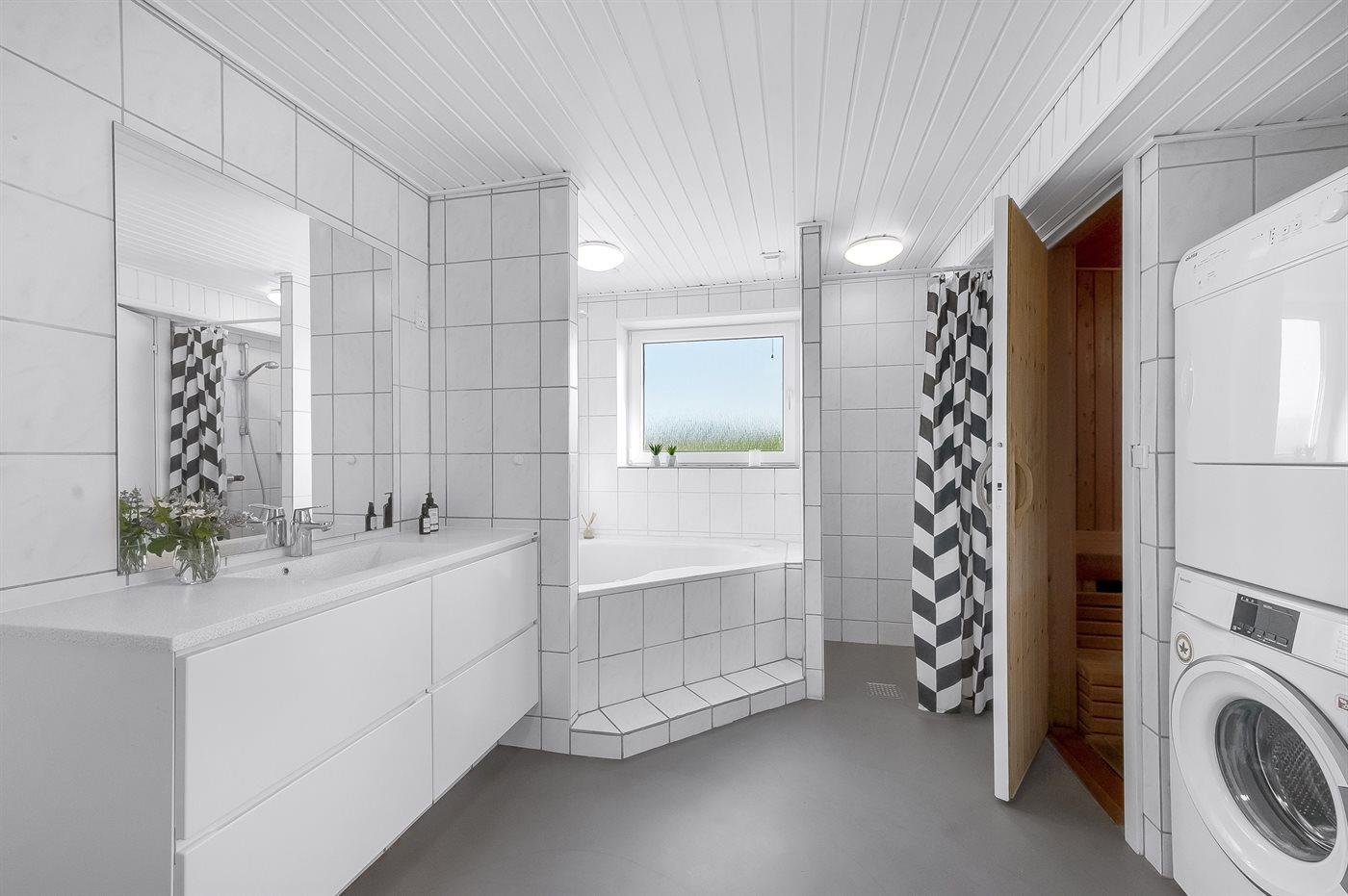 Der er 2 badeværelser med bruseniche og 2 toiletter I saunaen er der mulighed for afslapning.