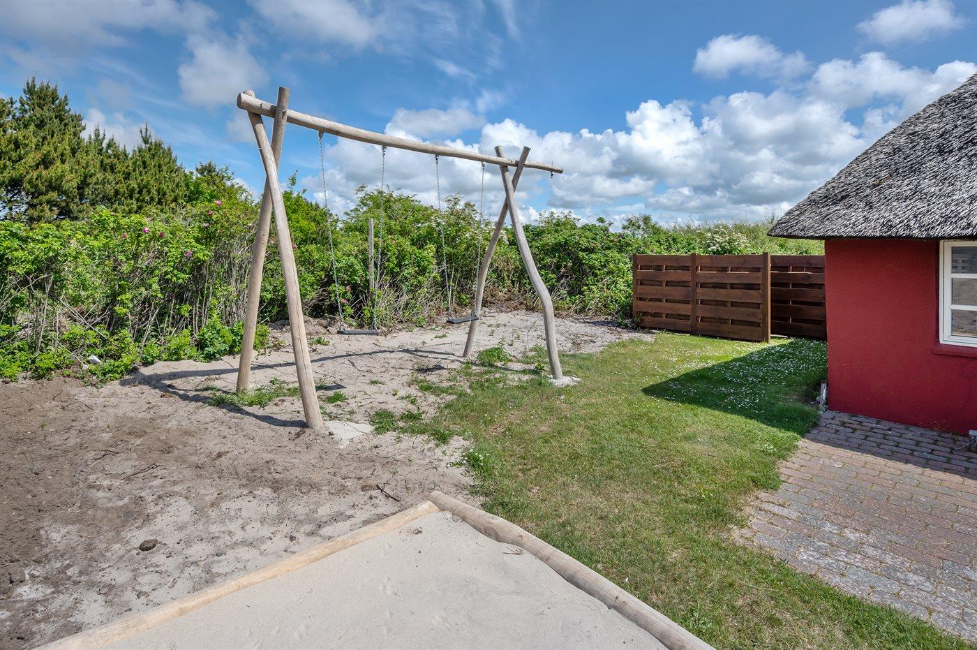 Der er desuden gynge, sandkasse og redskabsrum.