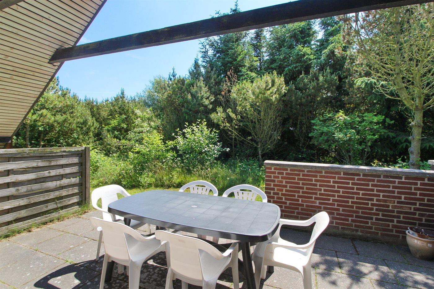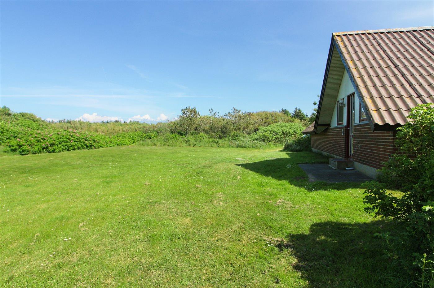Ferieboligen er beliggende på en 2051 m² stor naturgrund. Der er 1000 m til havet. Der er 2700 m til fjorden. Nærmeste forretning er beliggende i en afstand af 800 m. Der er en golfbane i en afstand af 50 m. Til ferieboligen hører åbent terrasseareal. Desuden er der overdækket terrasse. Der er installeret stik til opladning af elbil. Type 2 stik. Med 11 kW ladeeffekt. Parkering ved ferieboligen.