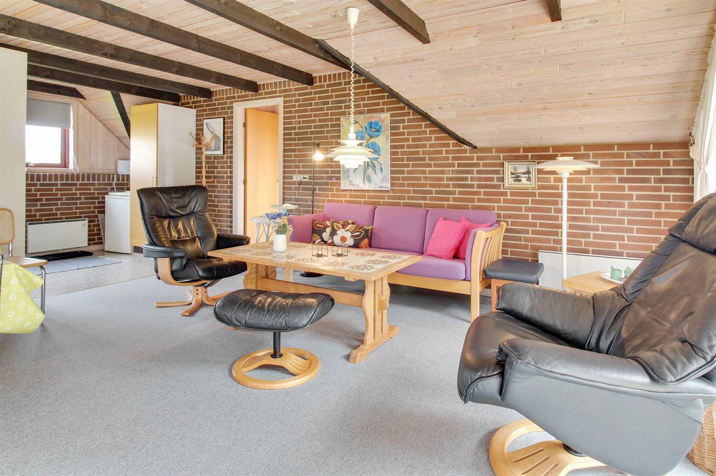 Planløsningen er gennemtænkt og her er hver kvadratmeter udnyttet optimalt. Det åbne køkken-alrum og opholdsområde udgør boligens naturlige samlingspunkt, hvor feriestemningen for alvor kan blomstre.