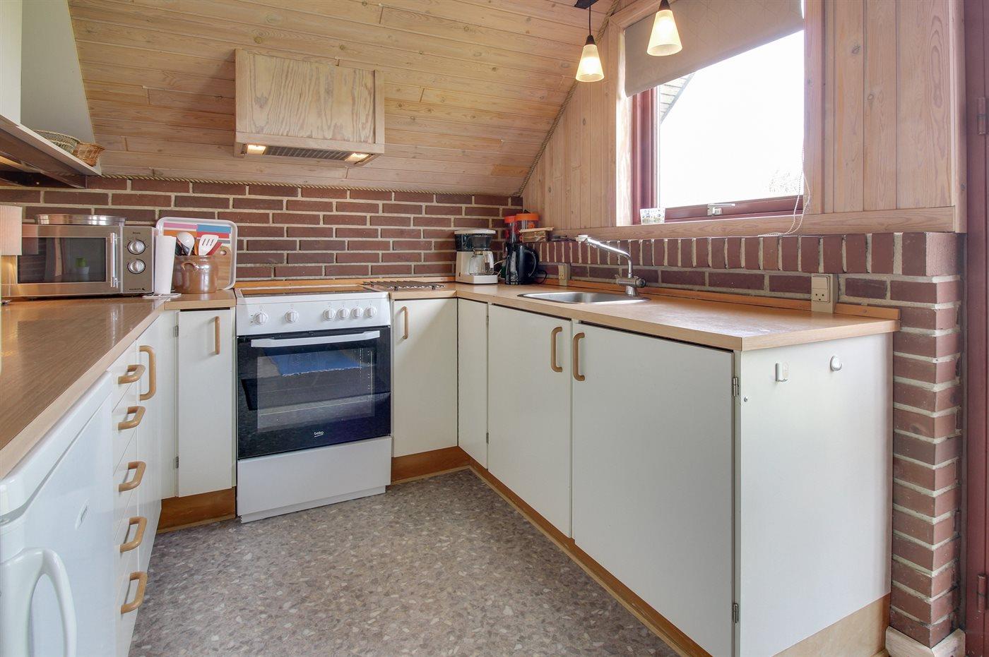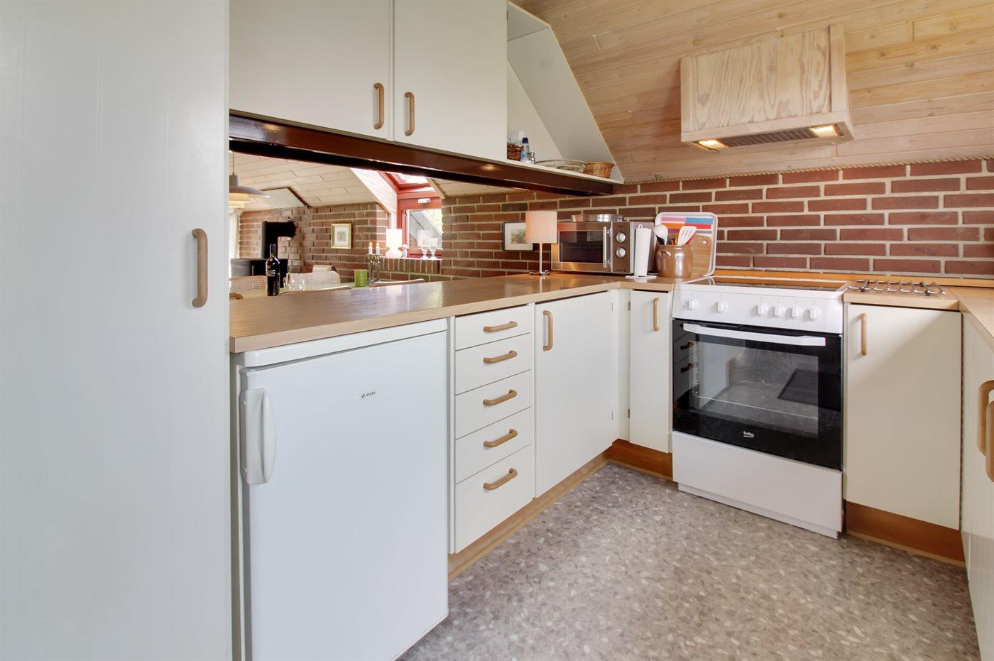 Køkkenet er udstyret med 1 køleskab. Der er 4 keramiske kogeplader, bageovn, mikrobølgeovn samt opvaskemaskine.
