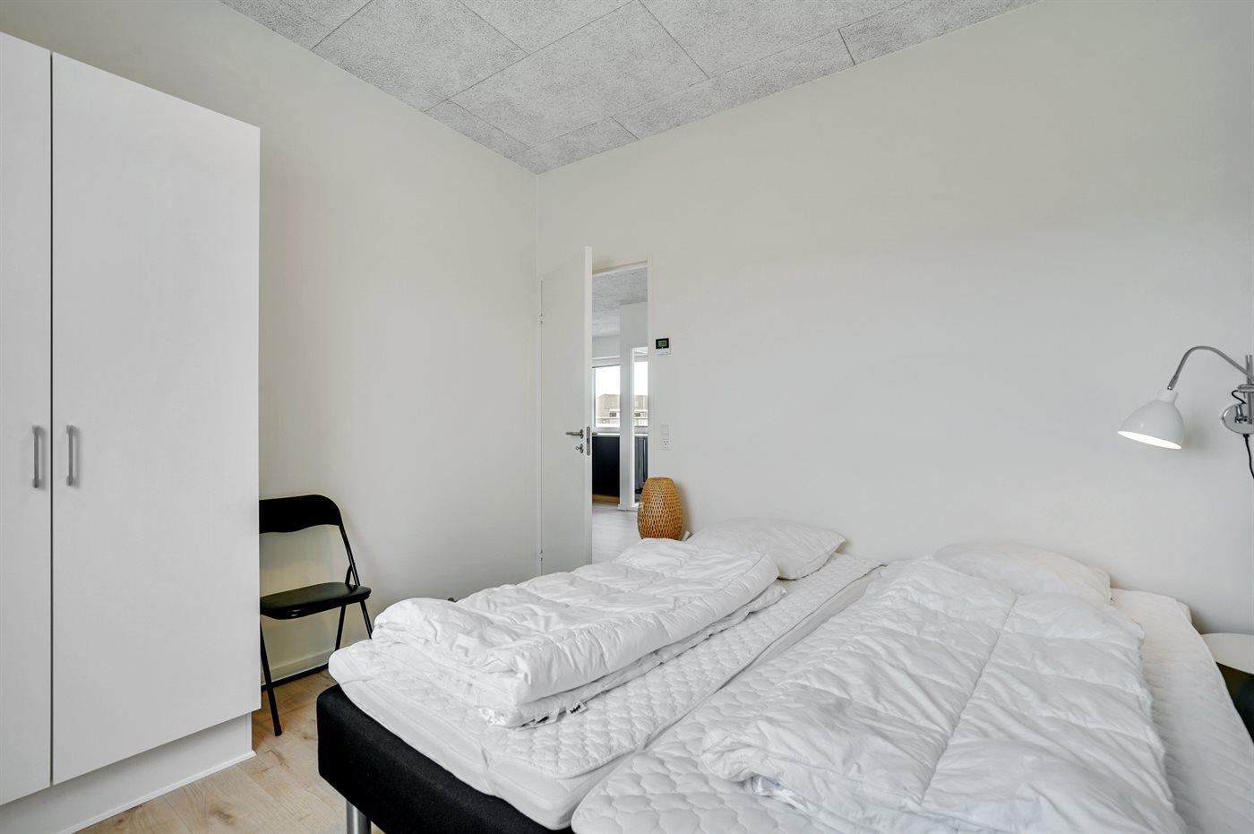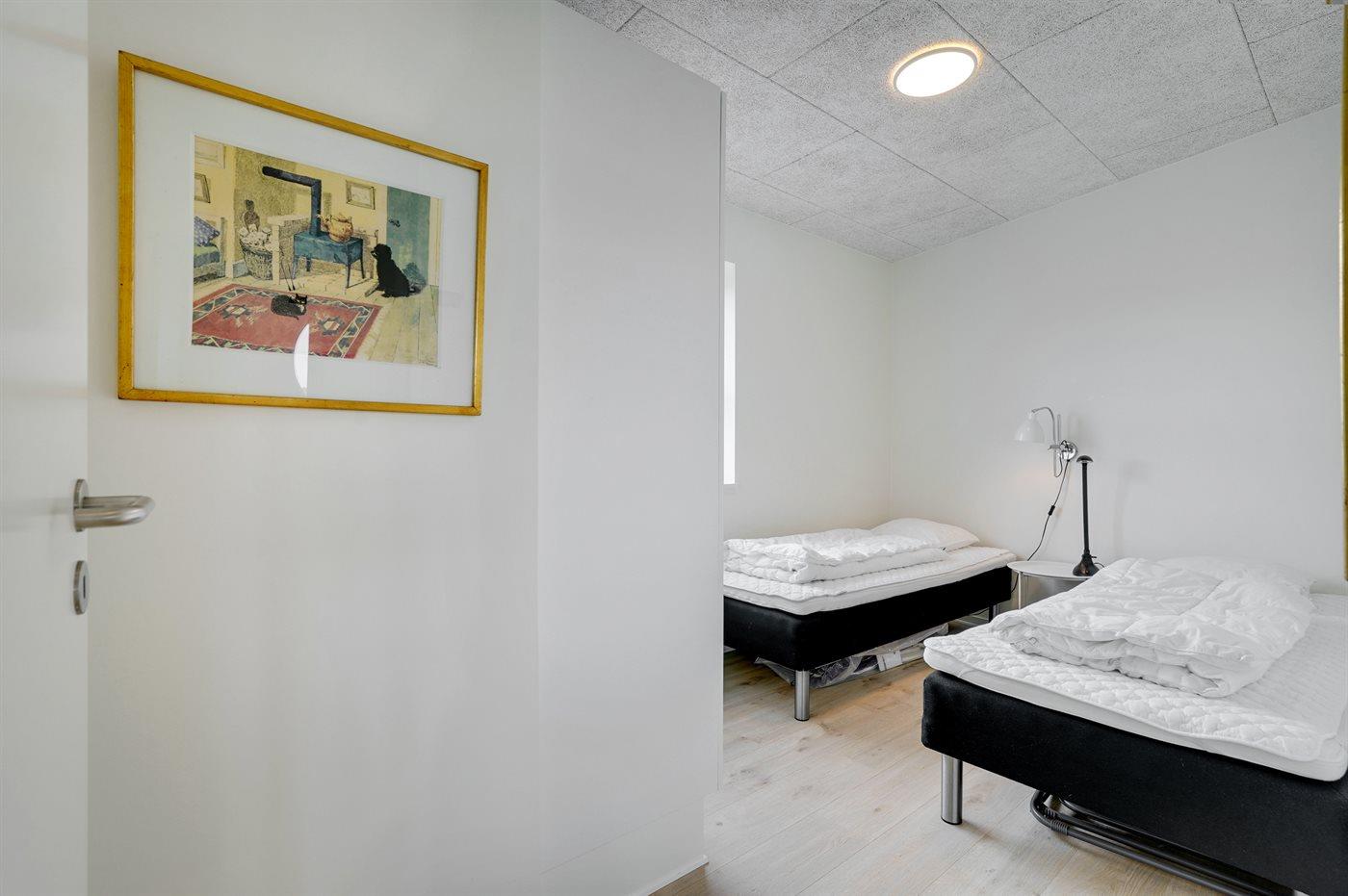 Der er i alt 2 soveværelser. Sovepladserne fordeler sig på: 2 sovepladser i dobbeltseng. 2 sovepladser i enkeltsenge.