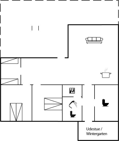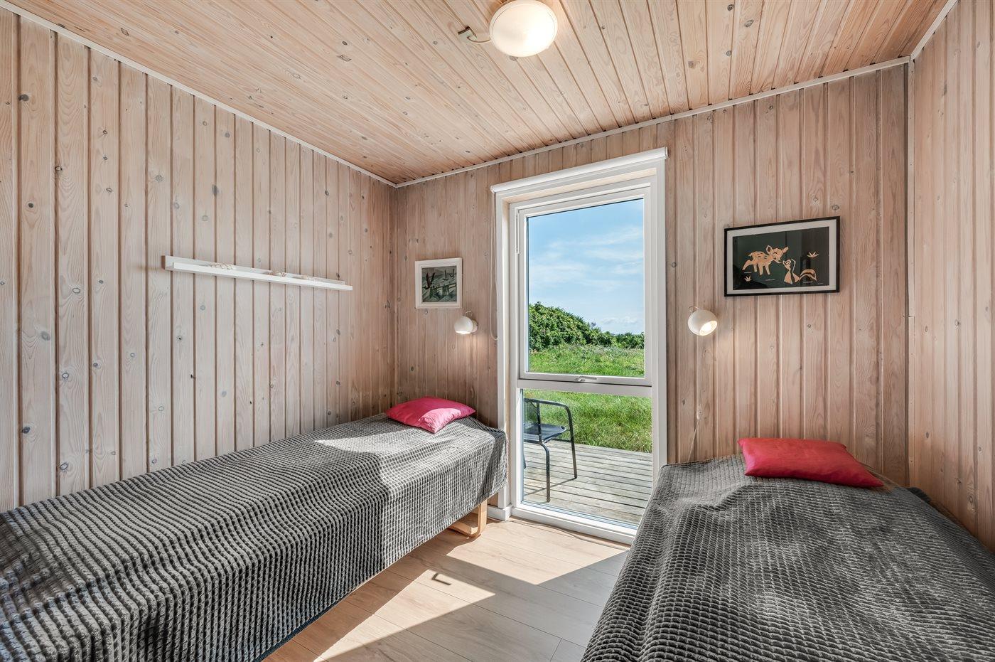 Der er i alt 3 soveværelser. Sovepladserne fordeler sig på: 4 sovepladser i dobbeltsenge. 2 sovepladser i enkeltsenge. Derudover er der 1 stk. barneseng.