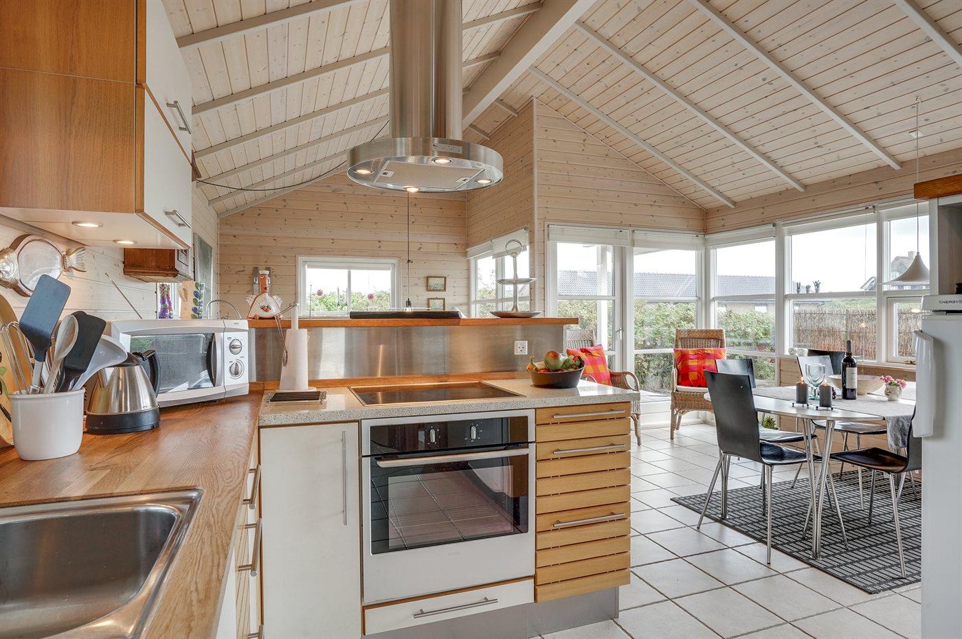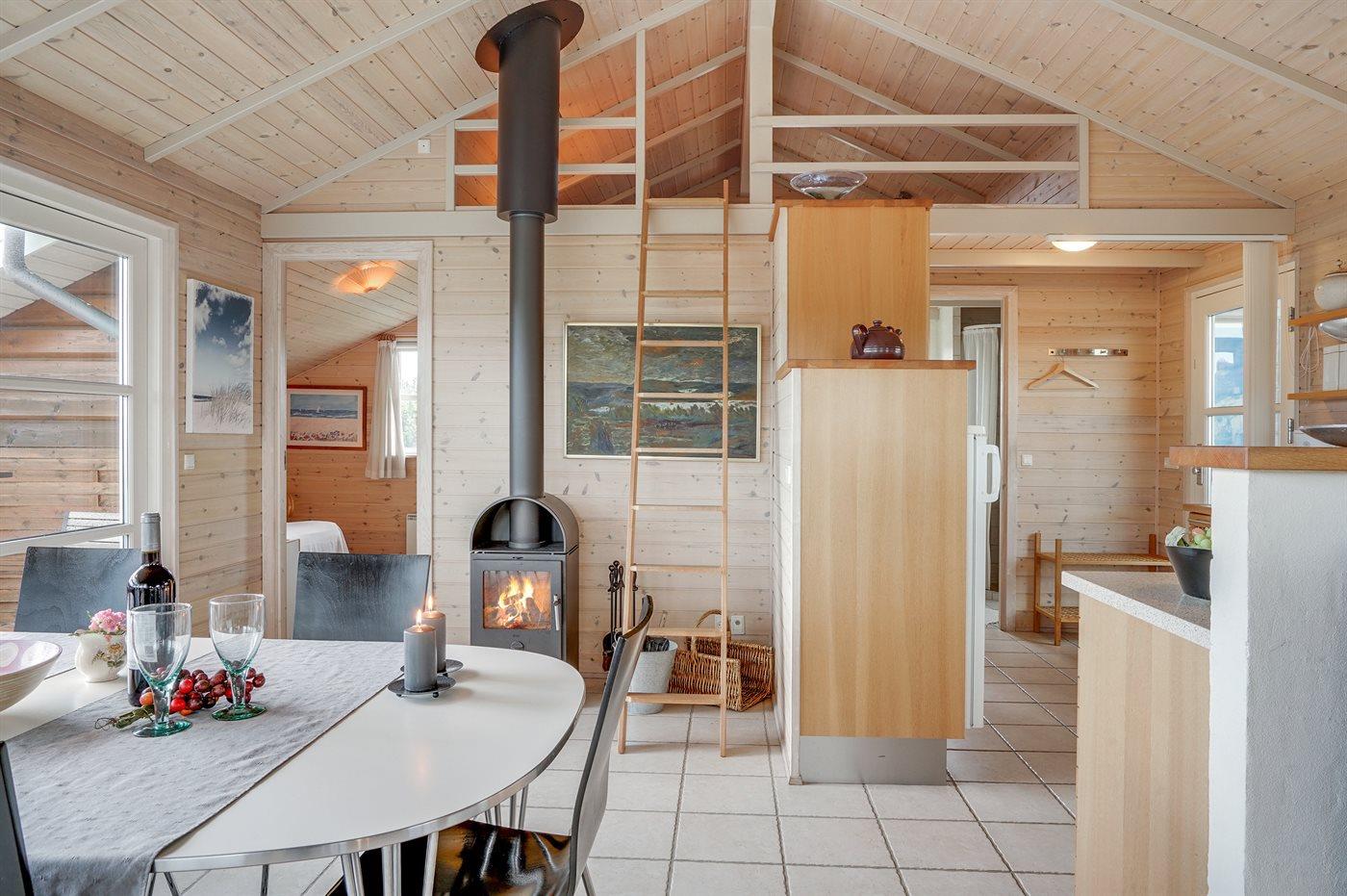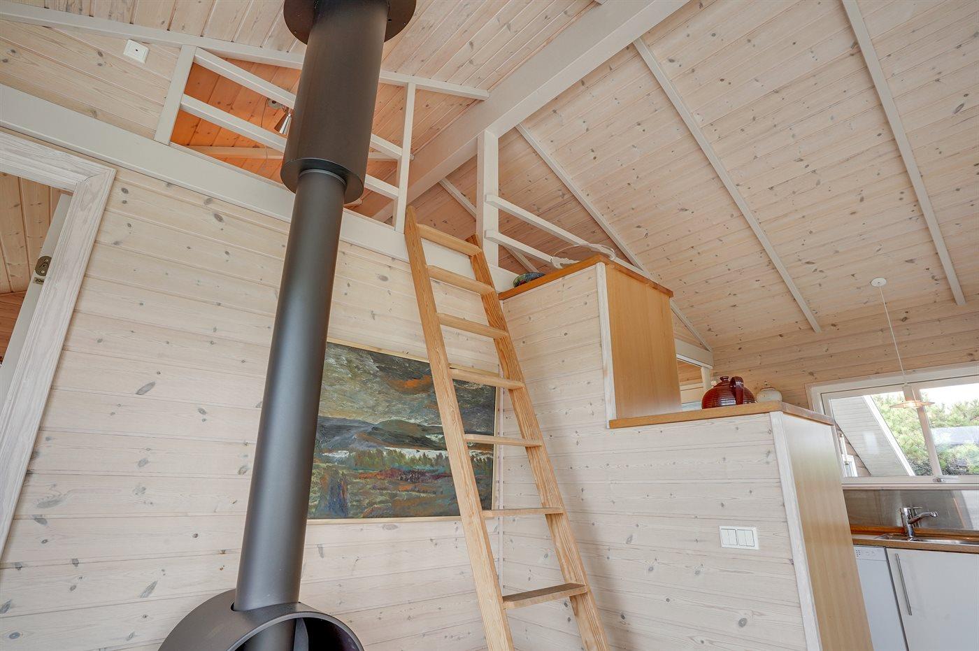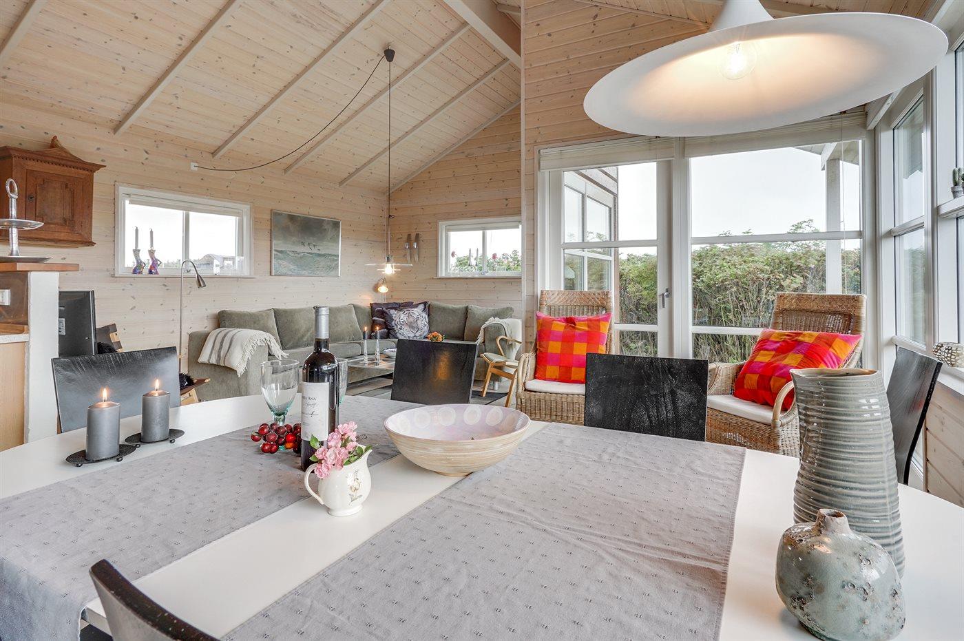 Hyggeligt træsommerhus fra 2005 nær Vesterhavet med sauna, brændeovn og stor terrasse i Søndervig.