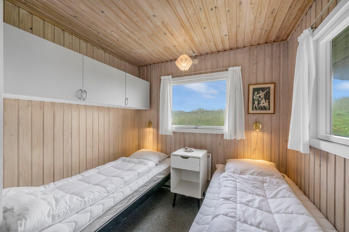 Der er i alt 4 soveværelser. Sovepladserne fordeler sig på: 6 sovepladser i dobbeltsenge. 2 sovepladser i enkeltsenge.