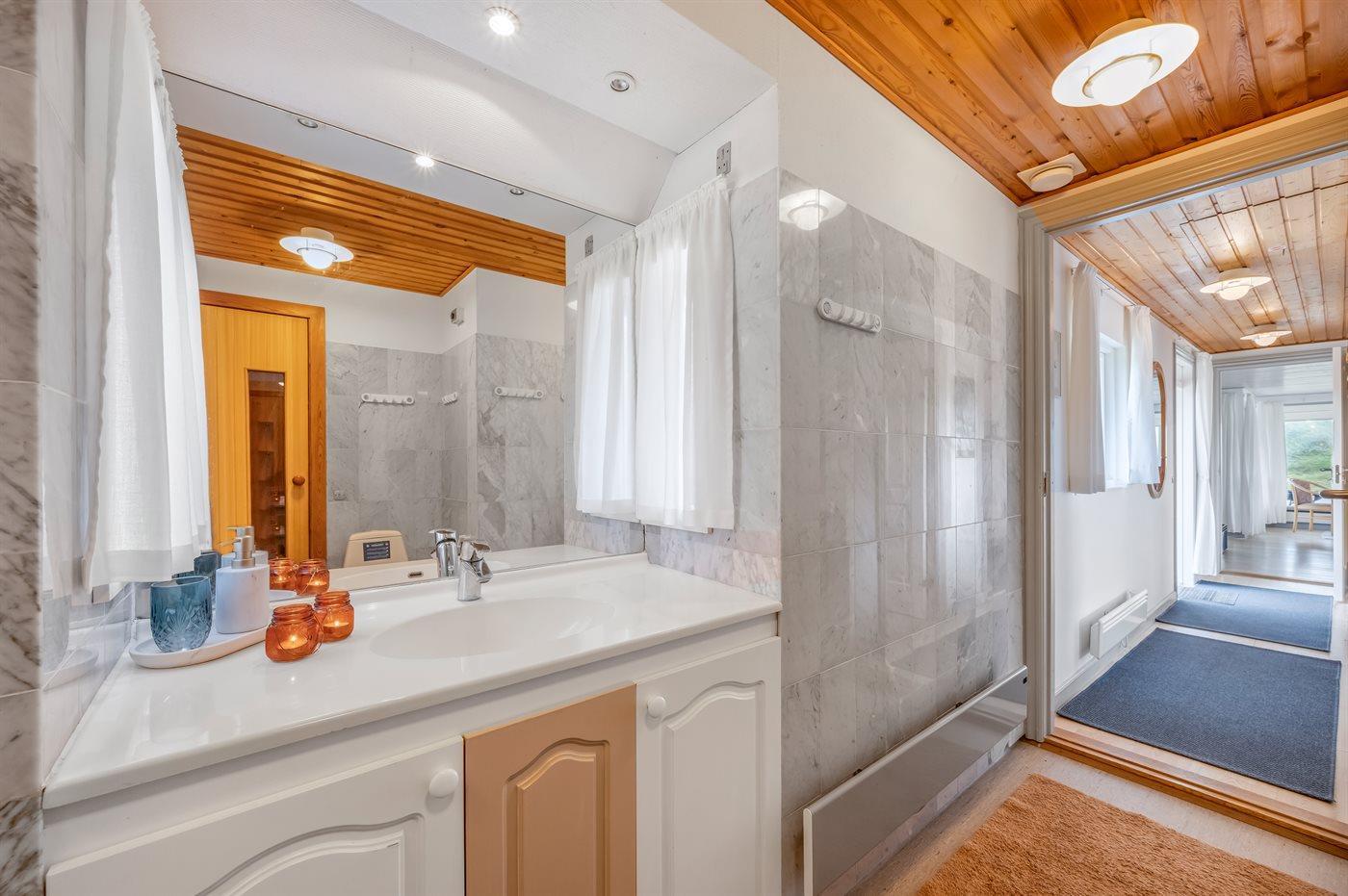Der er 2 badeværelser med bruseniche og 2 toiletter I saunaen er der mulighed for afslapning.