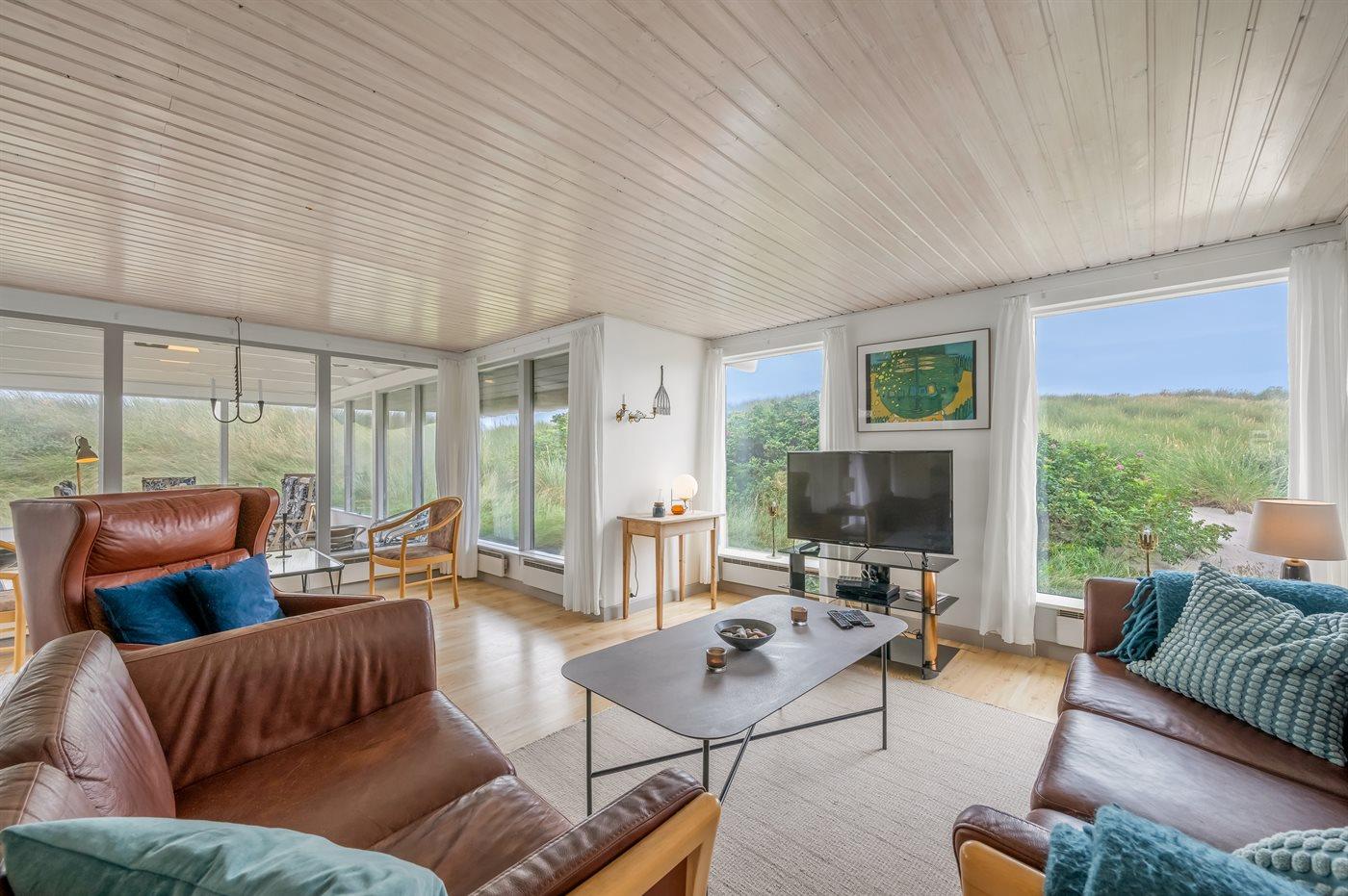Unikt sommerhus i første række til Vesterhavet med stor grund, hav- og fjordudsigt samt overdækket terrasse.