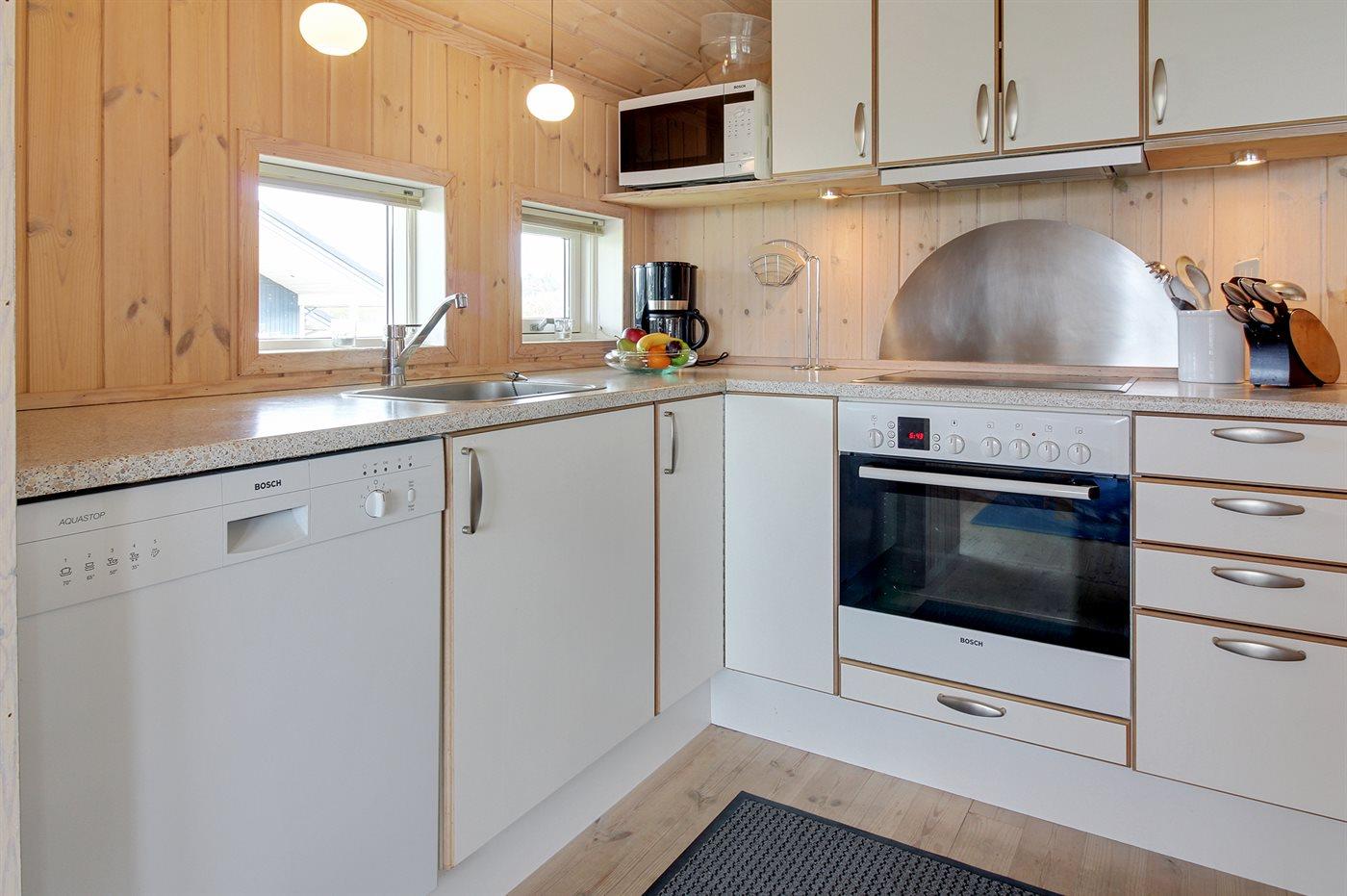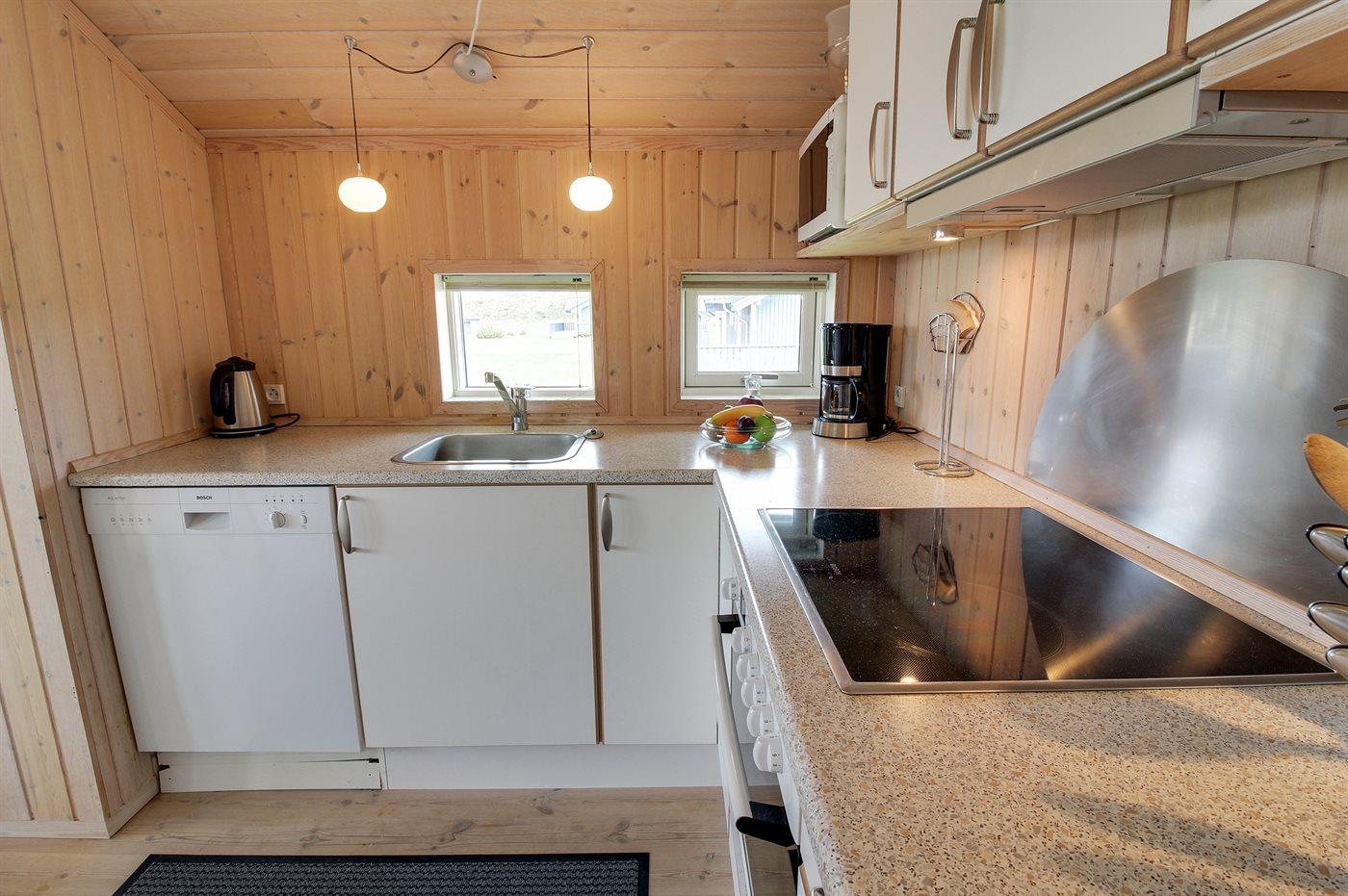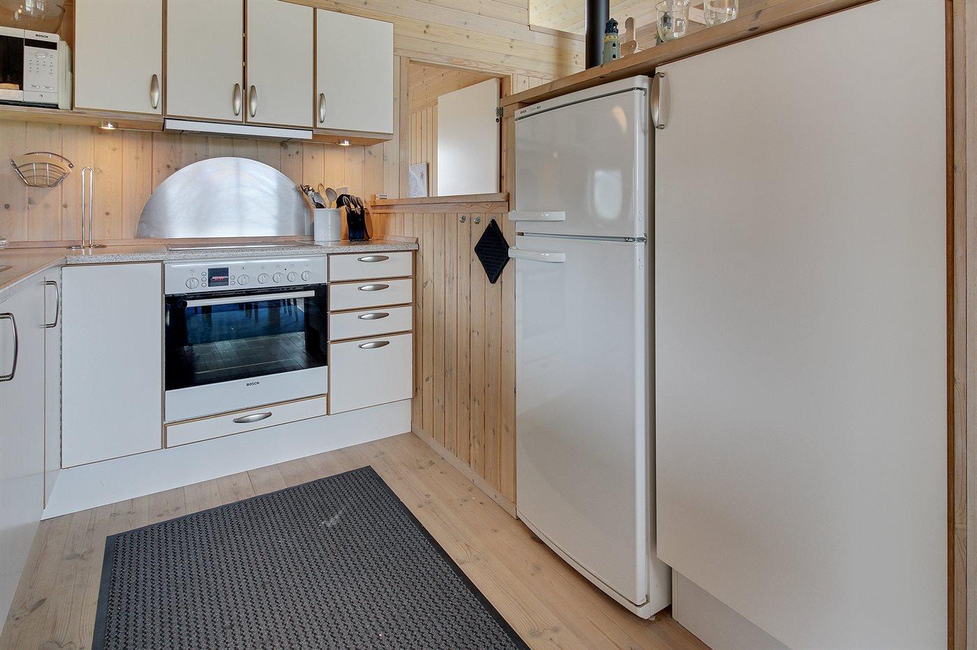 Køkkenet er udstyret med 1 køleskab. Der er 4 keramiske kogeplader, varmluftovn, mikrobølgeovn samt opvaskemaskine.